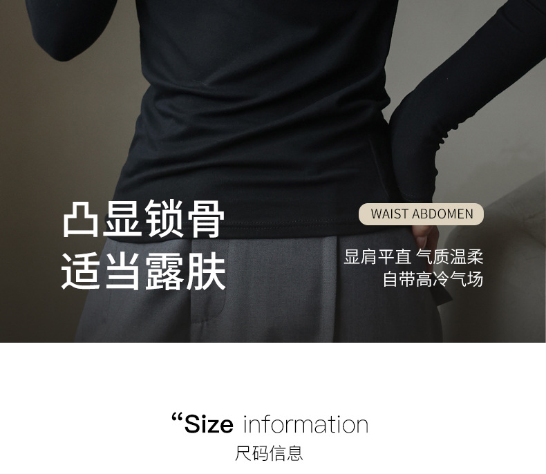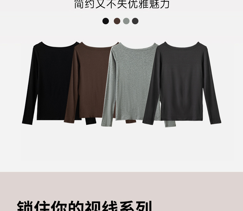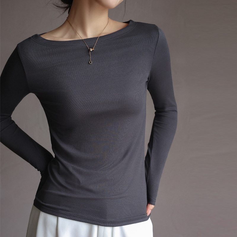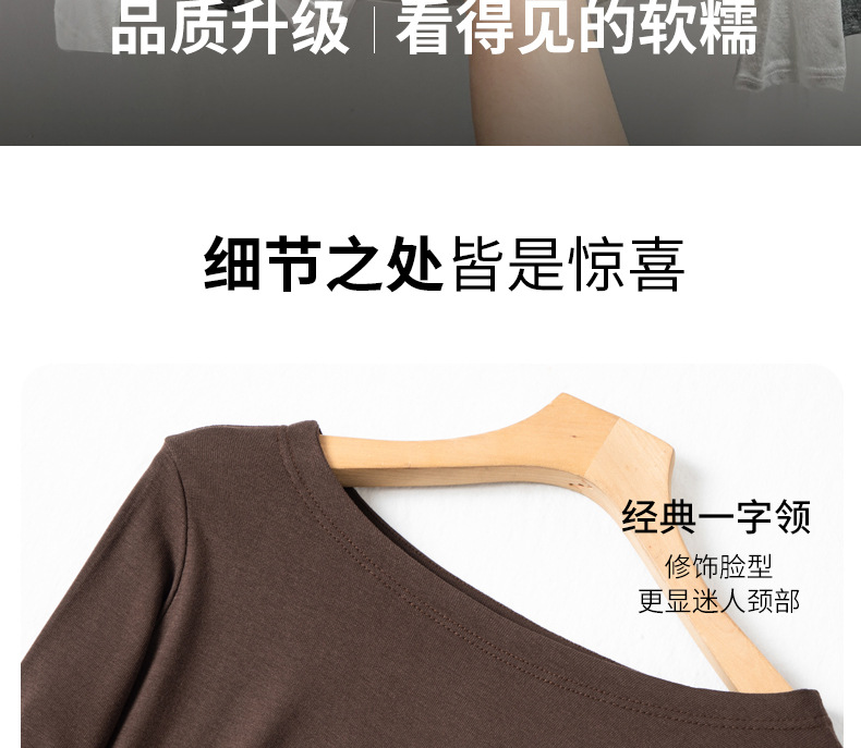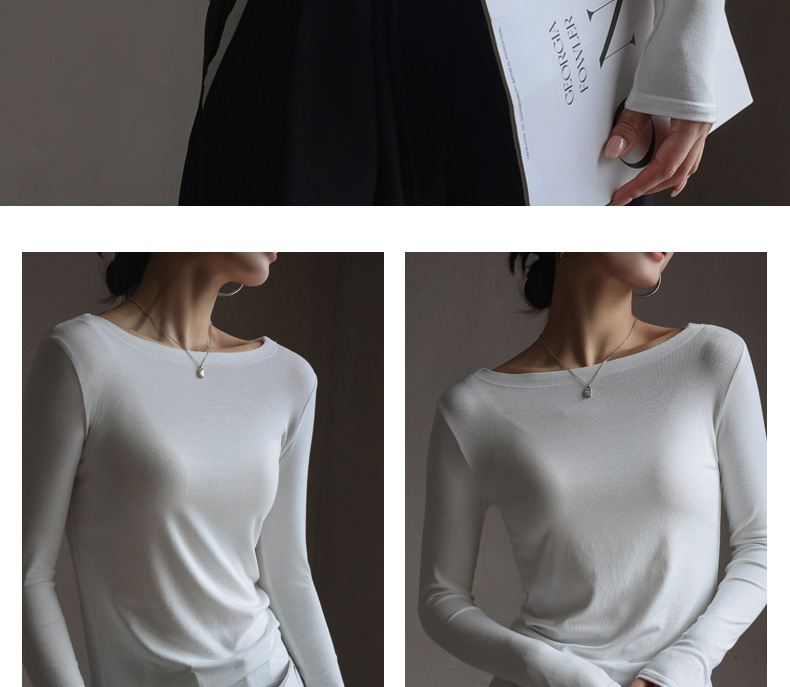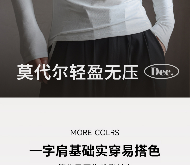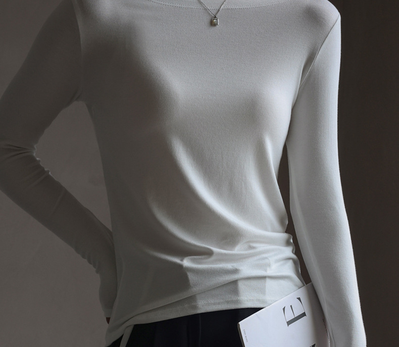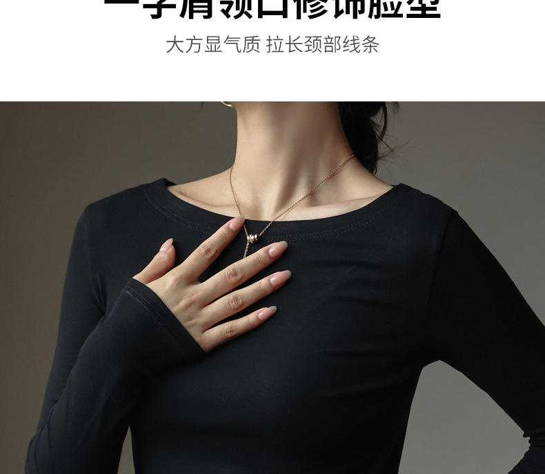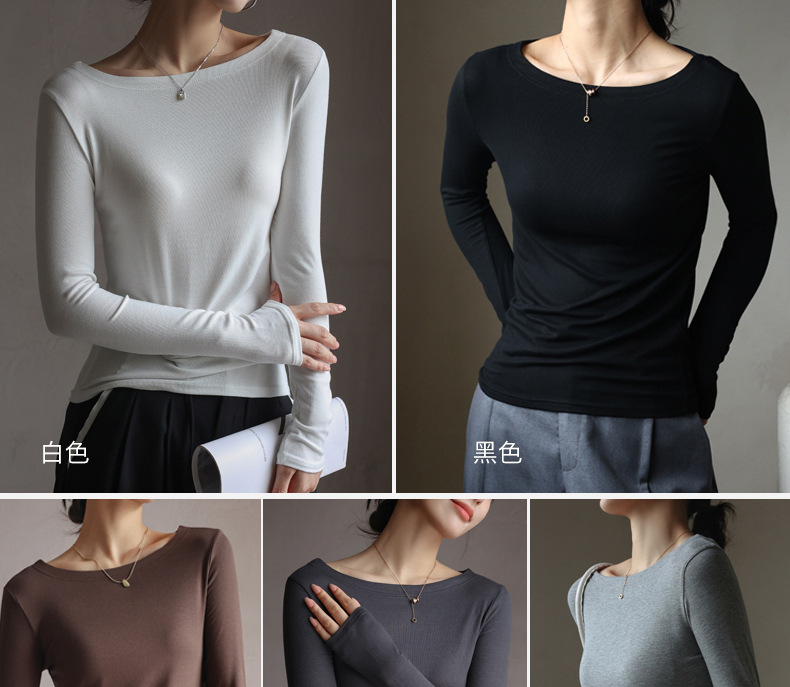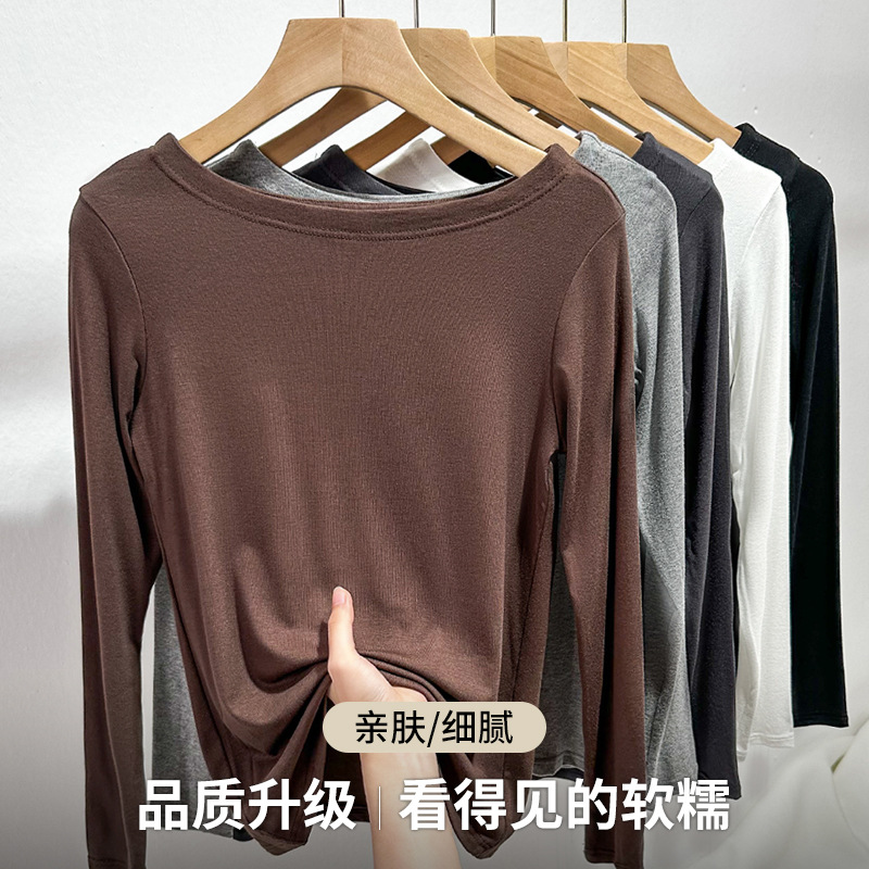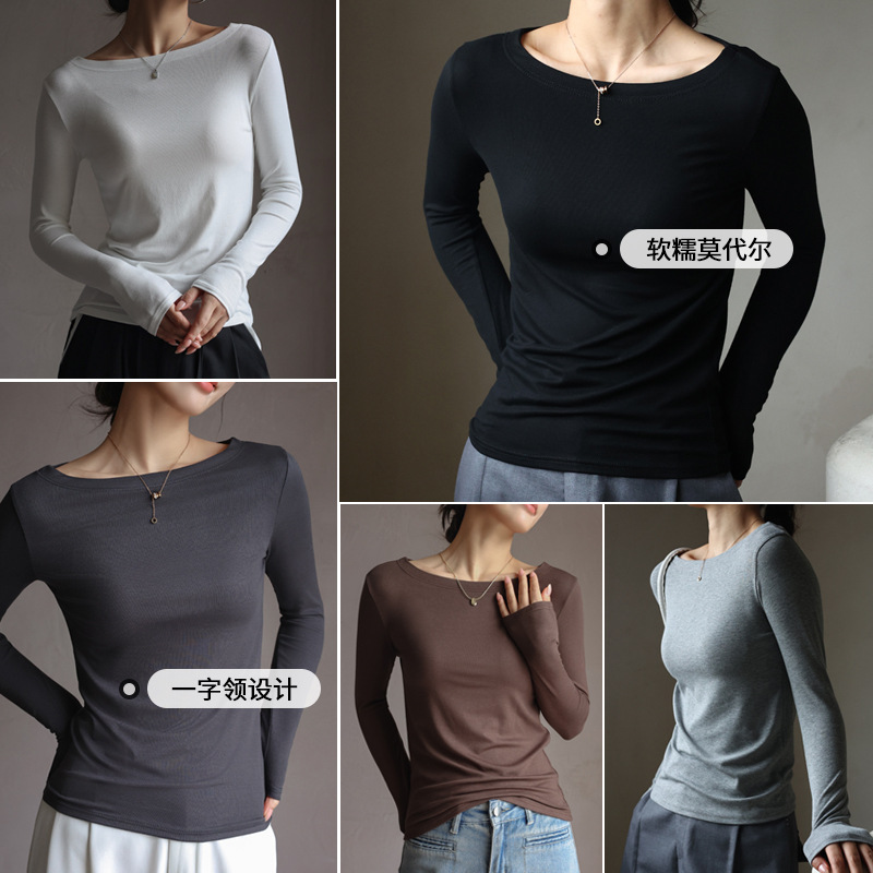 Q一字领莫代尔秋冬季内搭打底衫女修身长袖t恤白色简约款打底上衣