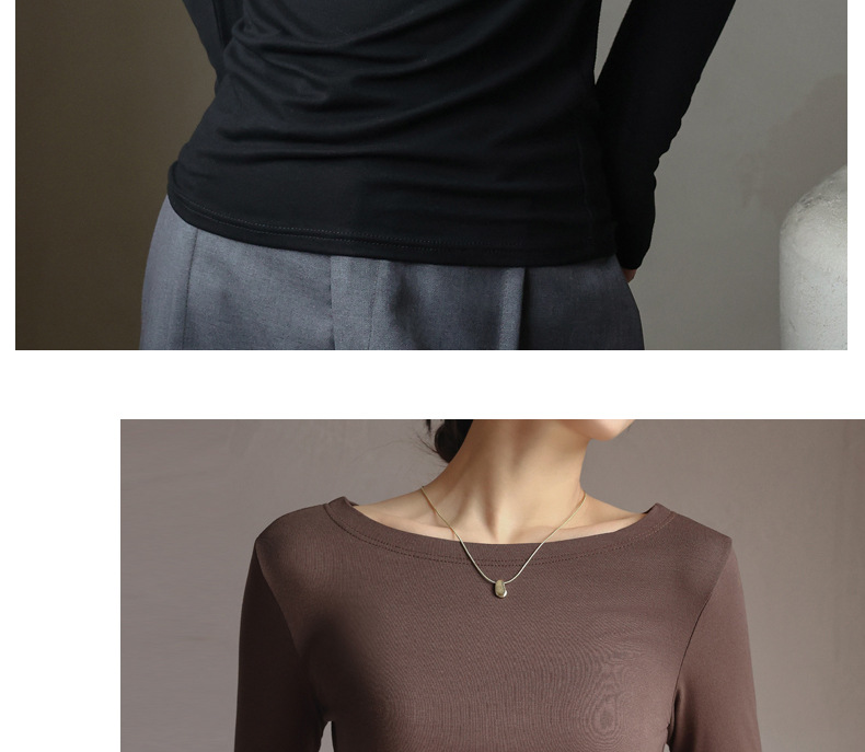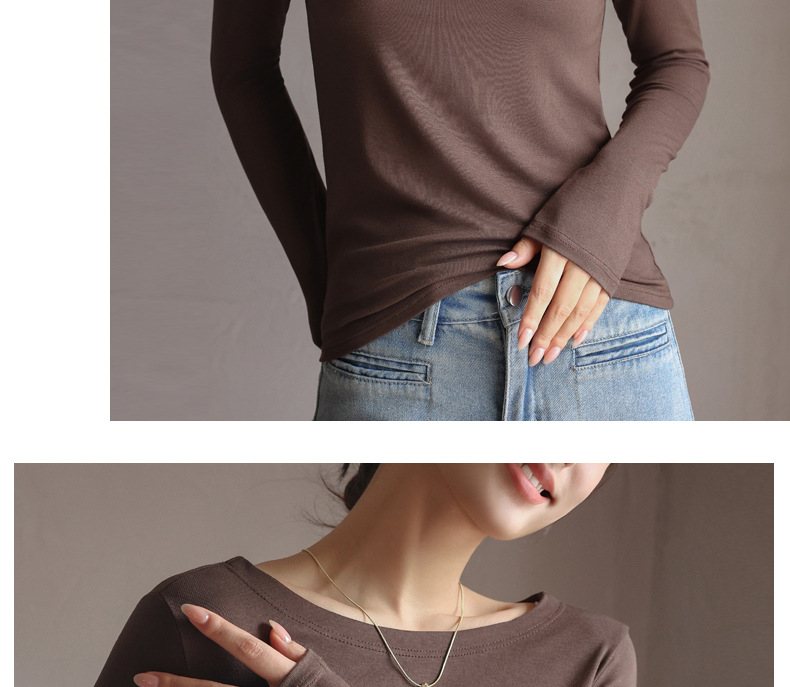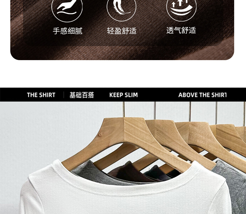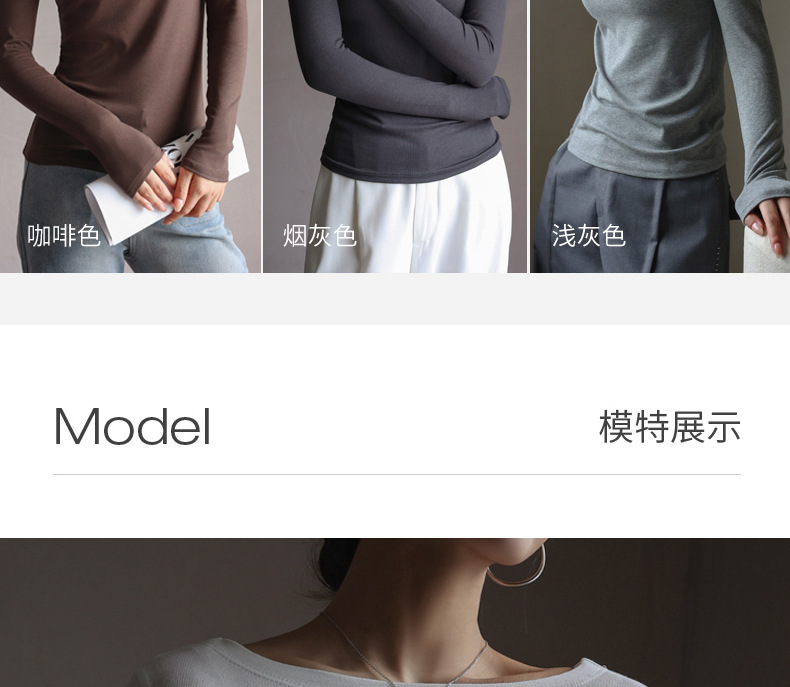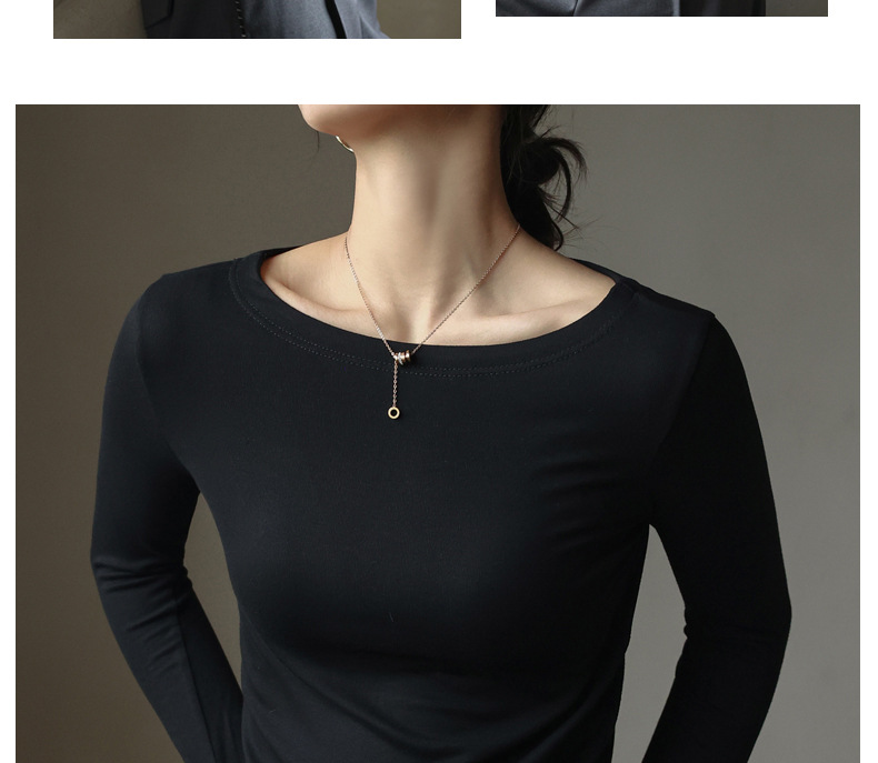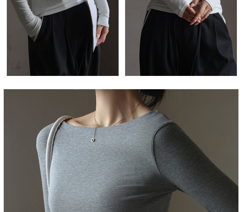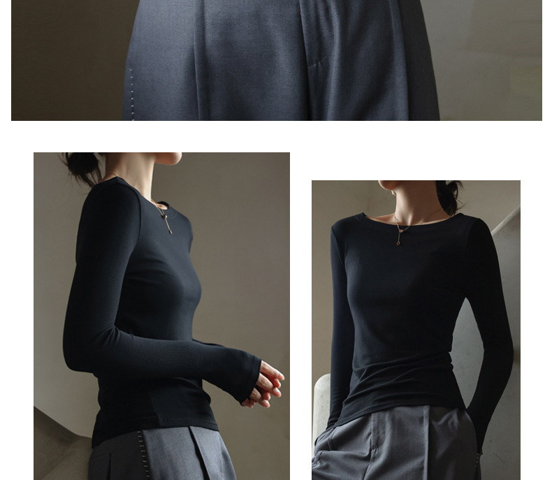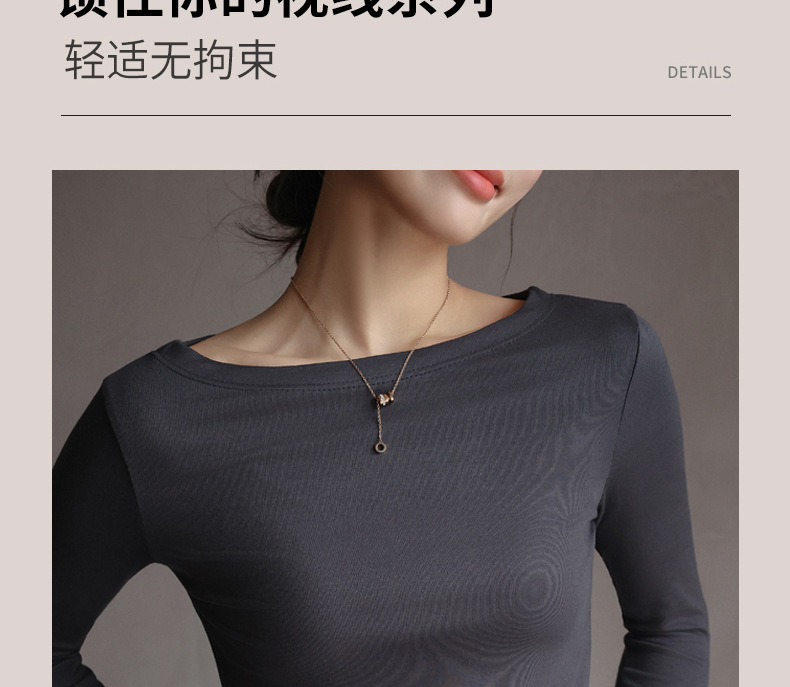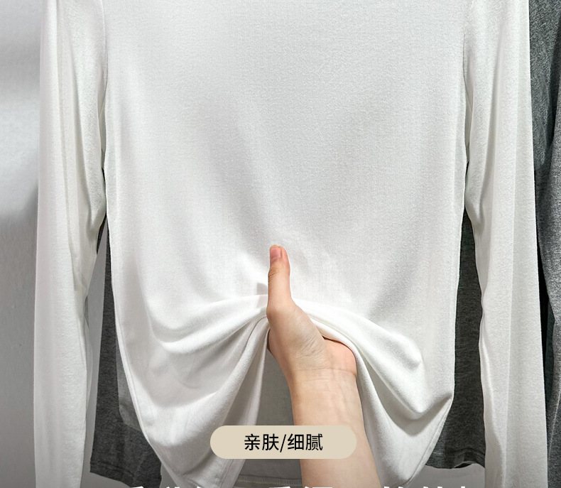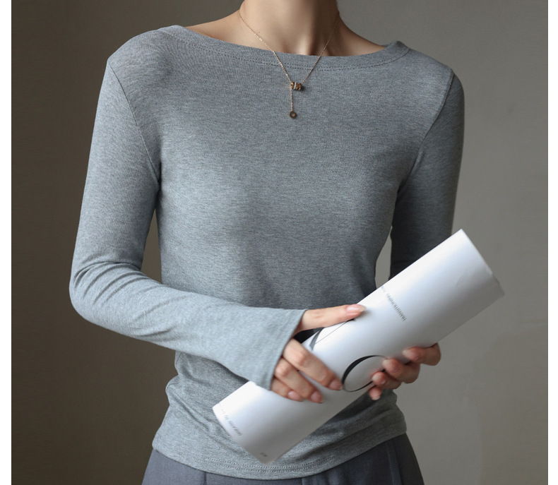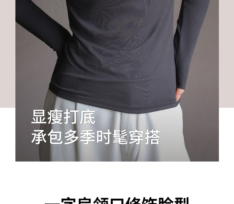 Q一字领莫代尔秋冬季内搭打底衫女修身长袖t恤白色简约款打底上衣