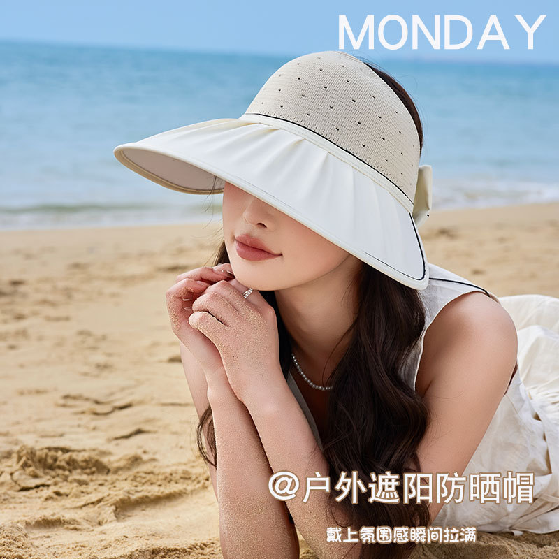 夏季户外出游防晒帽子女时尚百搭贝壳空顶帽海边沙滩大帽檐遮阳帽