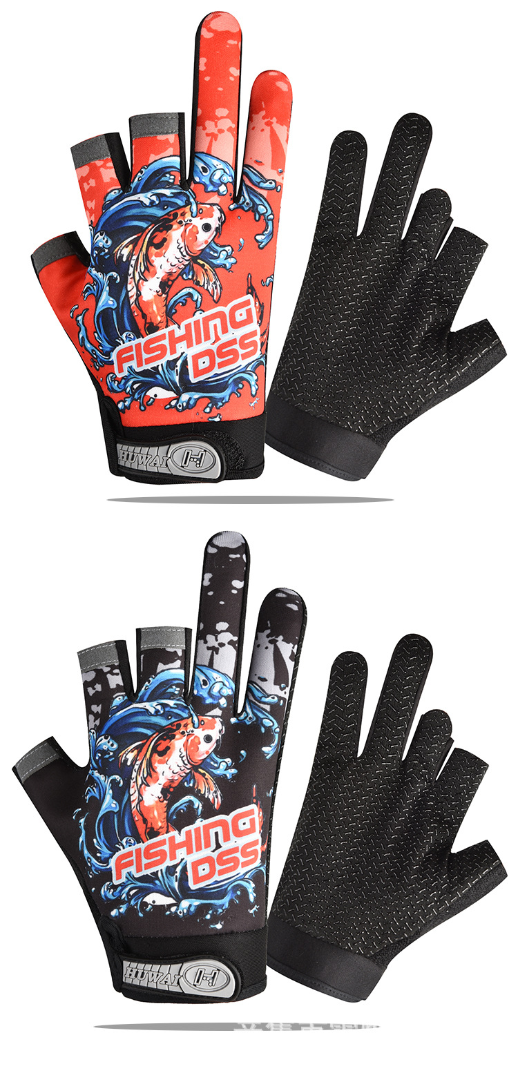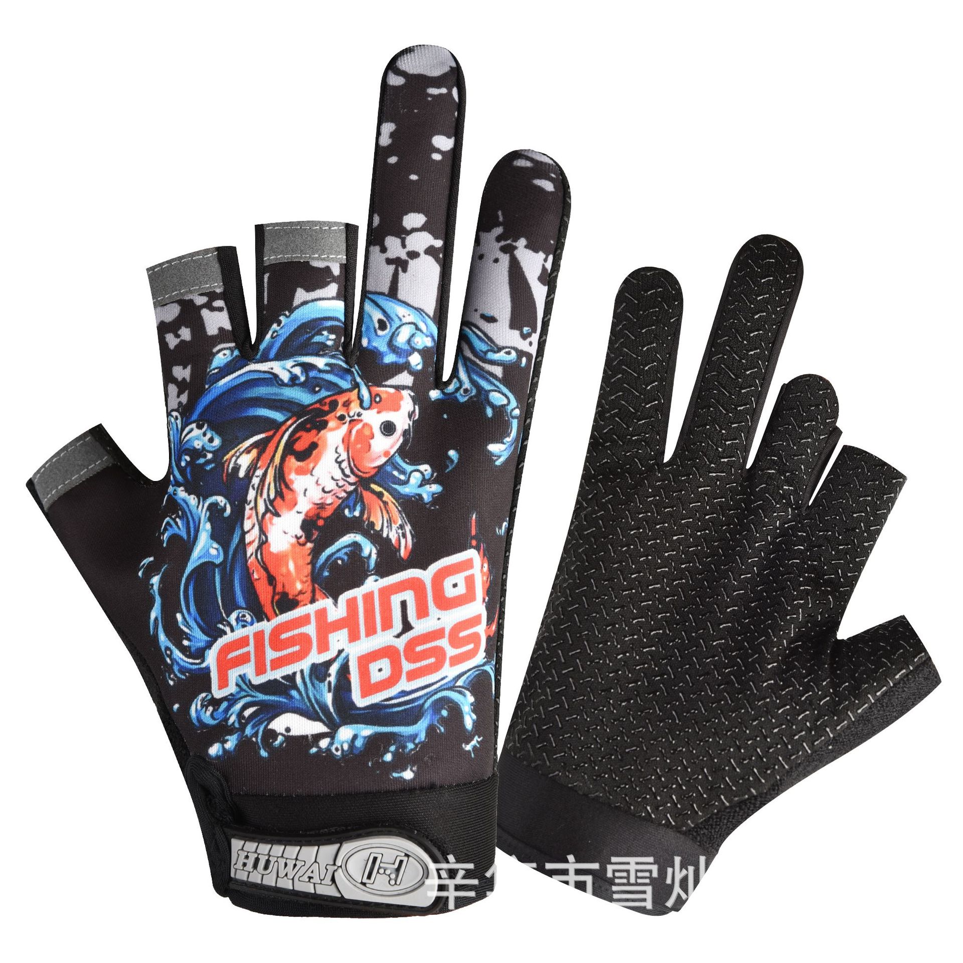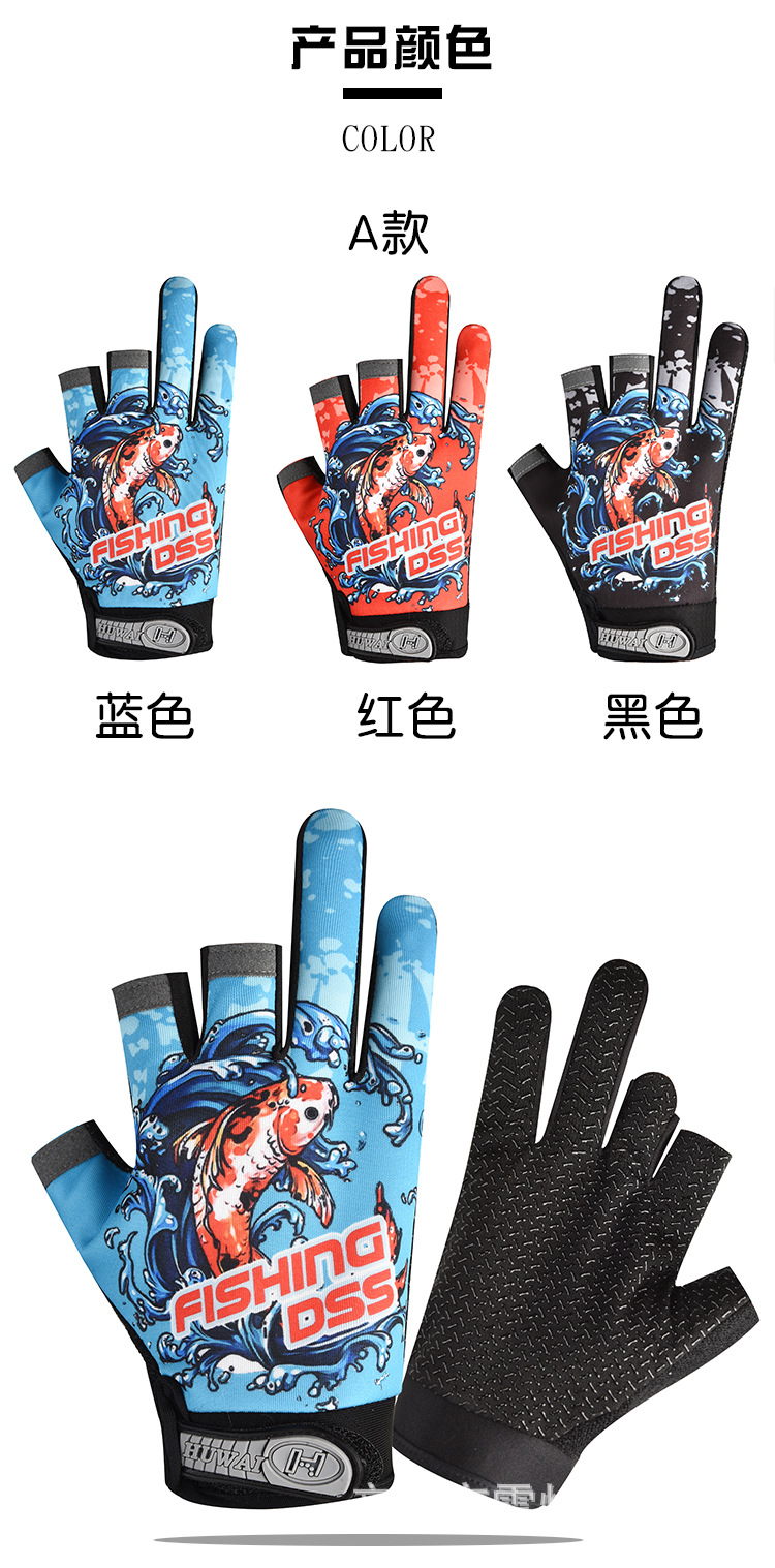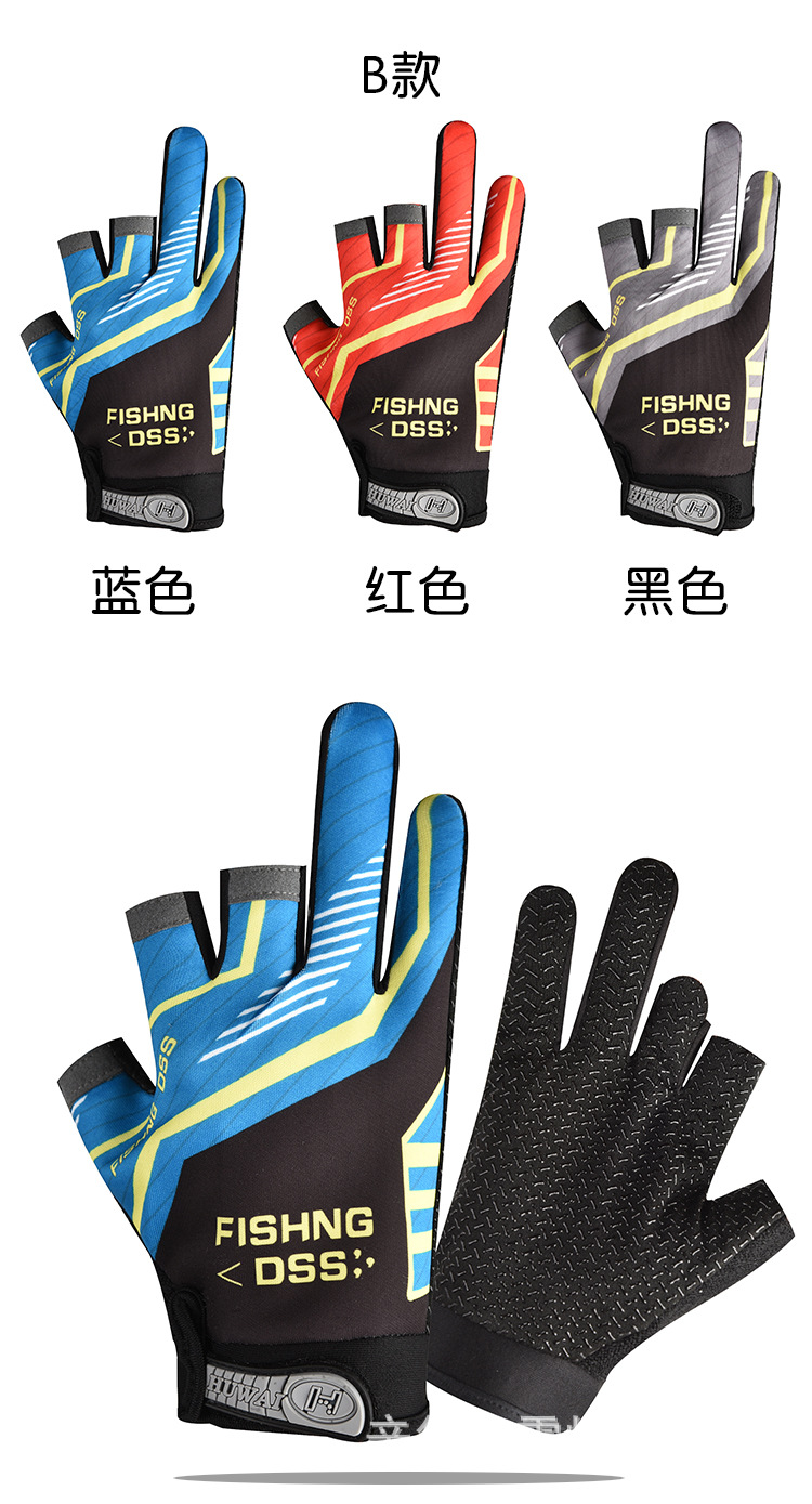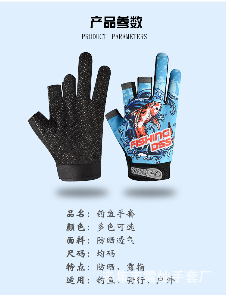 春夏钓鱼外卖快递三指露指男女手套冰丝触屏运动骑行手套薄款防晒