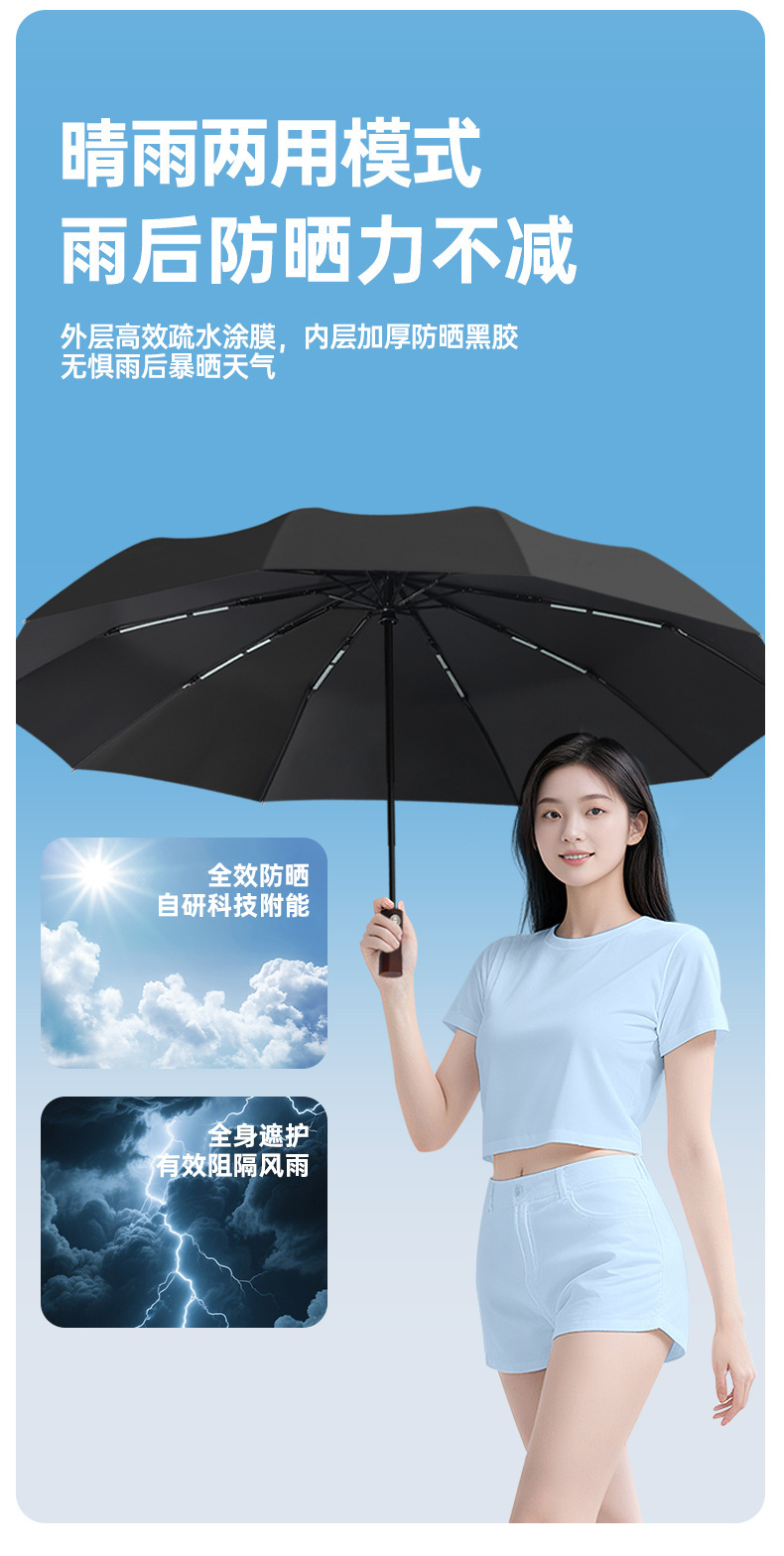 十骨自动手动加大加厚防雨防晒防紫外线三折晴雨伞可定制图案logo