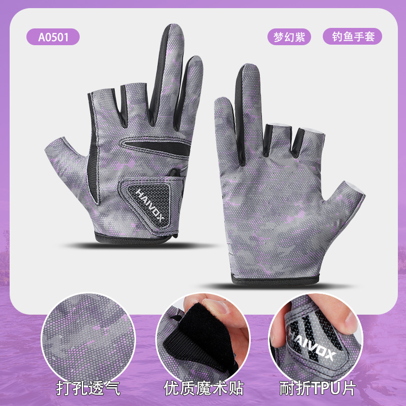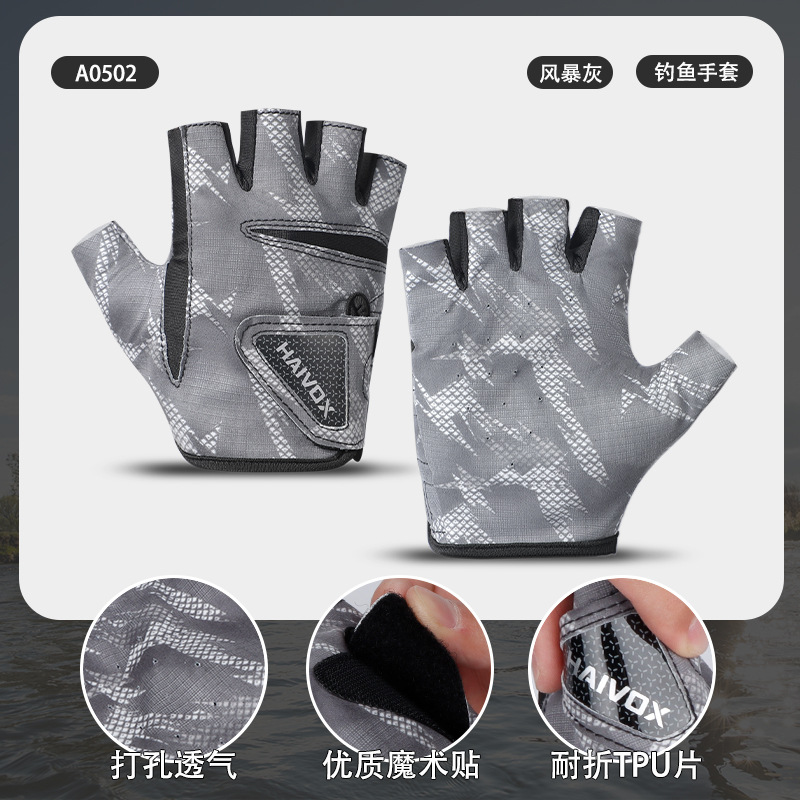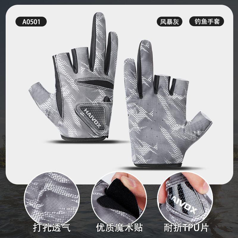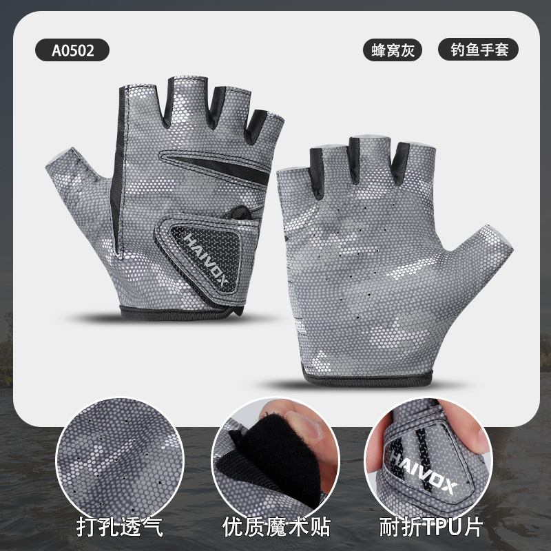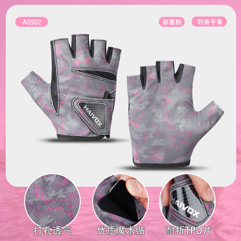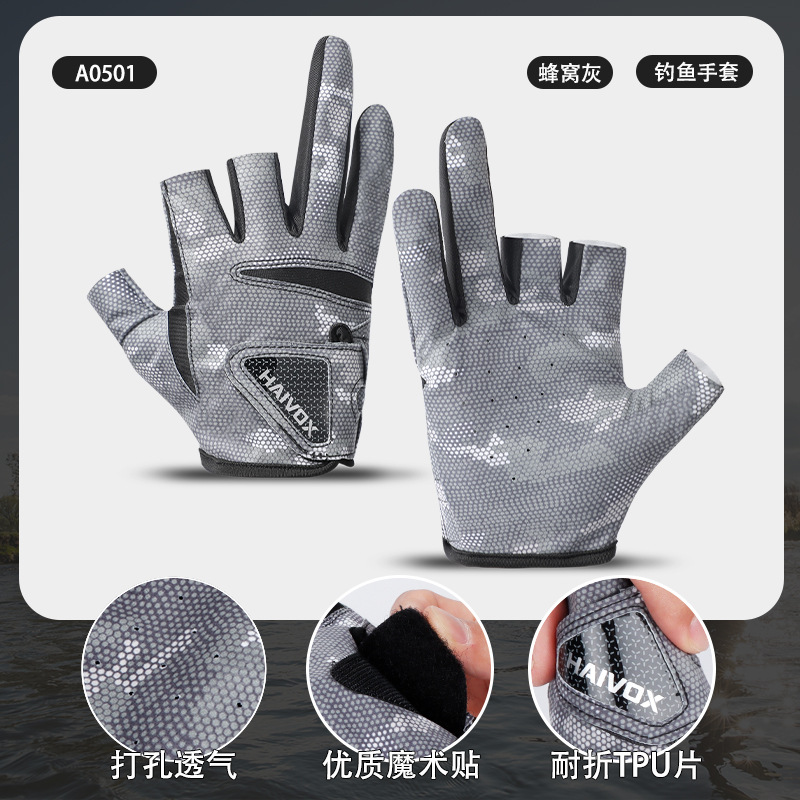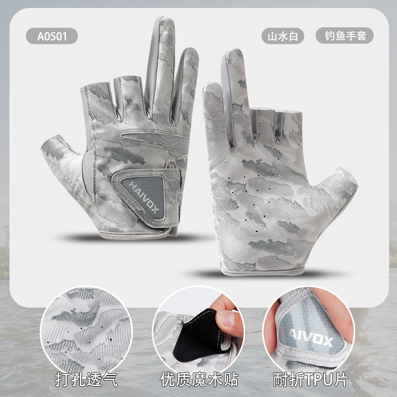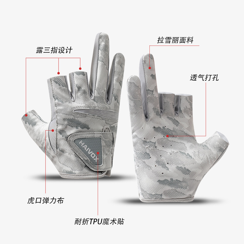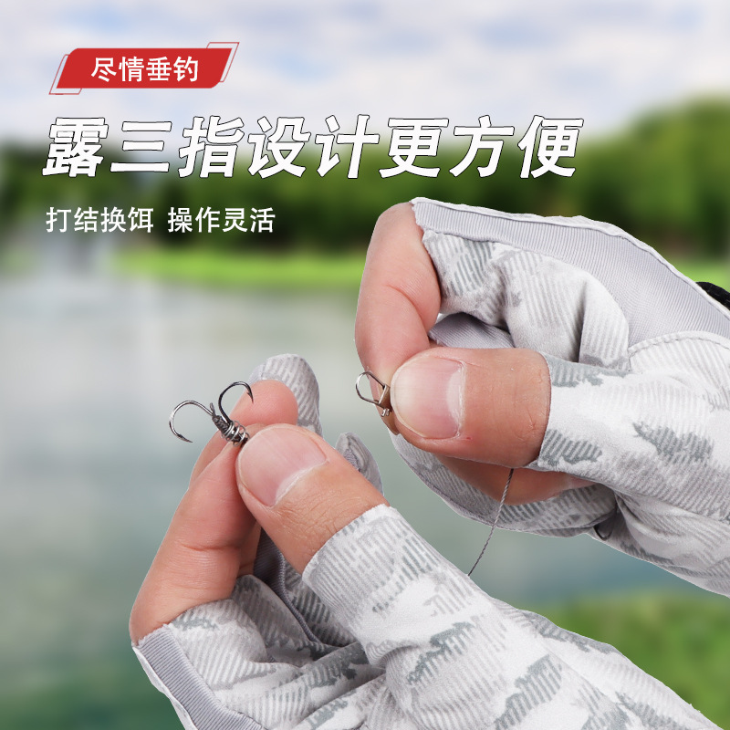 新款夏季拉雪丽钓鱼手套露三指防晒户外垂钓专业路亚手套防滑耐磨