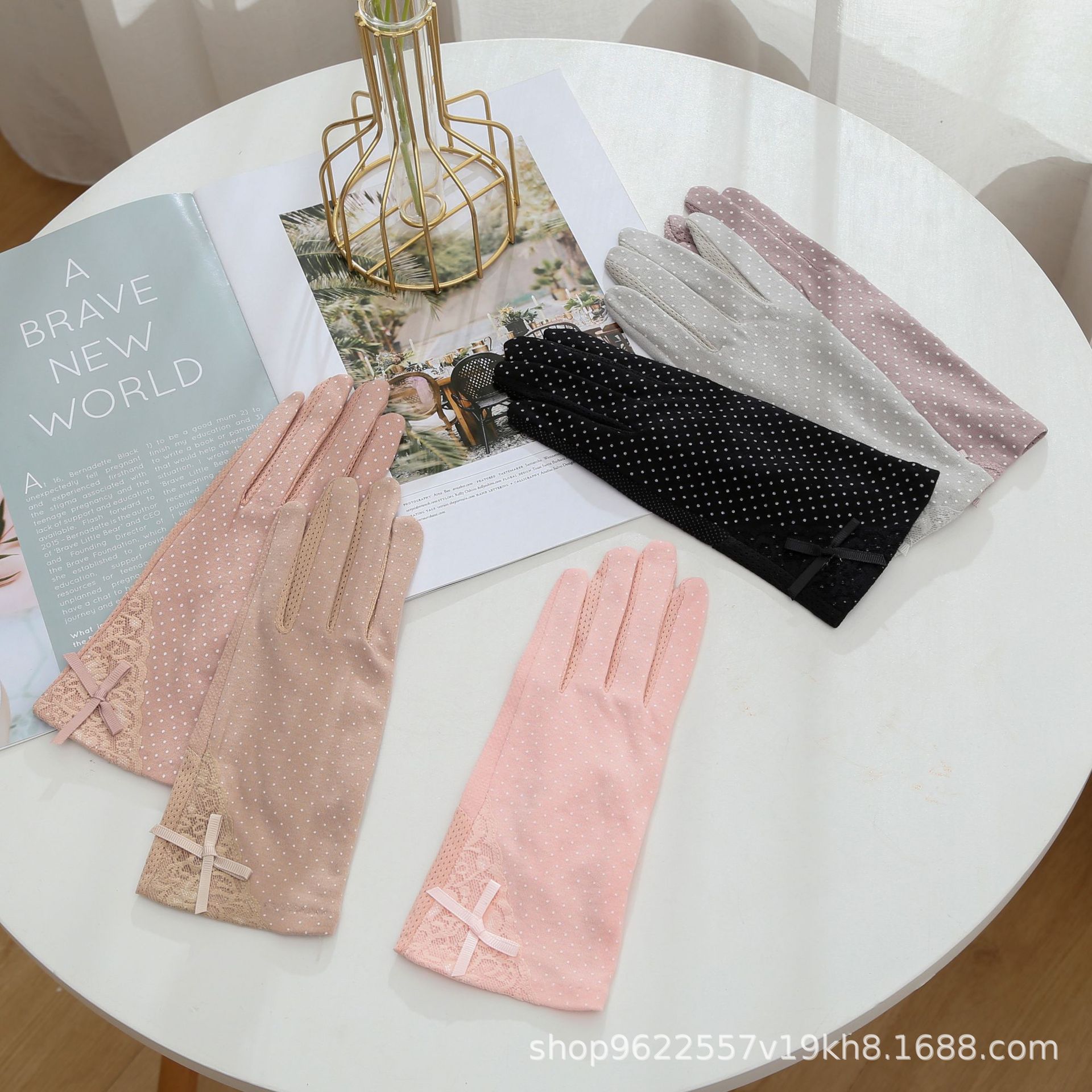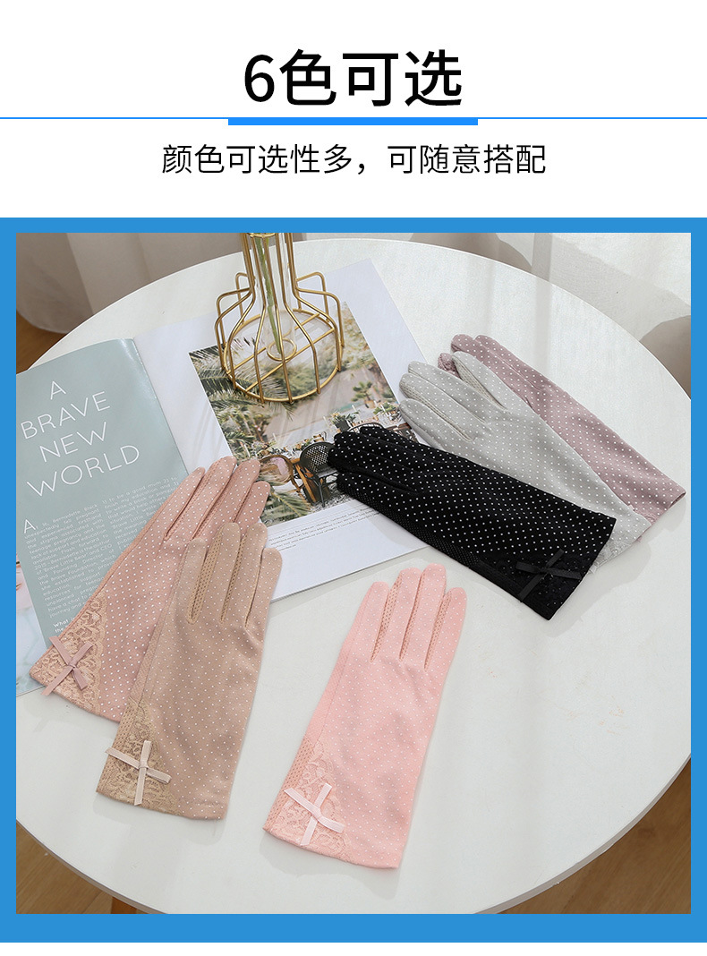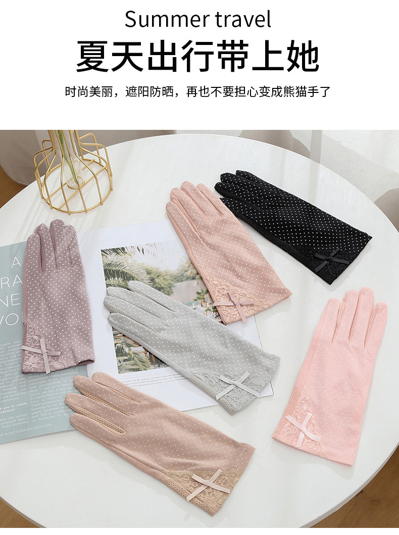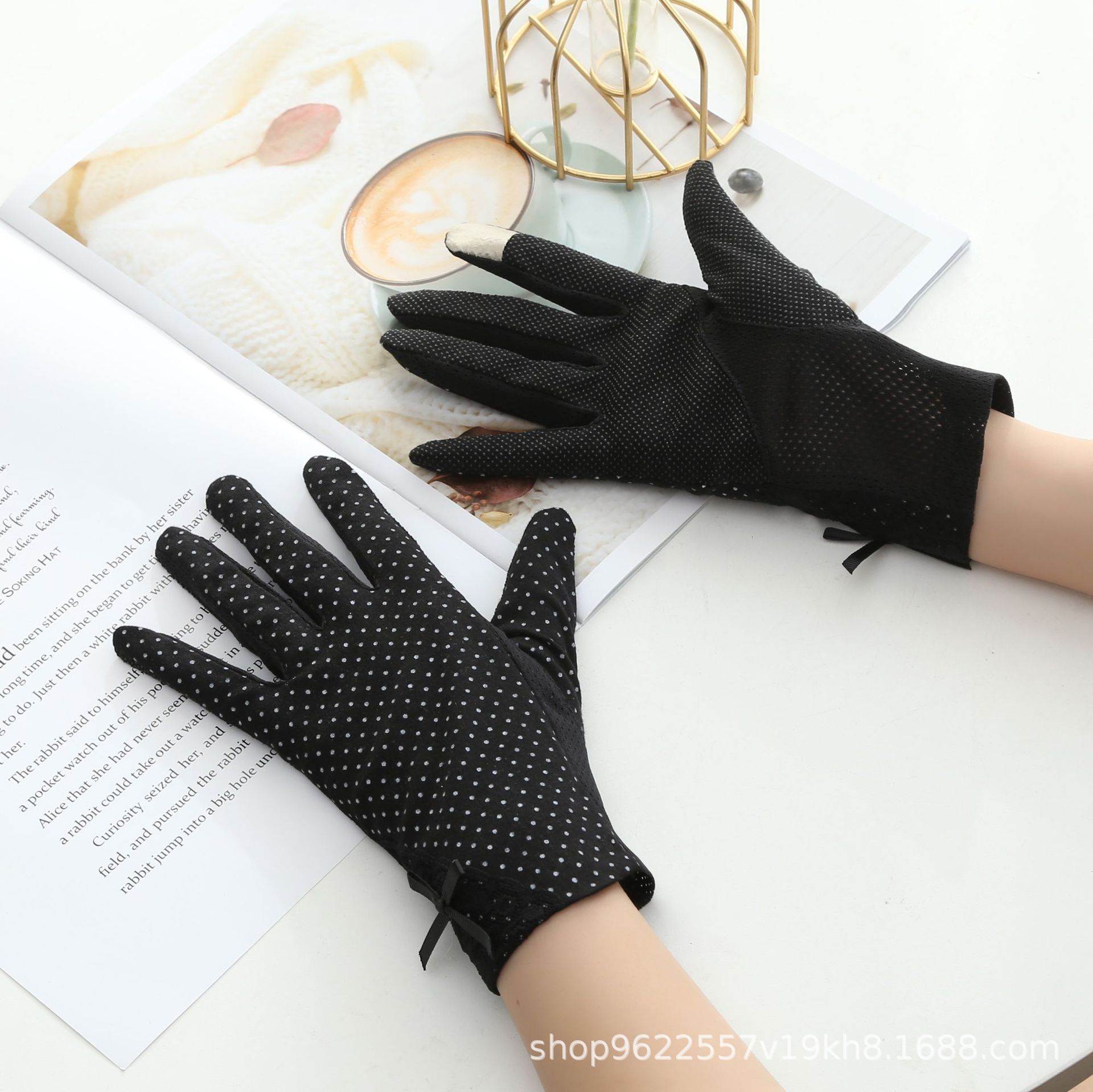 女款春夏防晒防滑透气印花圆点蝴蝶结防紫外线开车骑行可触屏手套