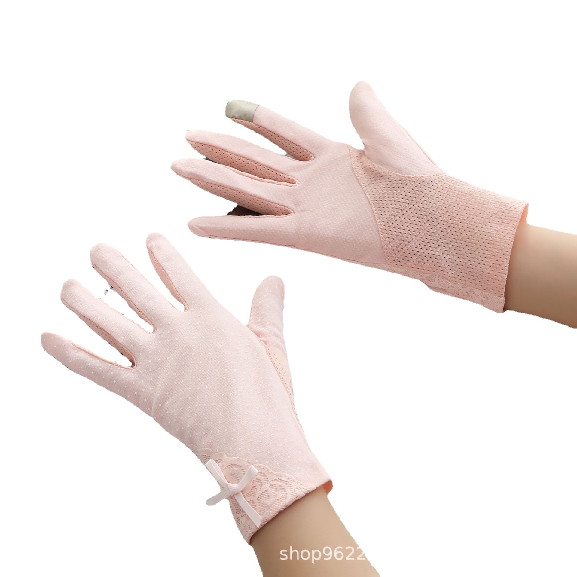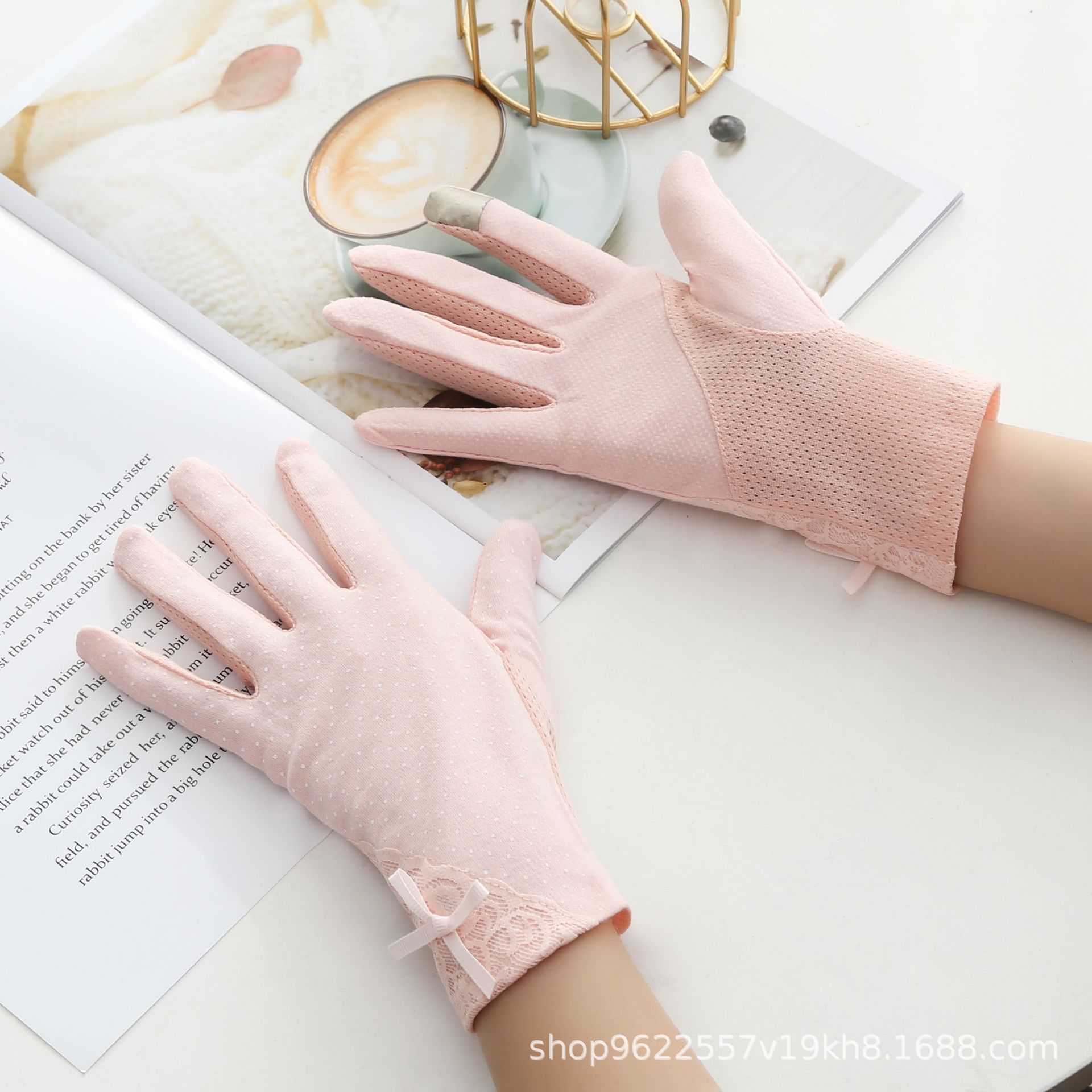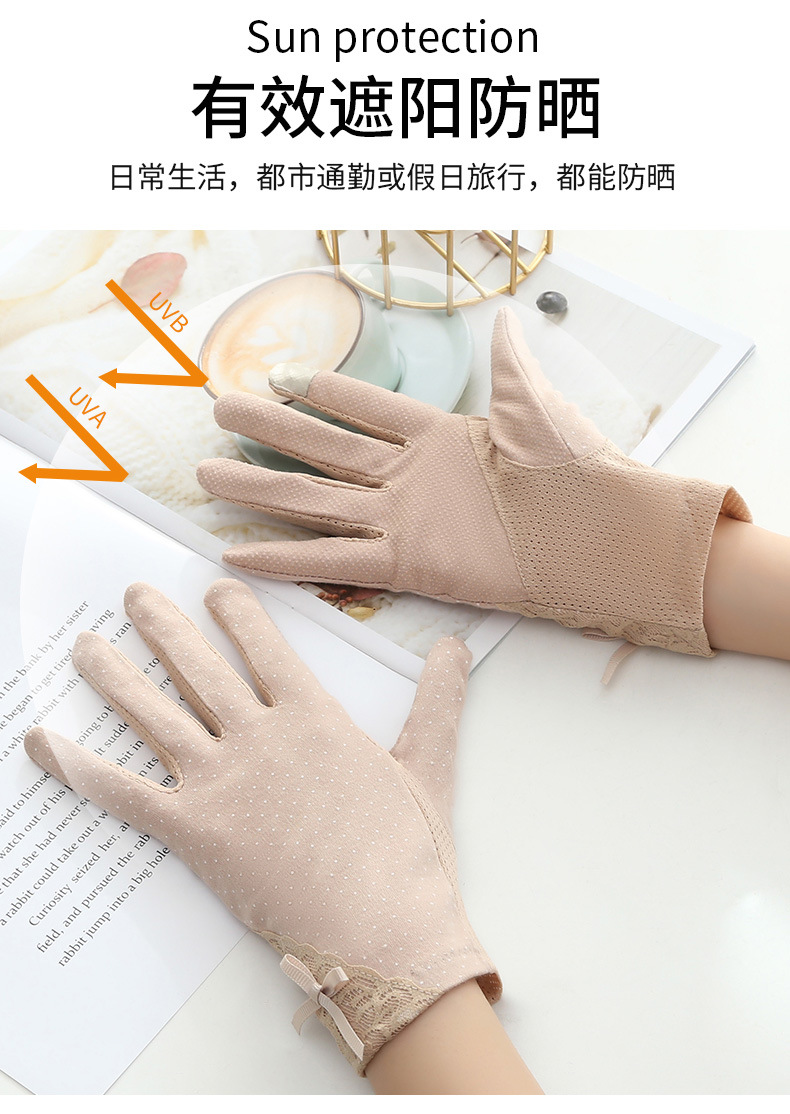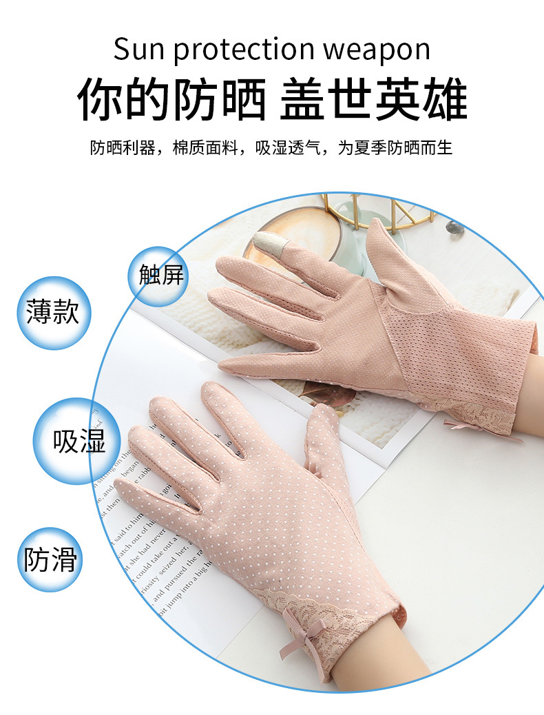 女款春夏防晒防滑透气印花圆点蝴蝶结防紫外线开车骑行可触屏手套