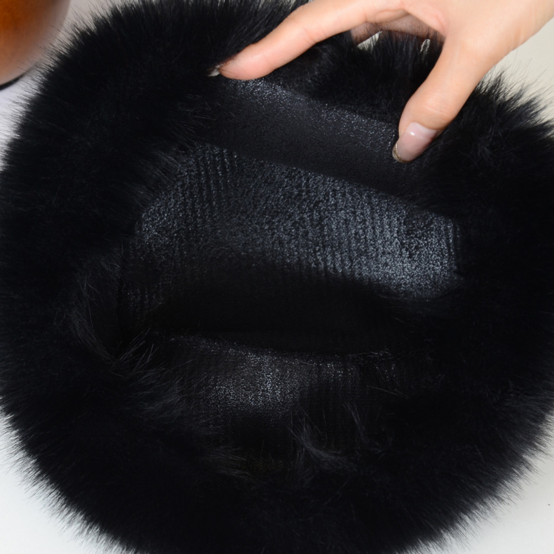 批发仿皮草新款狐狸毛平顶帽加厚毛毛保暖护耳圆顶风雪蒙古冬季