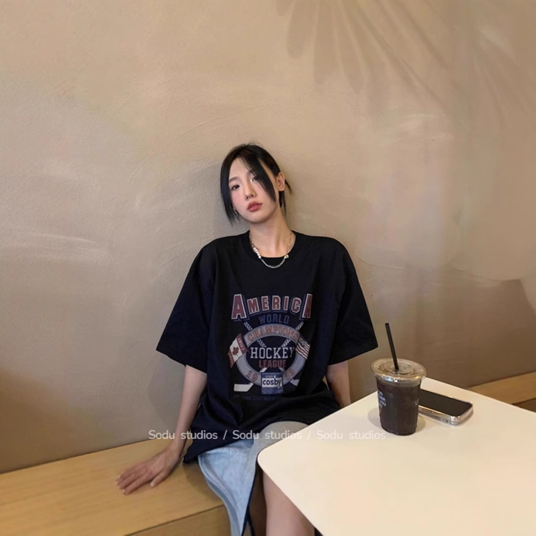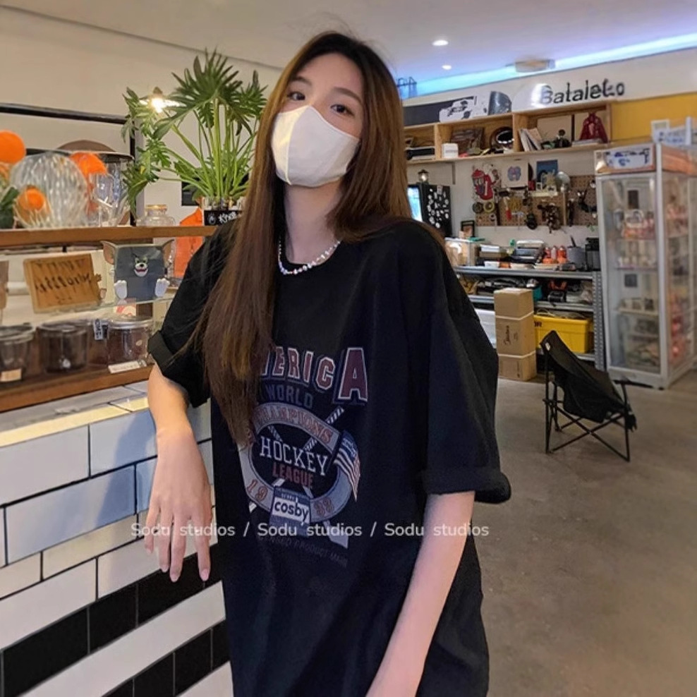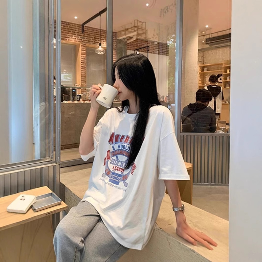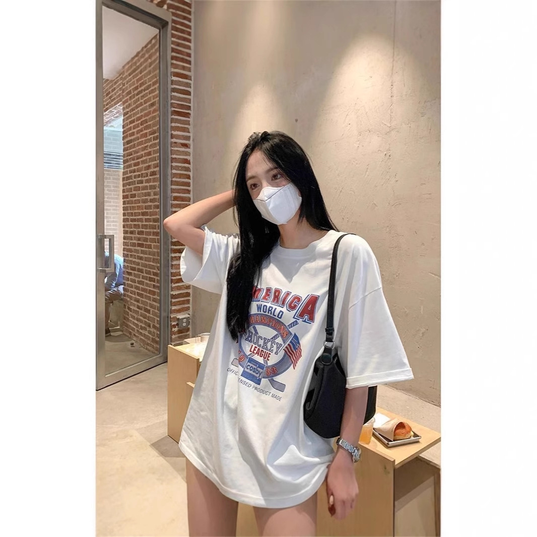 宽松圆领中长款短袖T恤女夏季韩版时尚减龄休闲上衣女潮代发