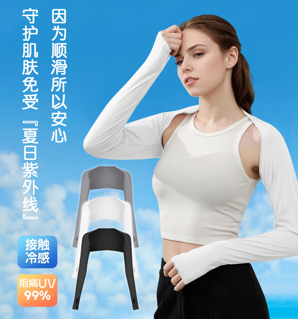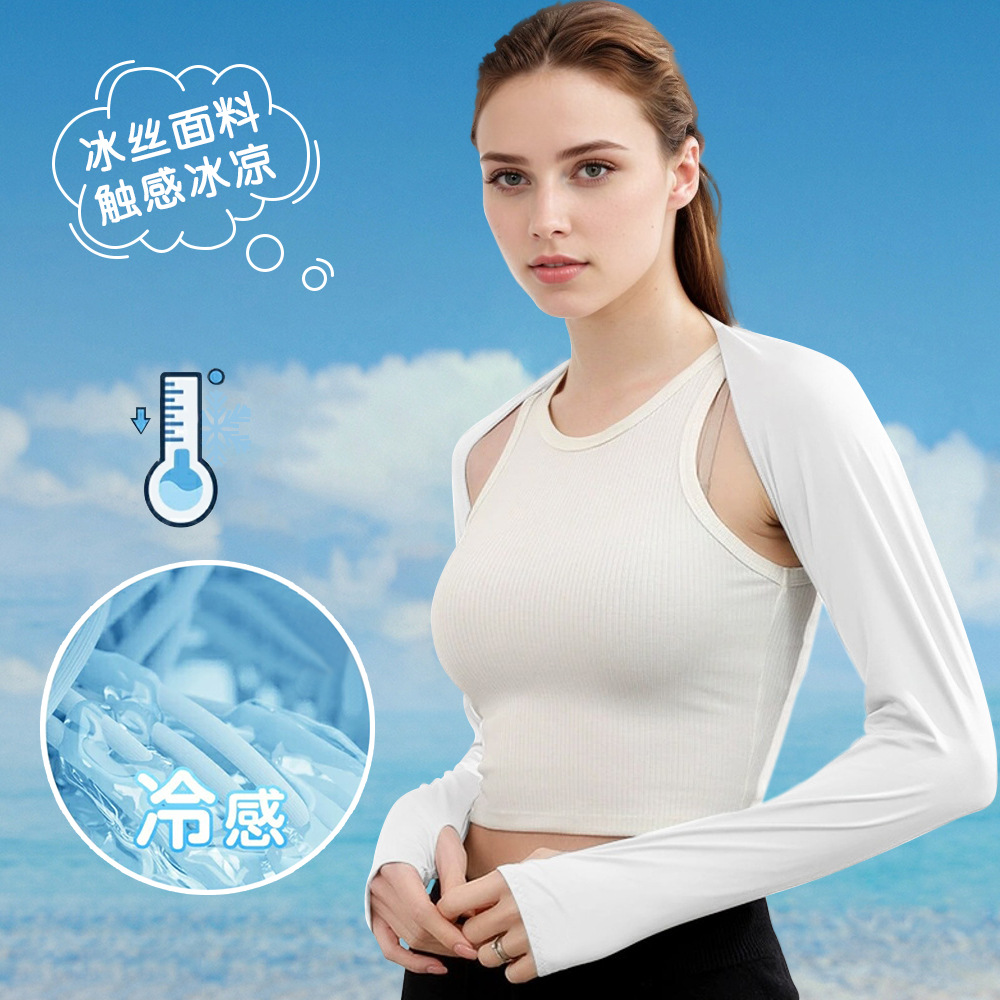 跨境冰丝凉感高尔夫防晒披肩袖套一字肩户外男女运动骑行防晒衣