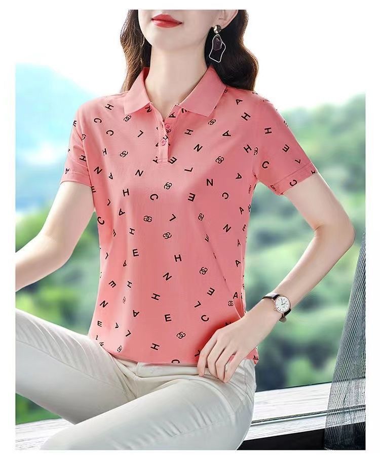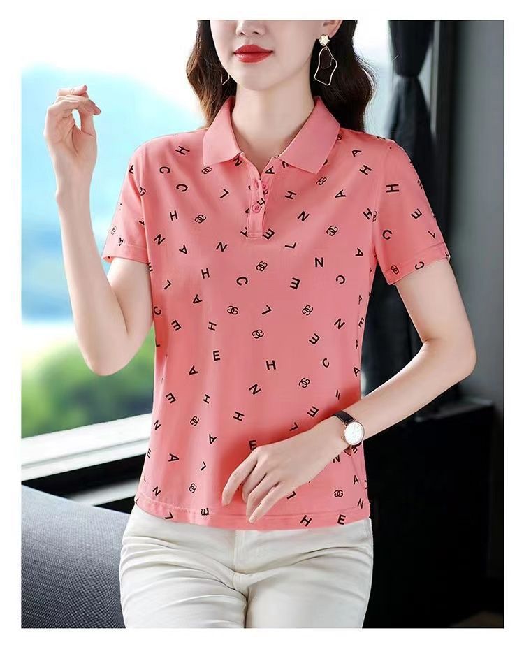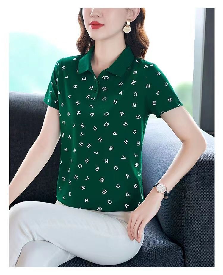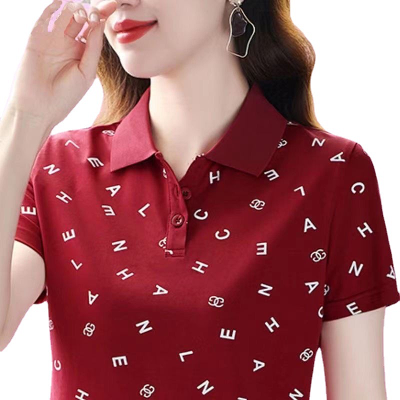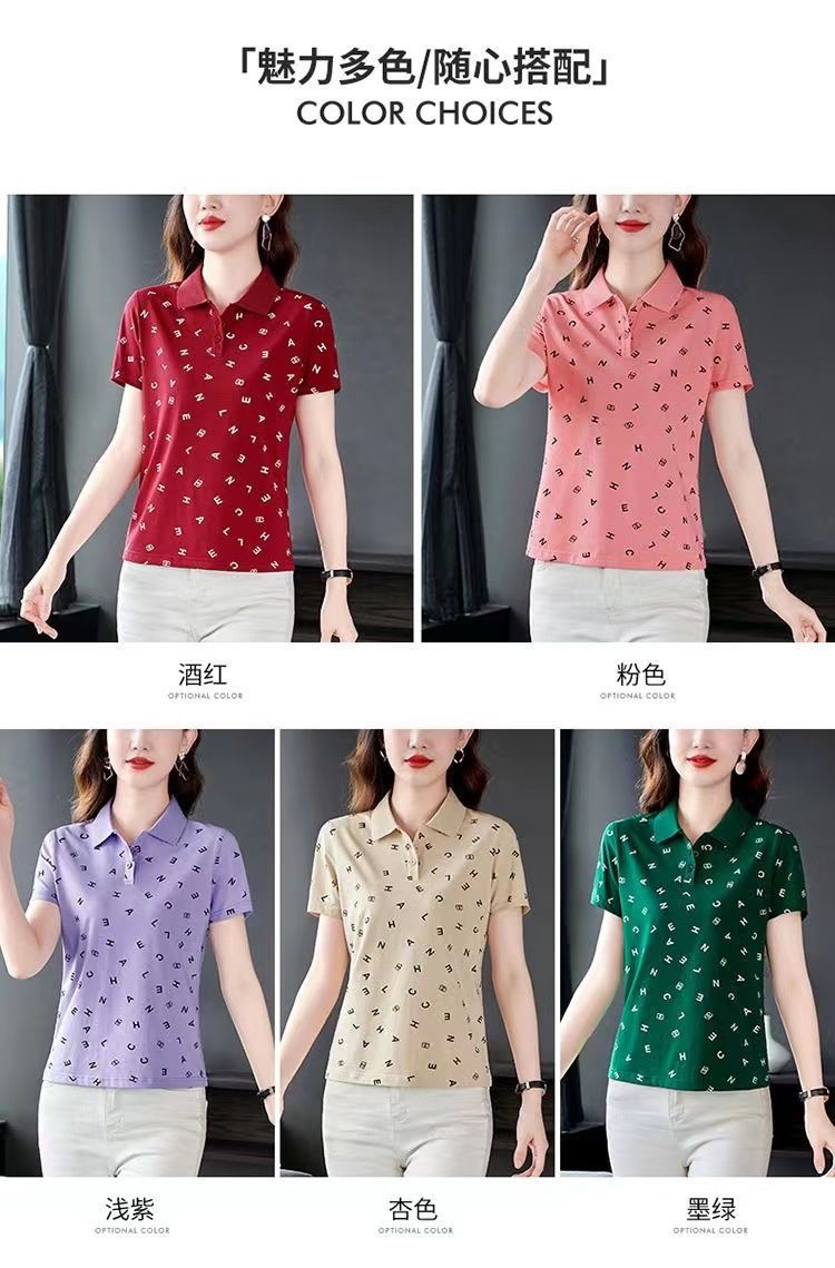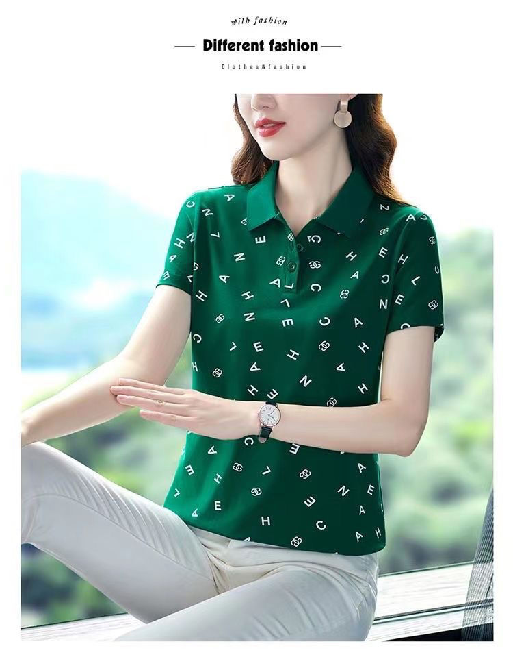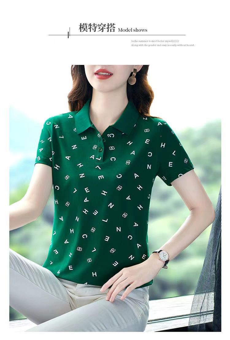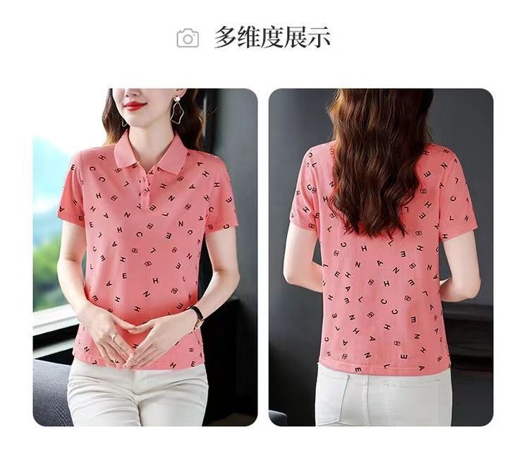 妈妈夏装t恤短袖女2023年新款翻领大码polo领体桖衫时尚洋气上衣