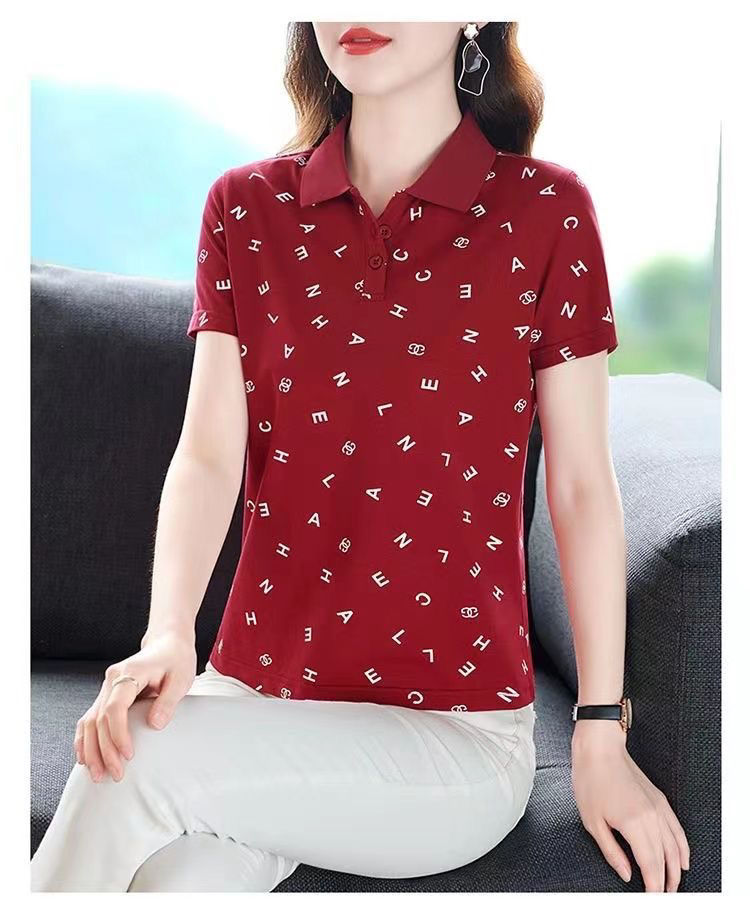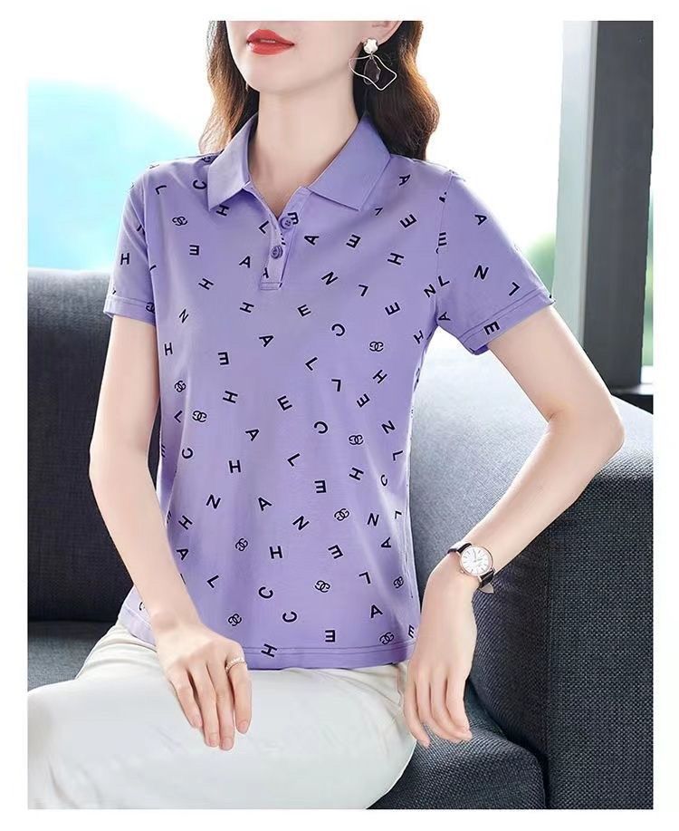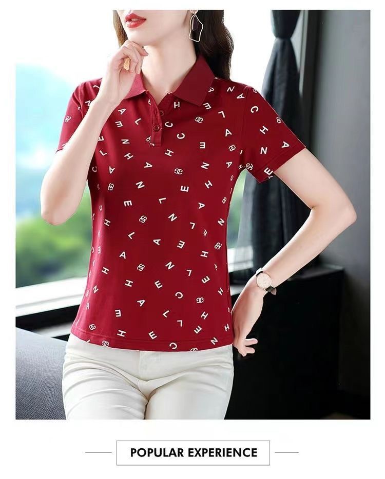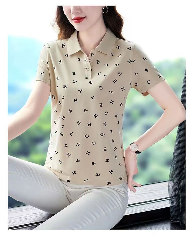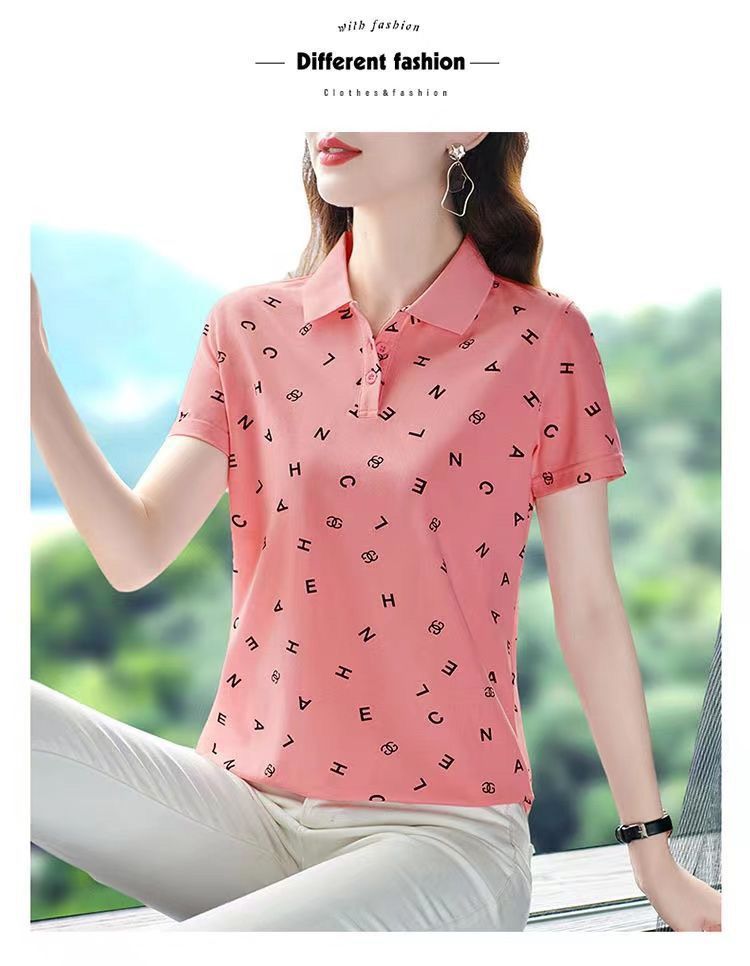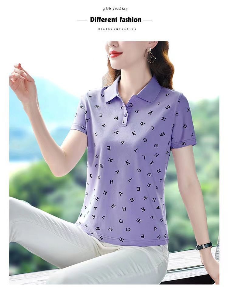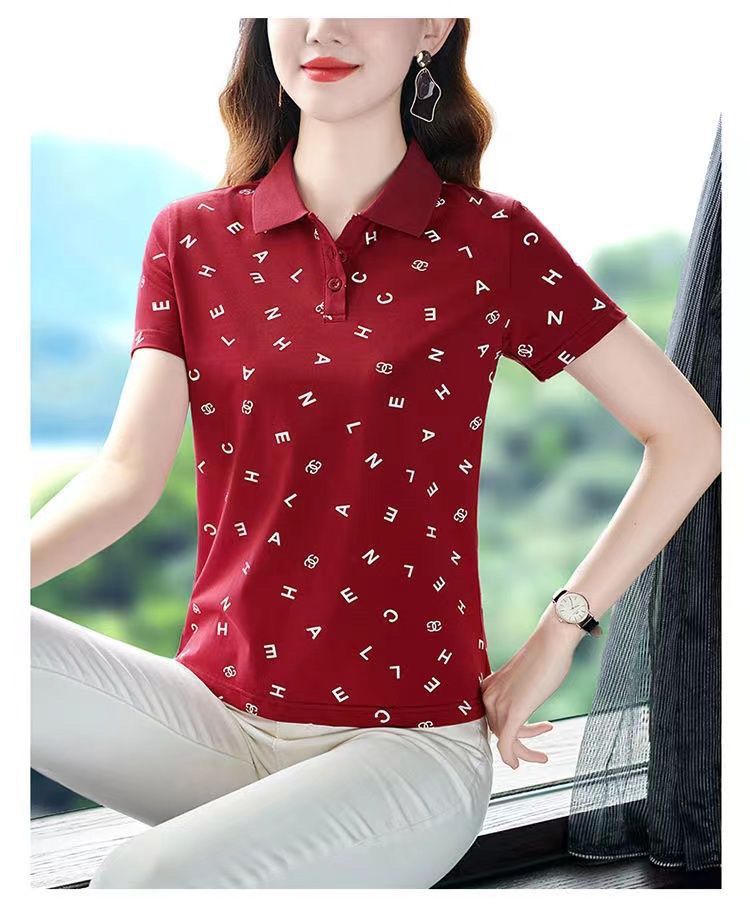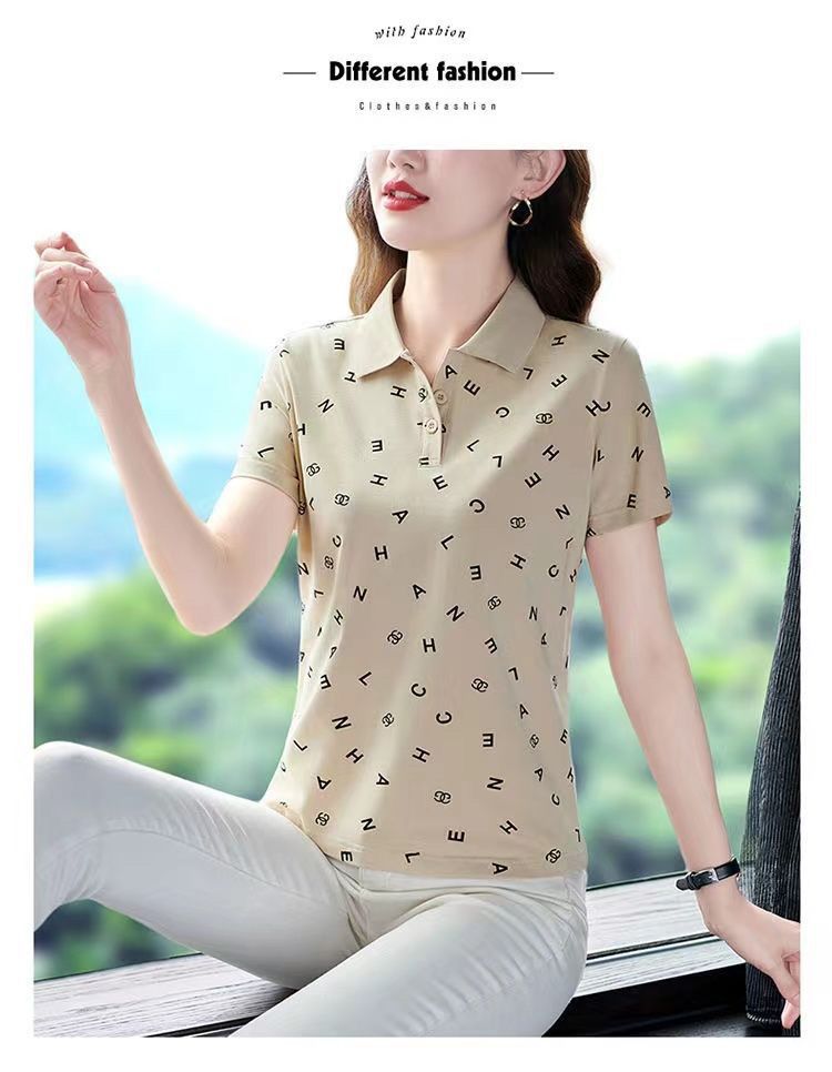 妈妈夏装t恤短袖女2023年新款翻领大码polo领体桖衫时尚洋气上衣