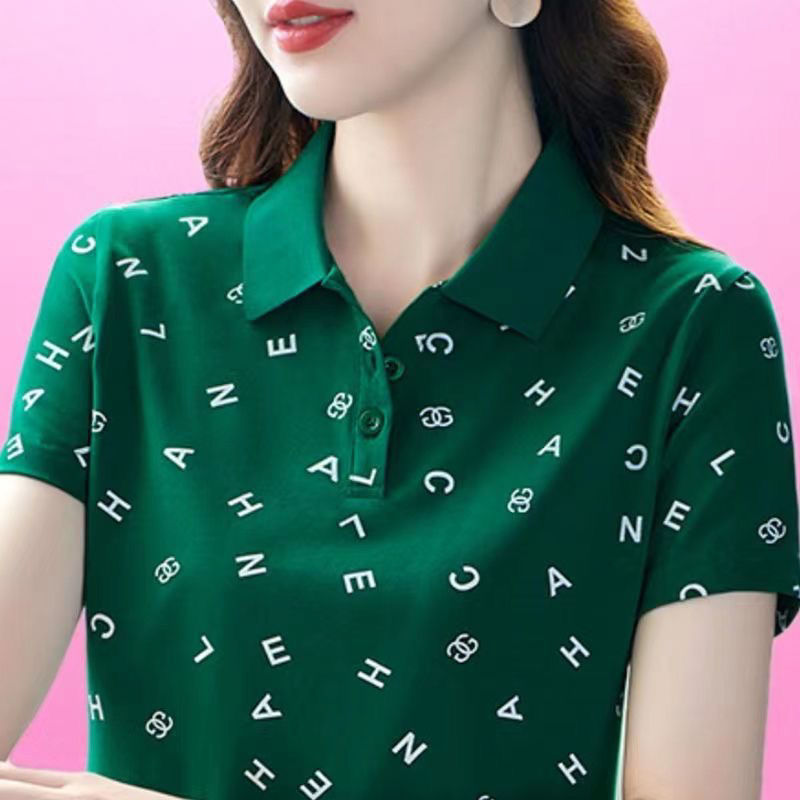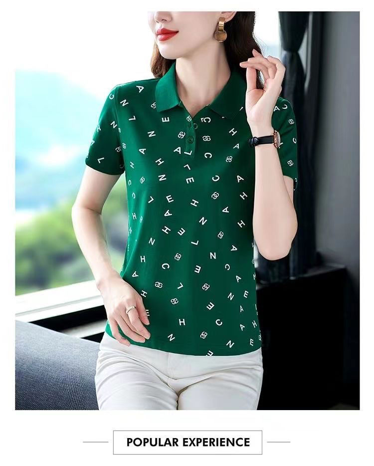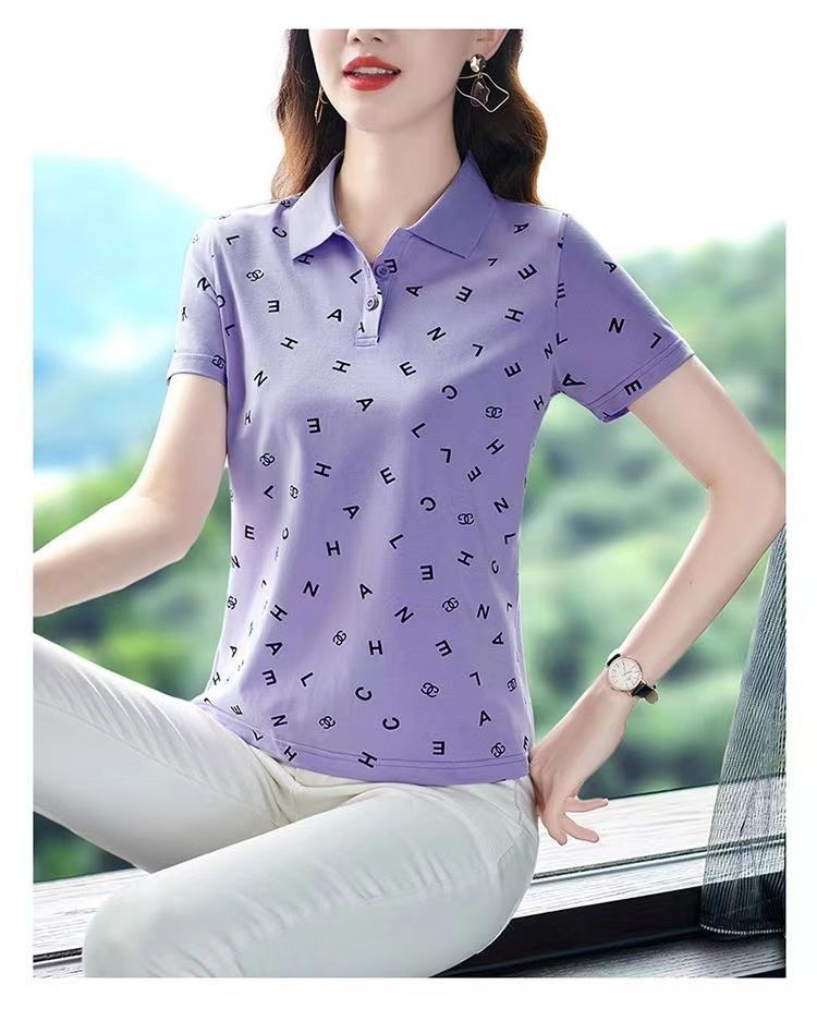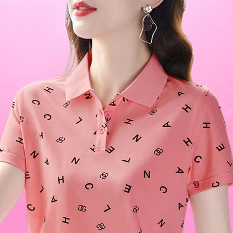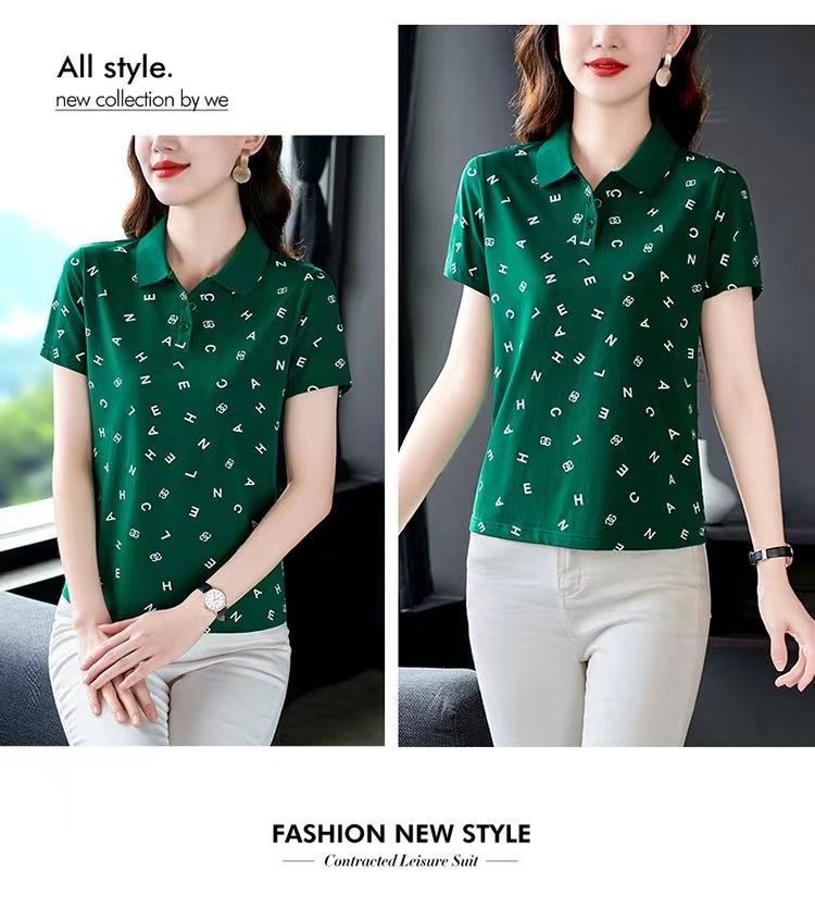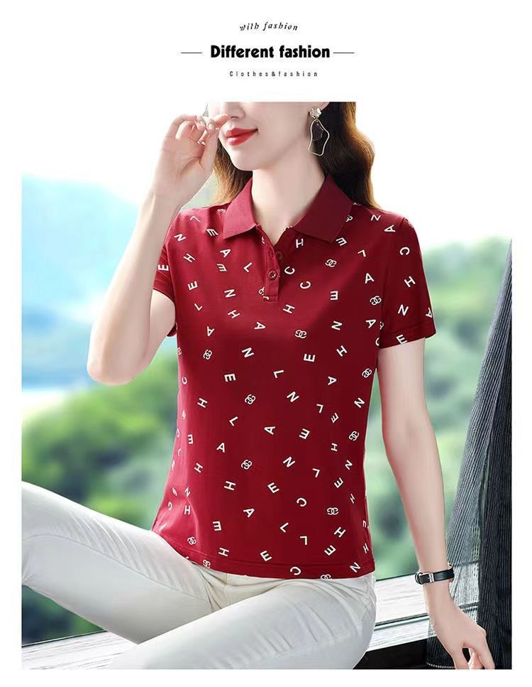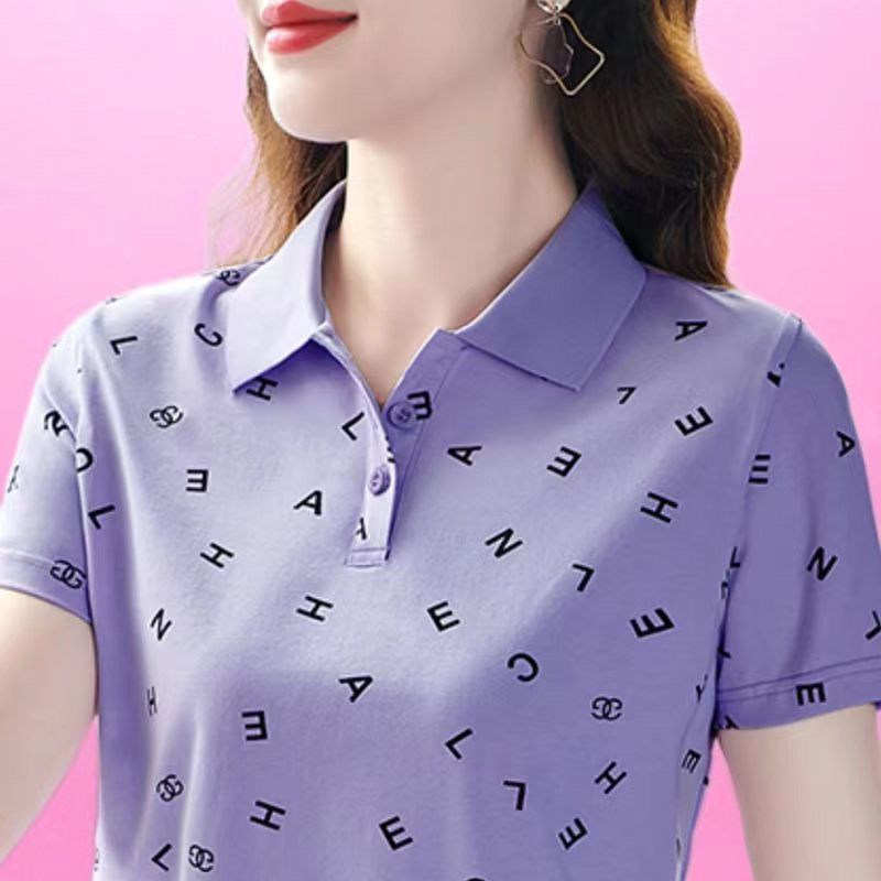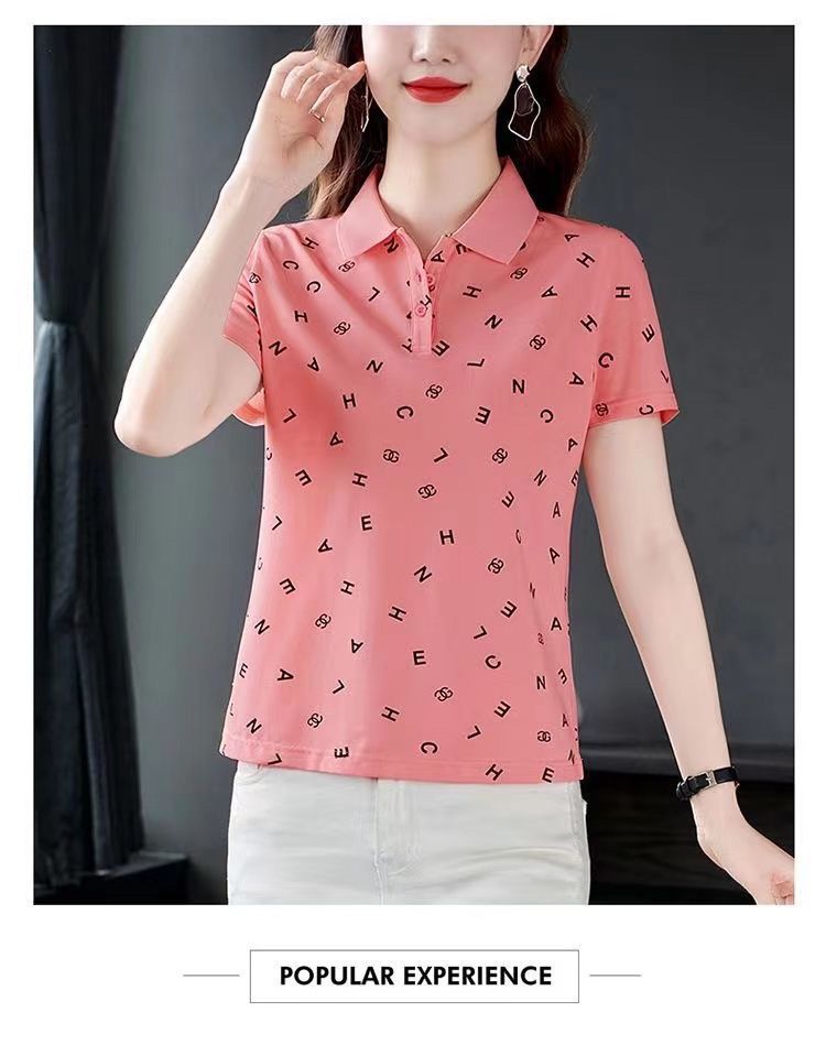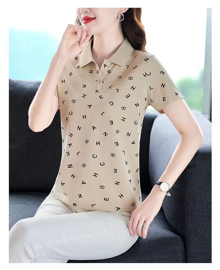 妈妈夏装t恤短袖女2023年新款翻领大码polo领体桖衫时尚洋气上衣