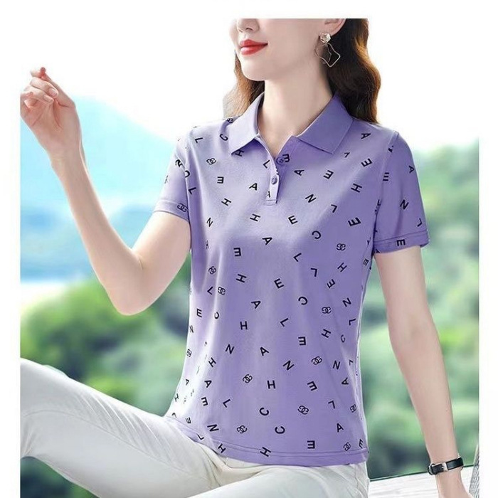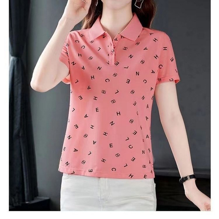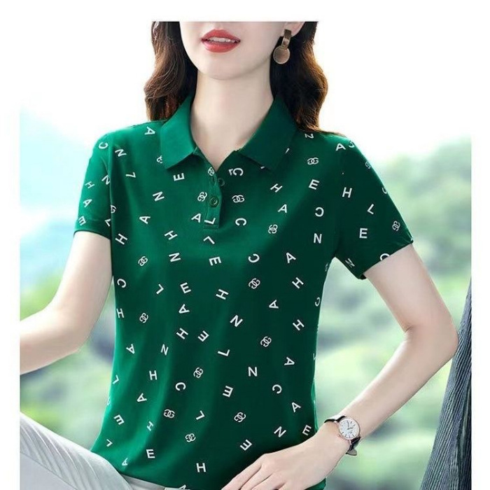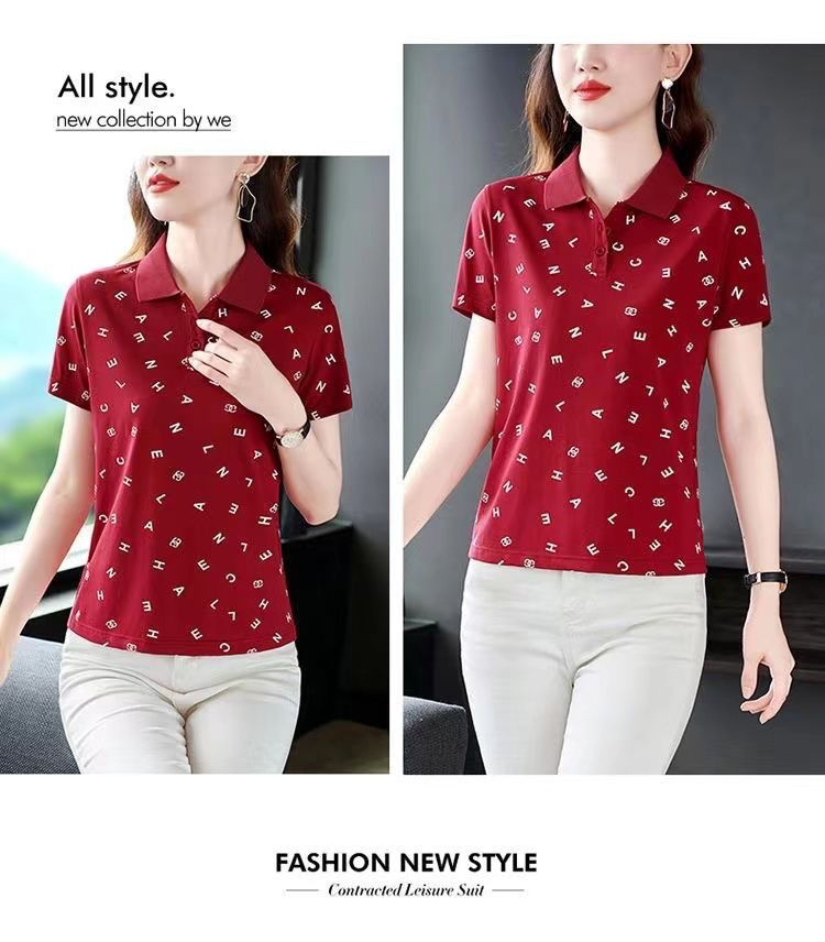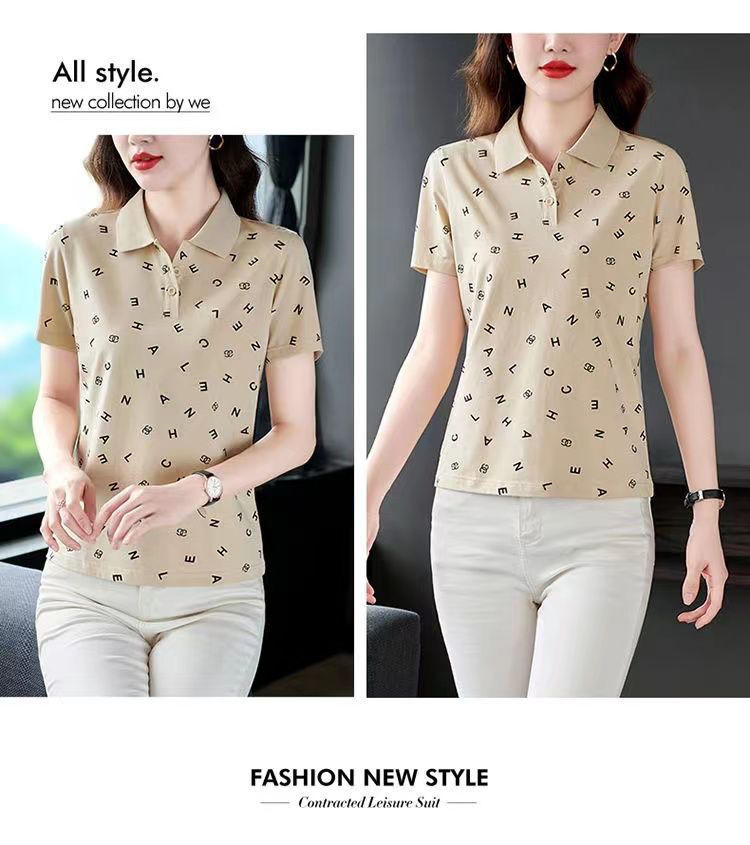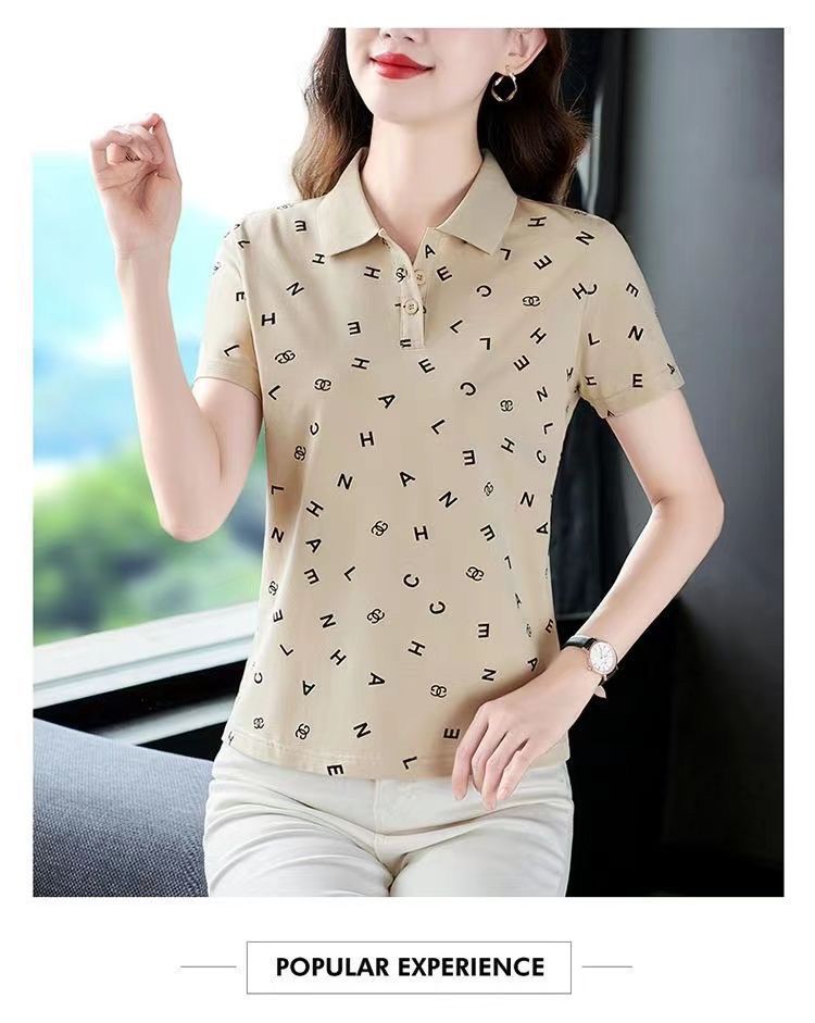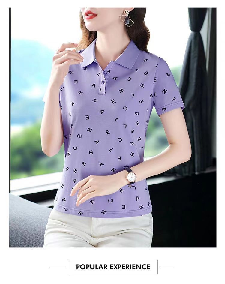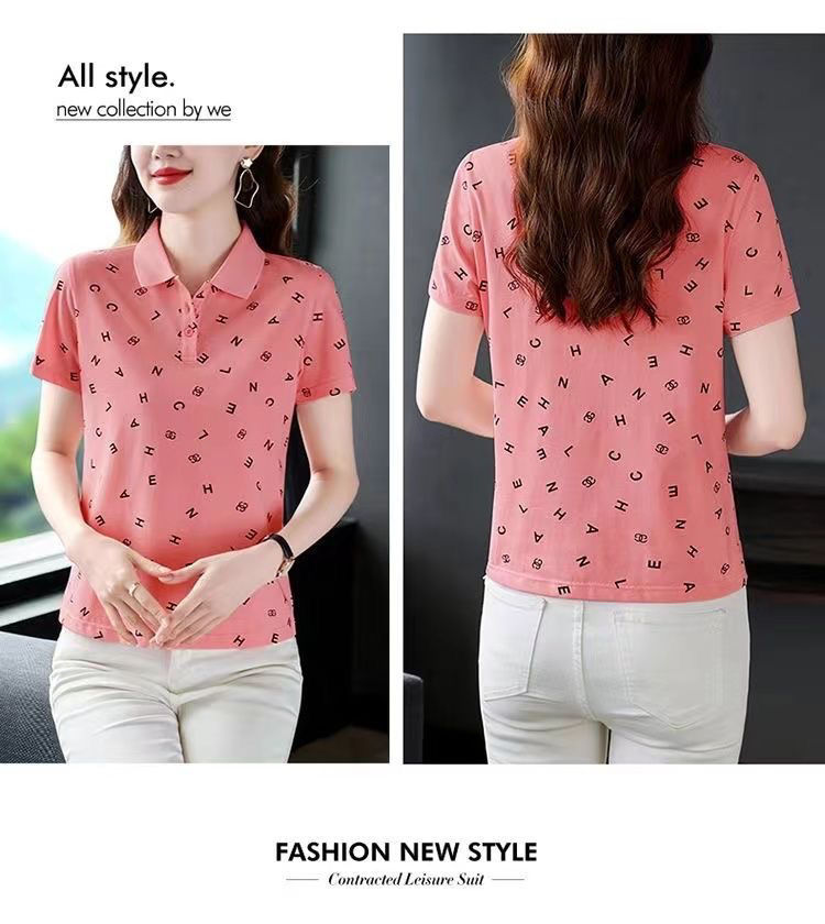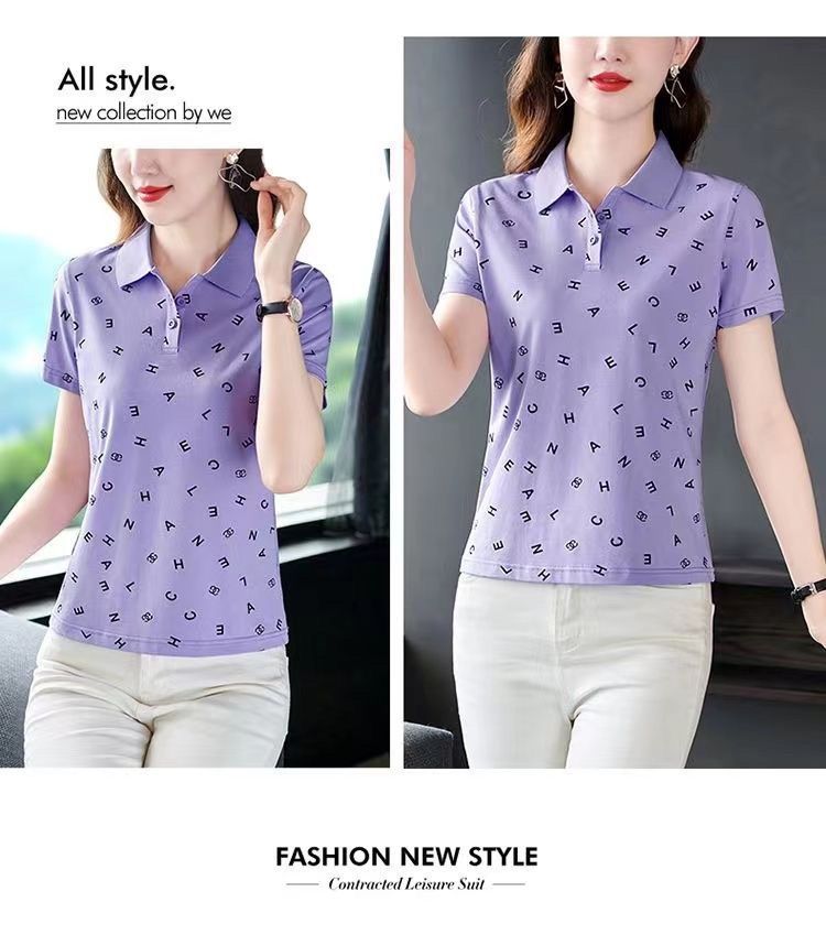 妈妈夏装t恤短袖女2023年新款翻领大码polo领体桖衫时尚洋气上衣