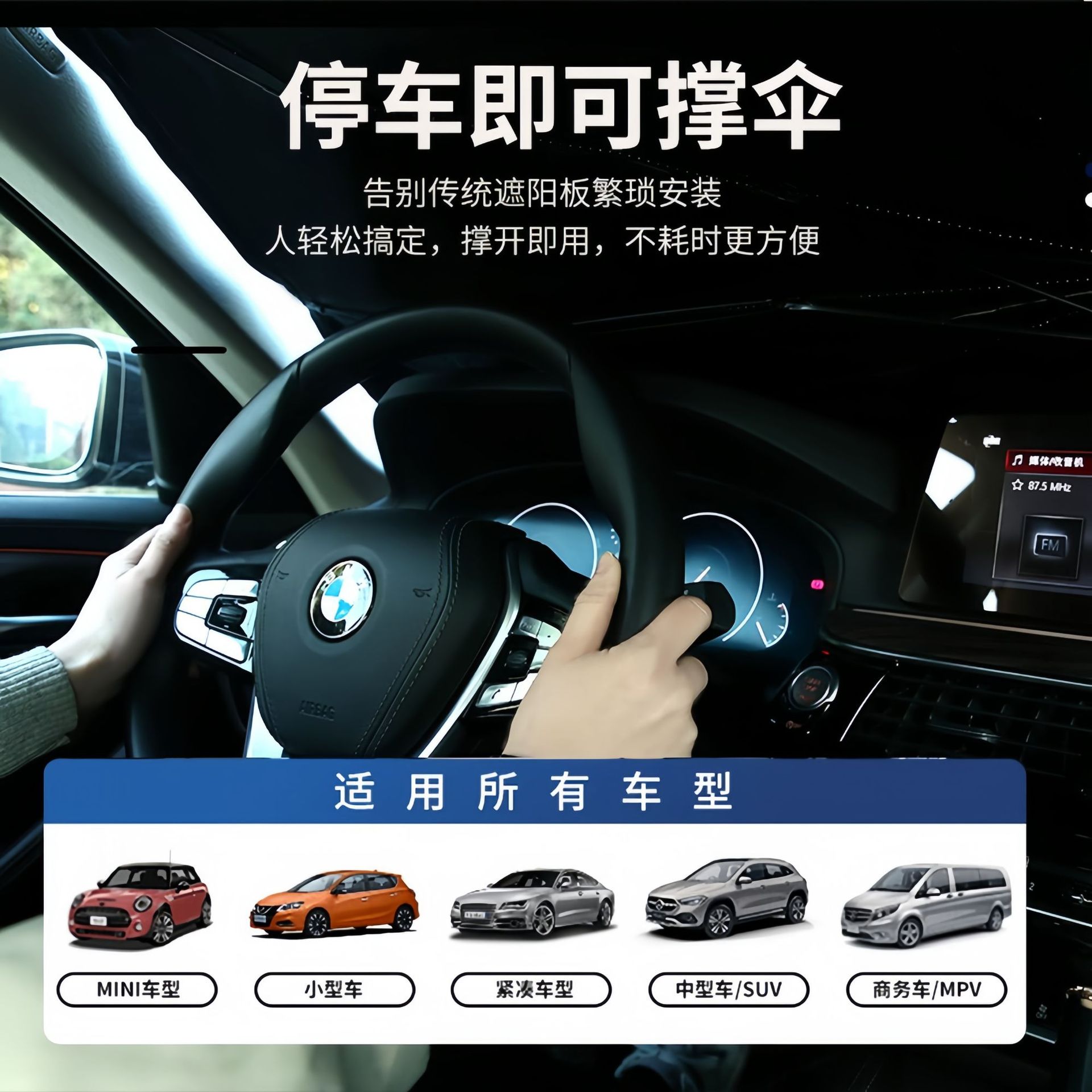新款镭射汽车遮阳伞弯柄旋转不伤屏防晒隔热遮阳挡汽车前挡玻璃伞