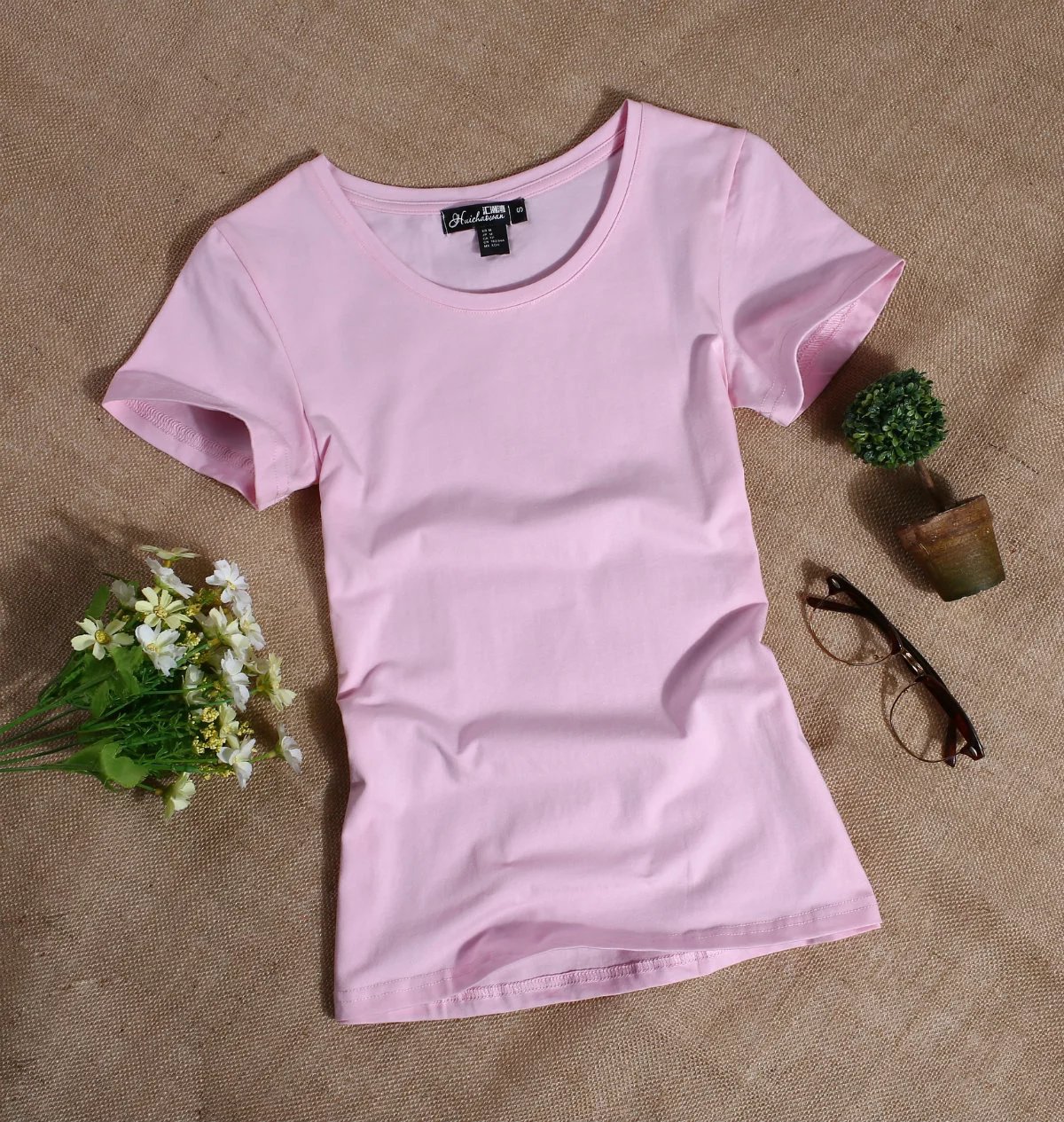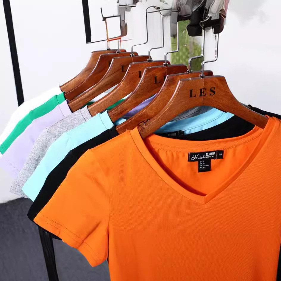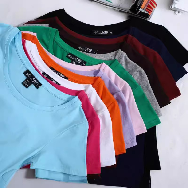 2024女款夏天短袖纯色修身打底衫圆领简约少女装学生t恤上衣批发