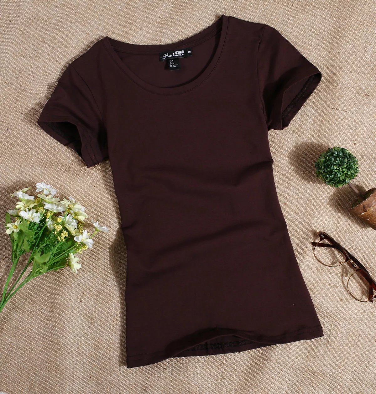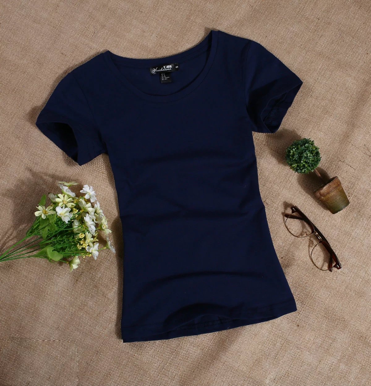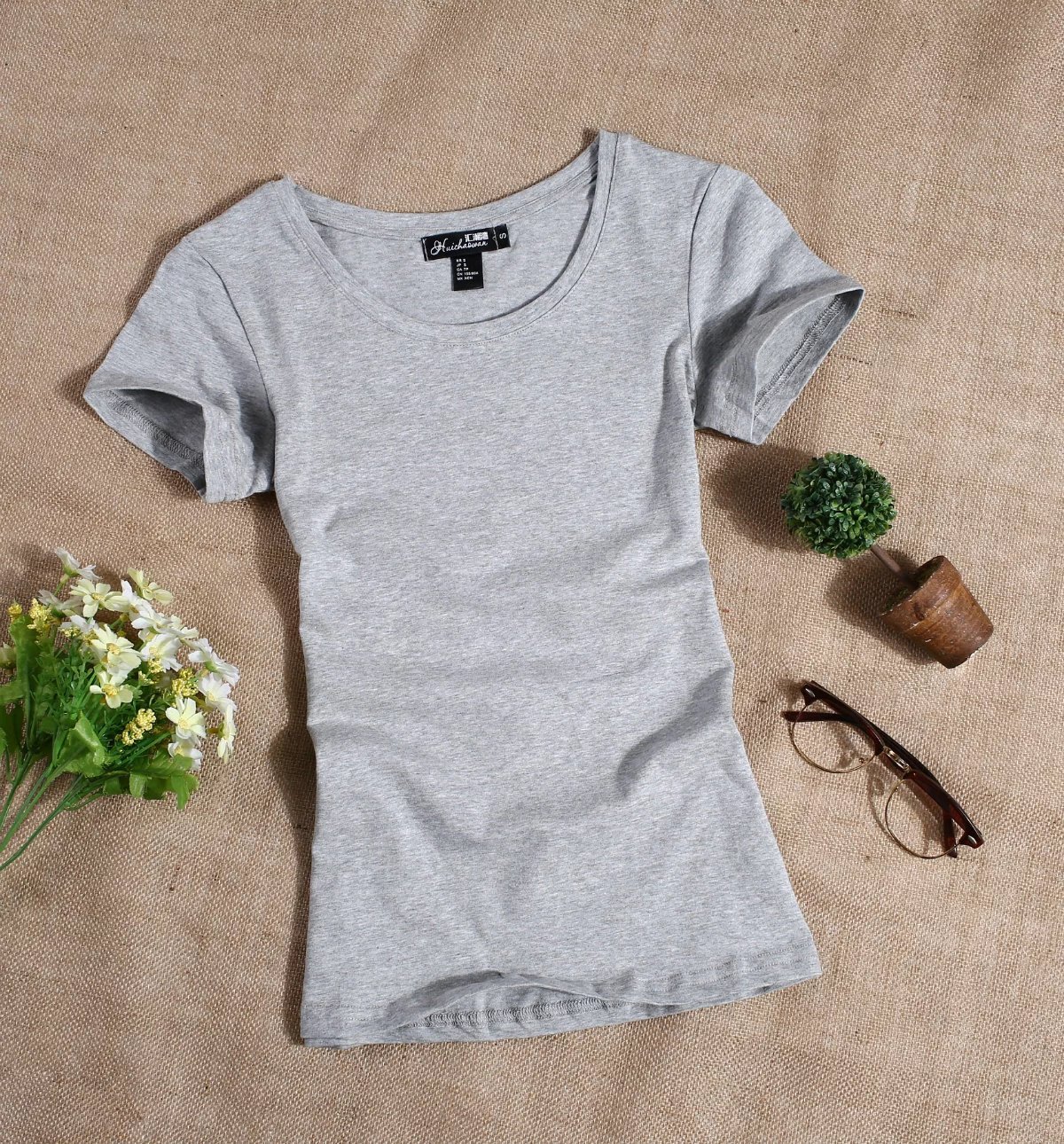 2024女款夏天短袖纯色修身打底衫圆领简约少女装学生t恤上衣批发