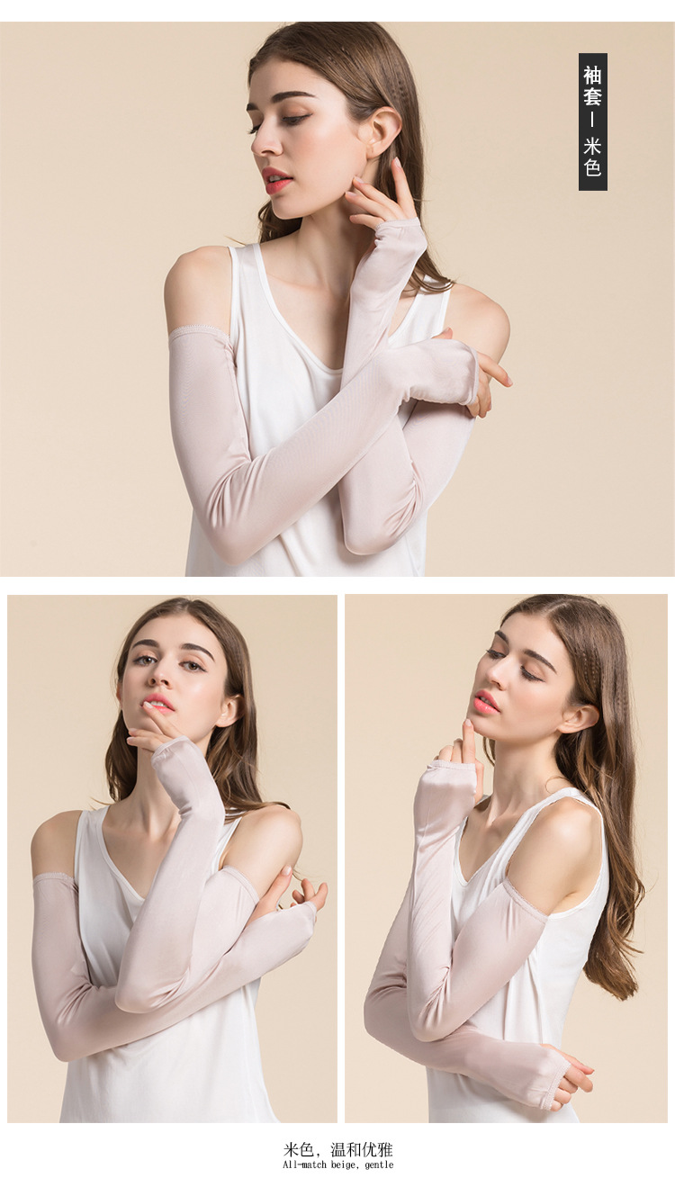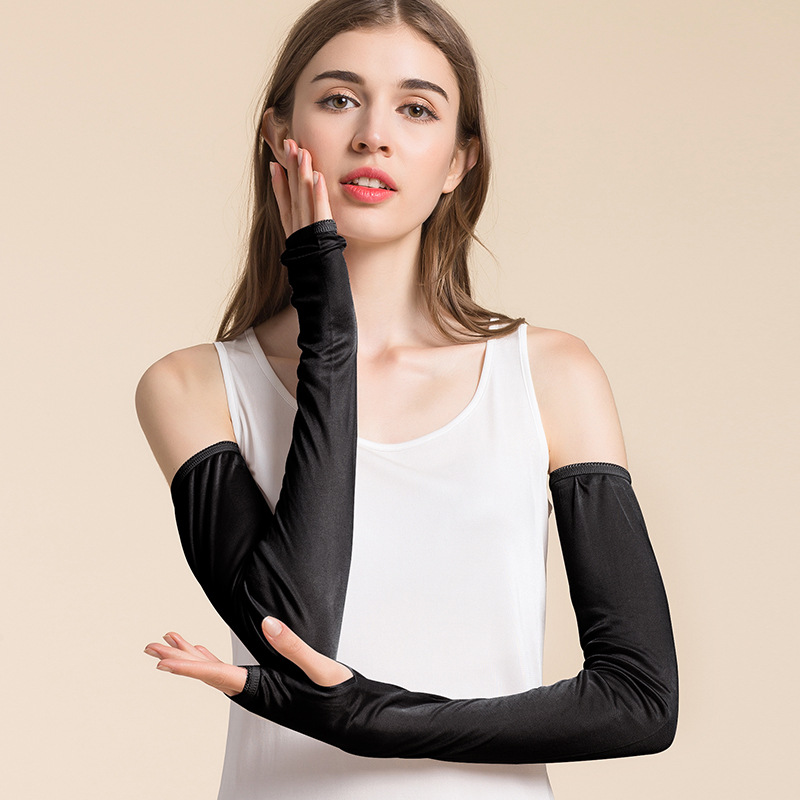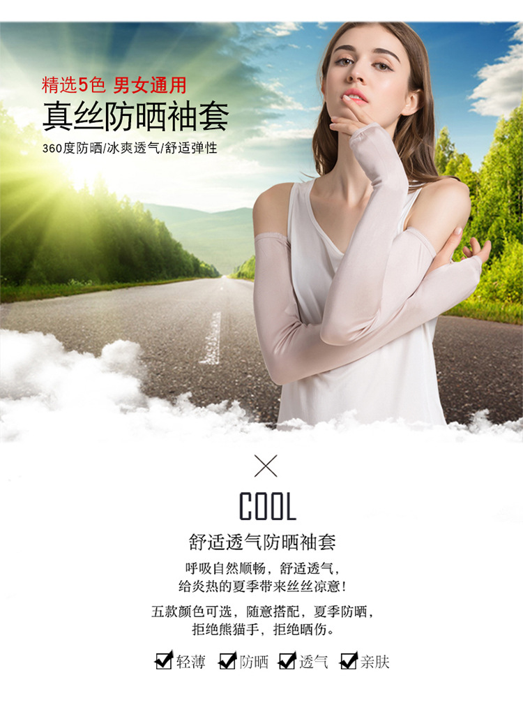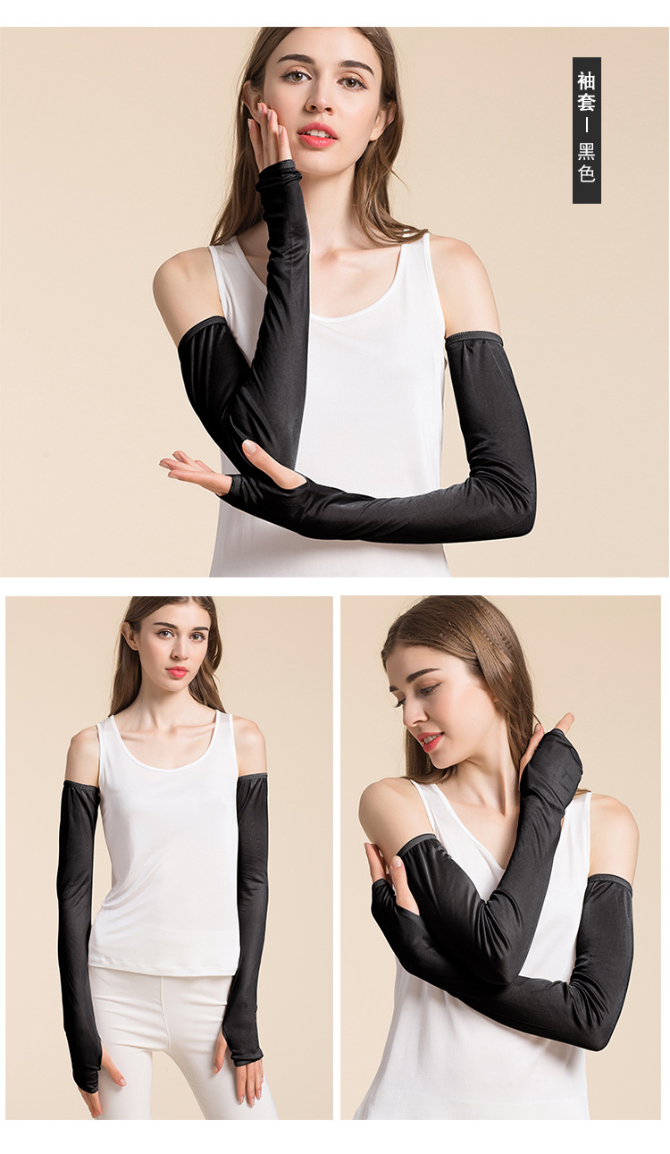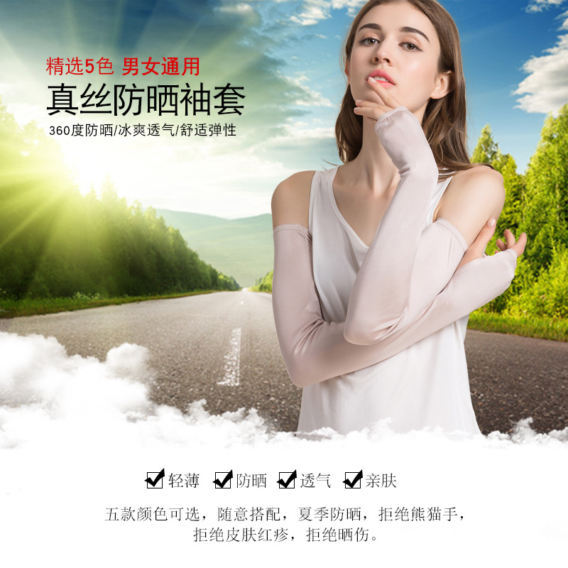 《加工定制》华业真丝防晒袖套女开车骑行遮阳桑蚕丝透气护臂手套