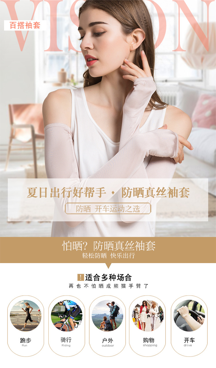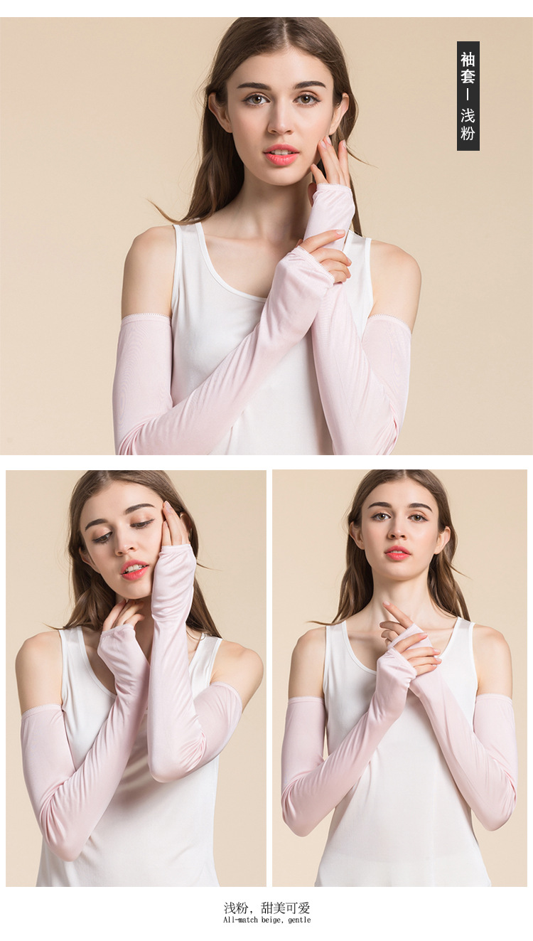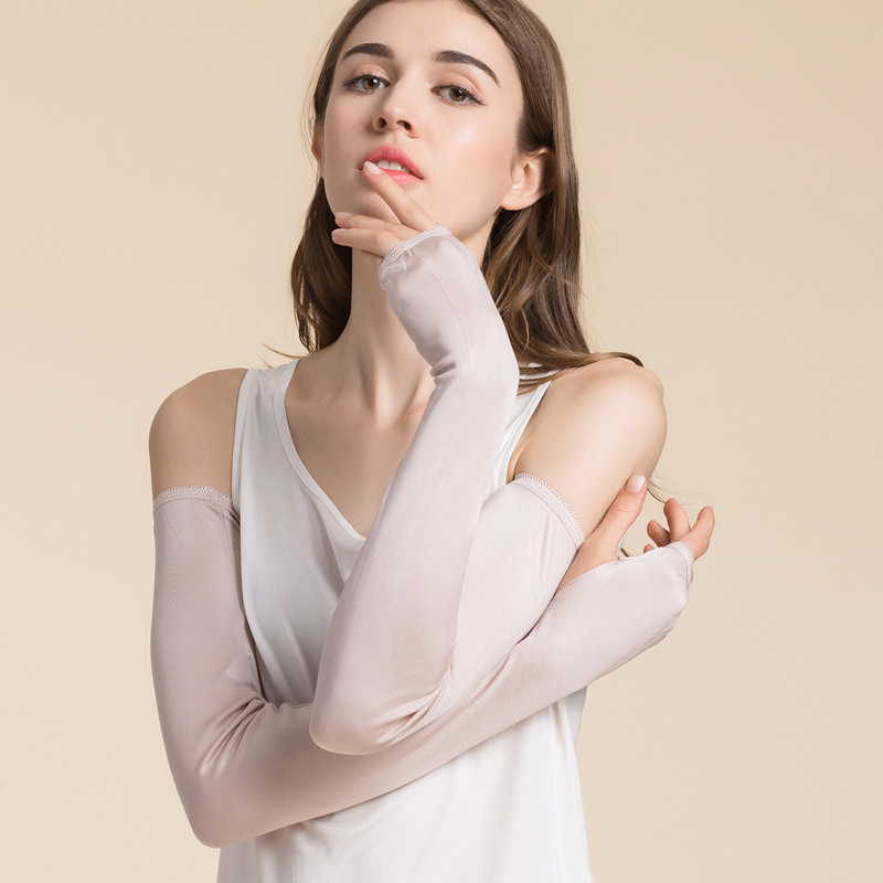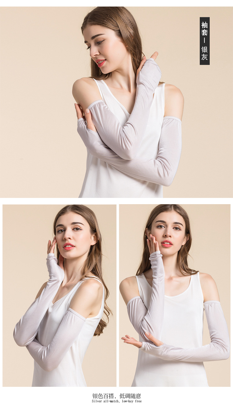 《加工定制》华业真丝防晒袖套女开车骑行遮阳桑蚕丝透气护臂手套