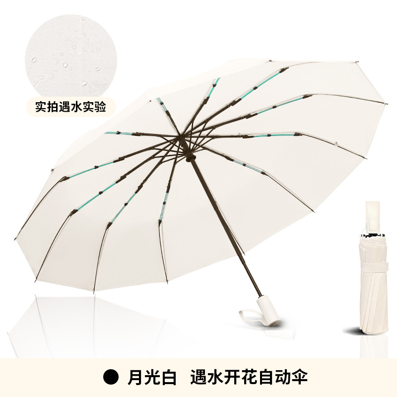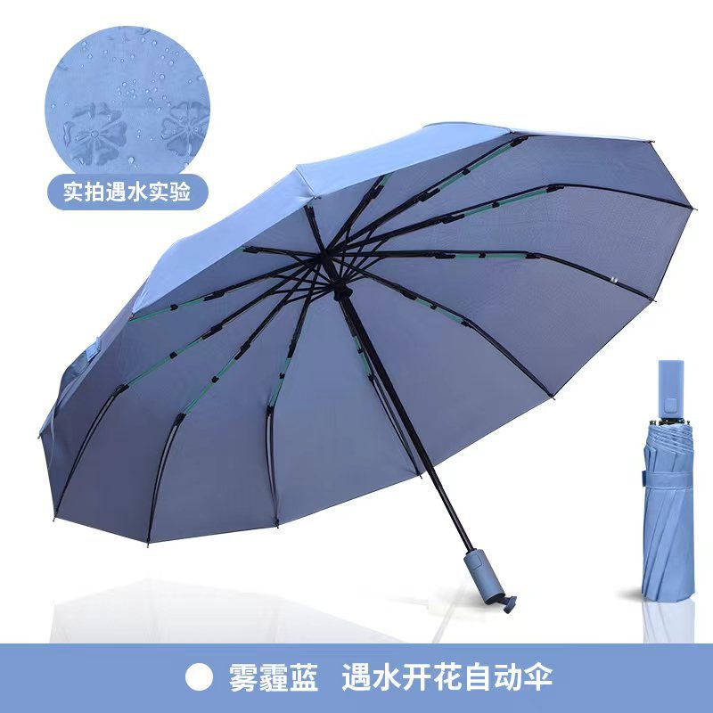 短柄双龙骨24骨全自动折叠雨伞双人遇水现花伞厂家批发太阳伞