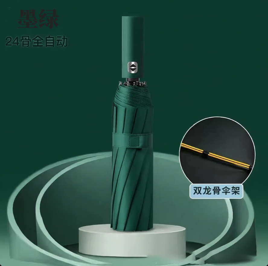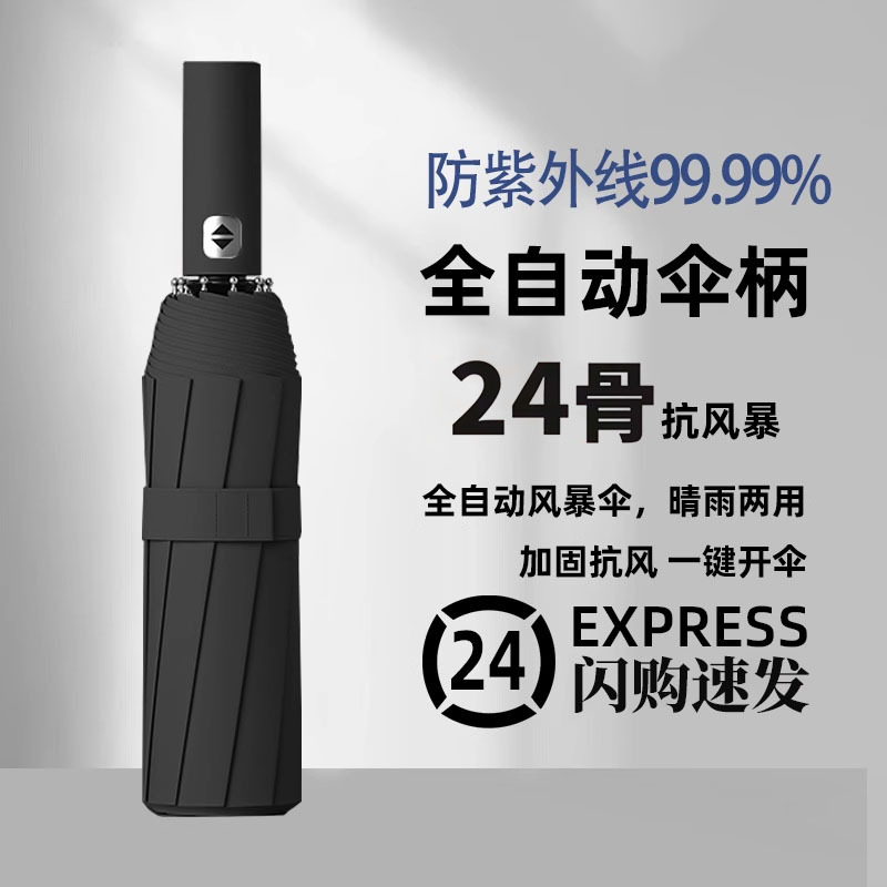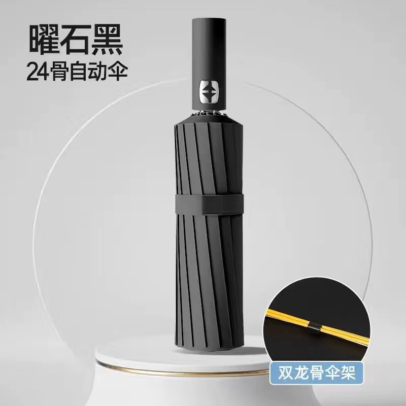 24骨双龙骨自动开合太阳伞防紫外线黑胶加固伞骨晴雨伞批发雨伞