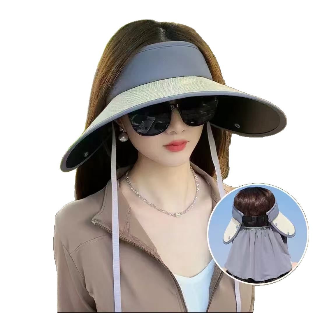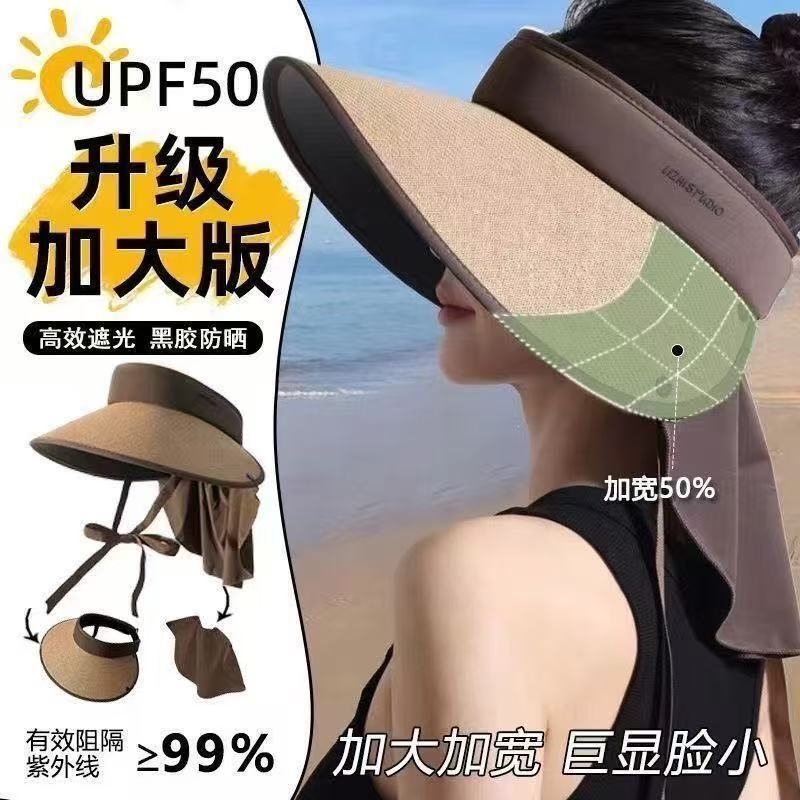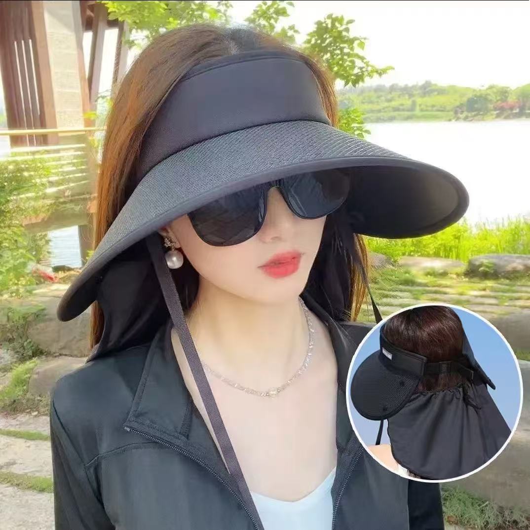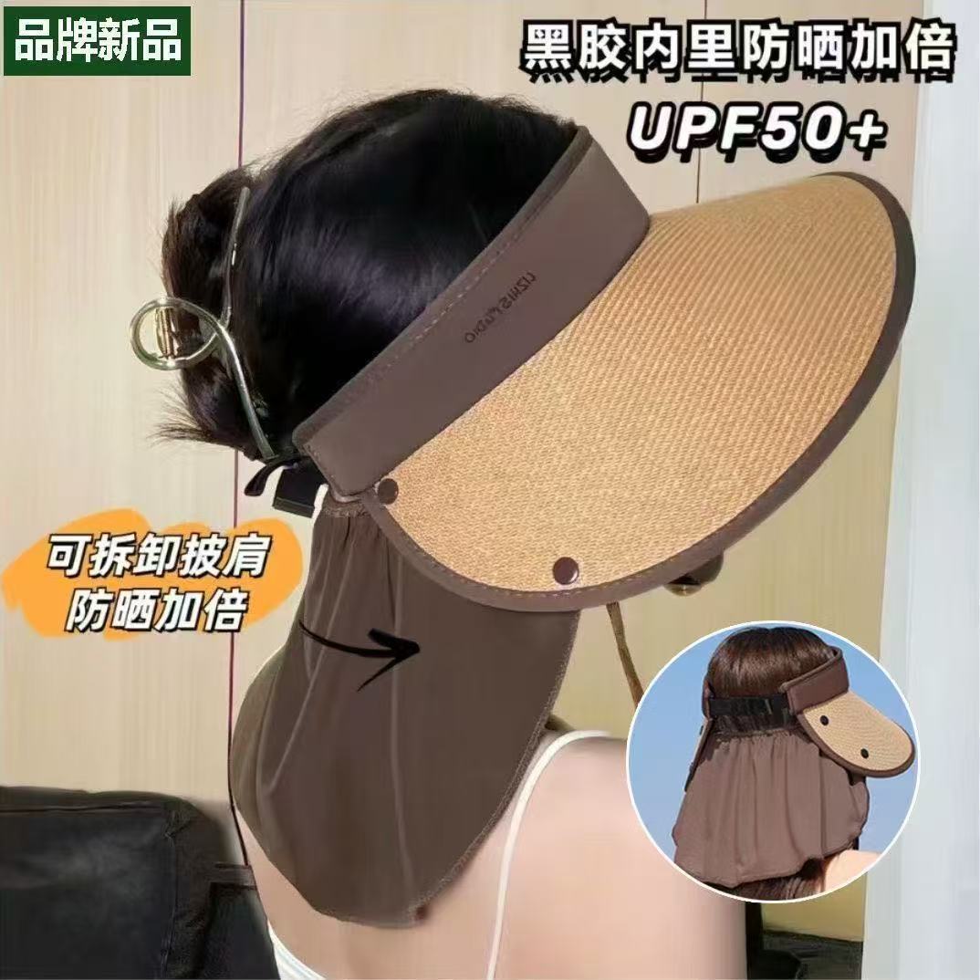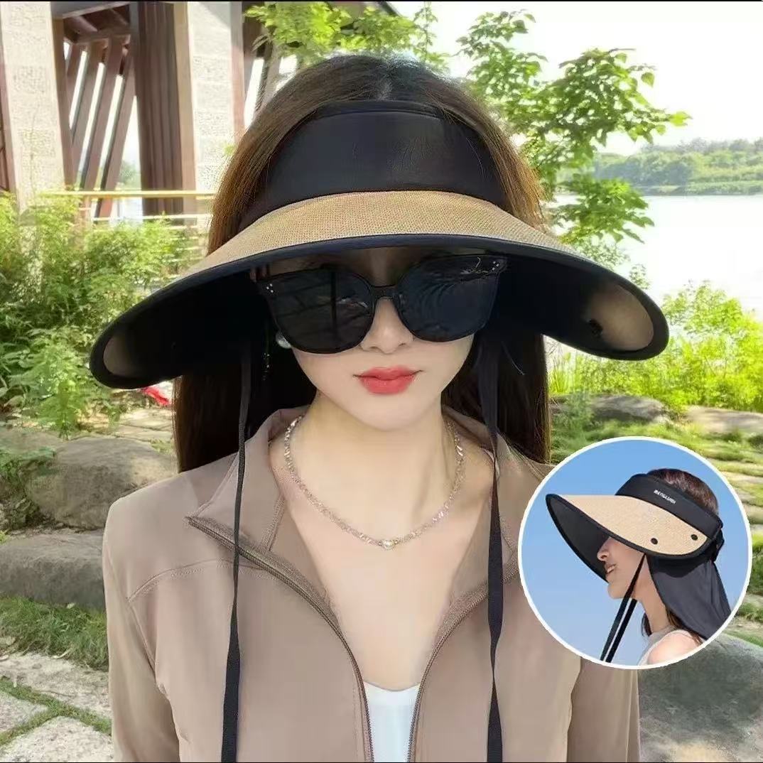 空顶防晒帽女护颈防护户外出游大帽檐全遮脸遮阳帽草编帽文艺复古