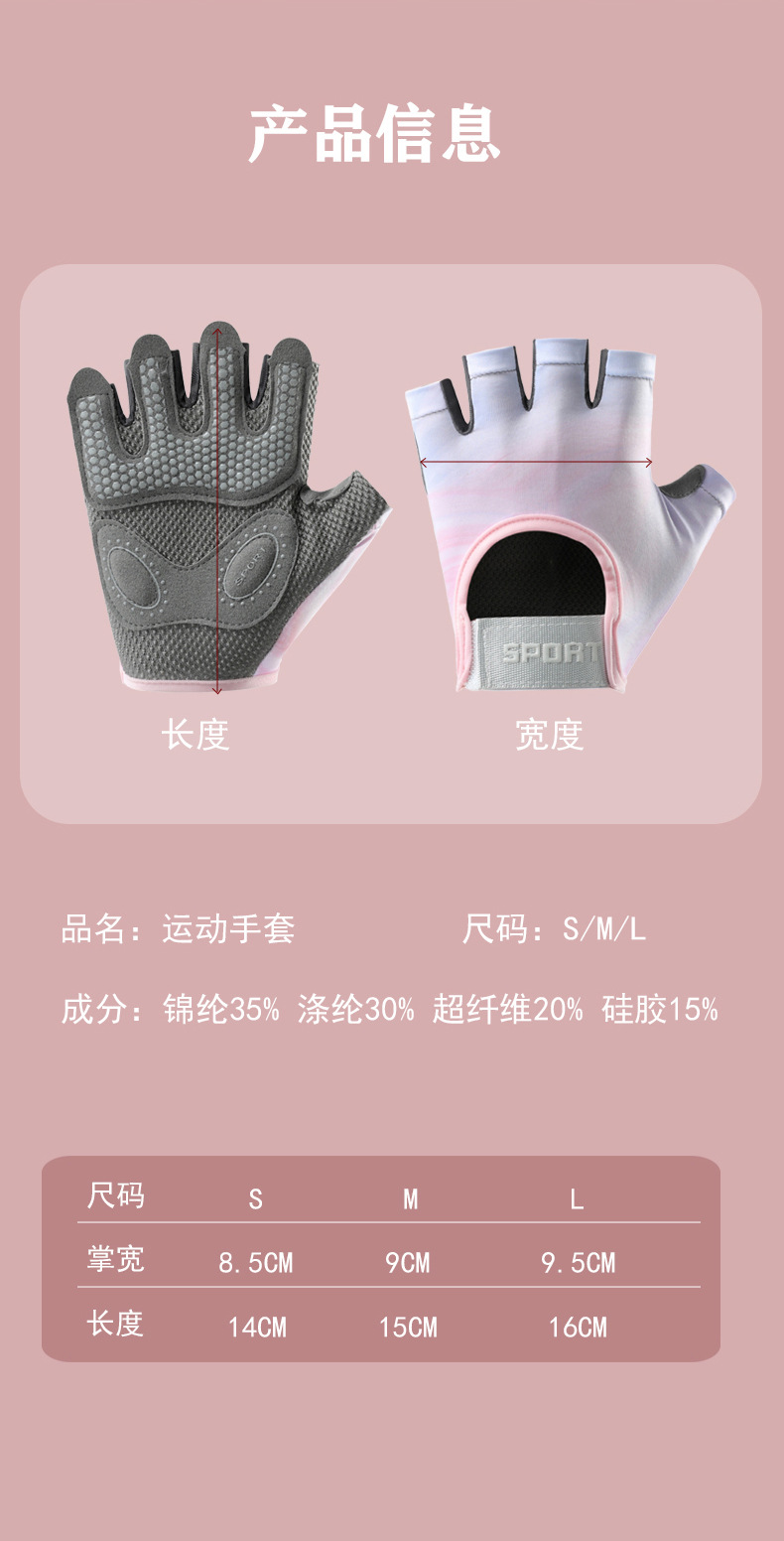 新款运动手套女瑜伽防滑减震耐磨透气防起茧健身撸铁锻炼半指手套