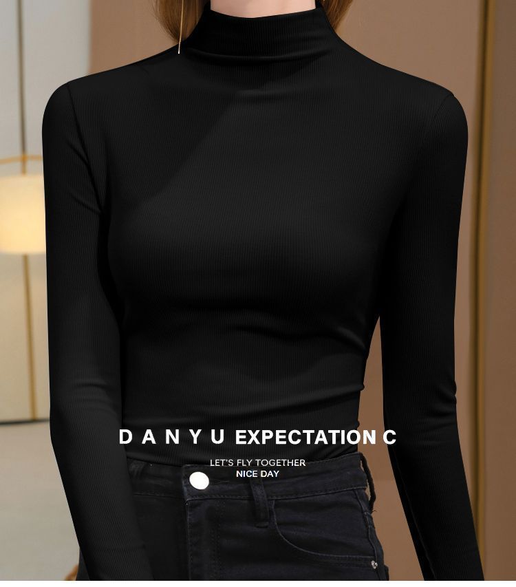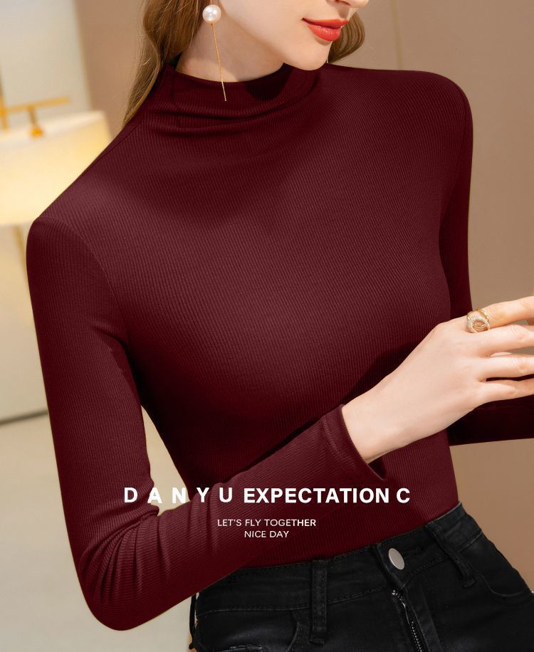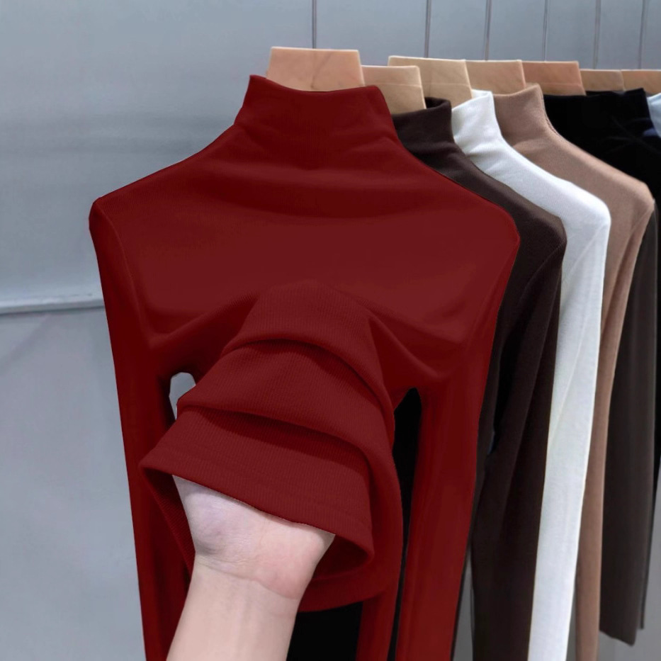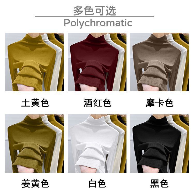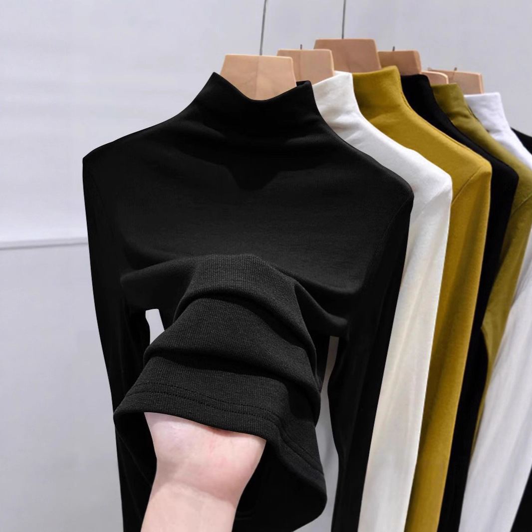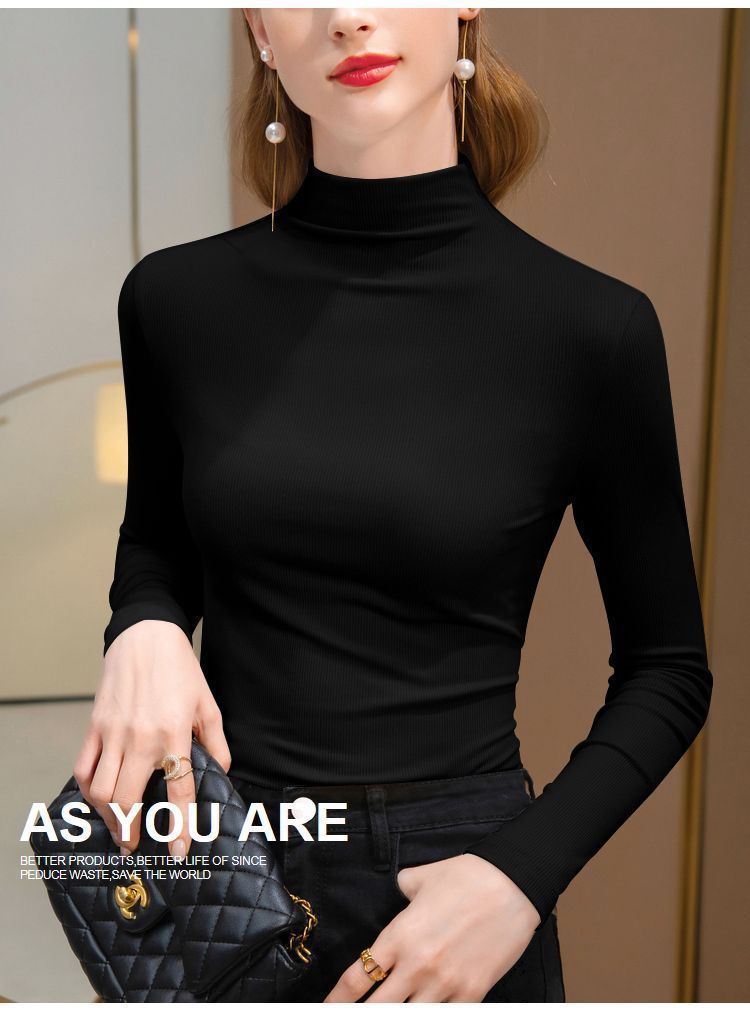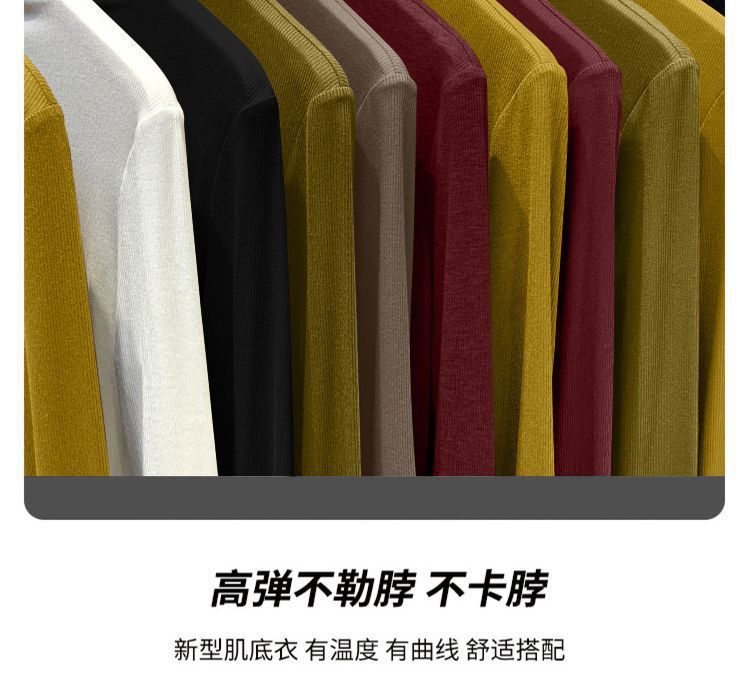 2025年螺纹半高领打底衫女春秋冬时尚长袖t恤修身德绒内搭上衣