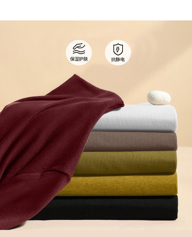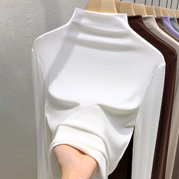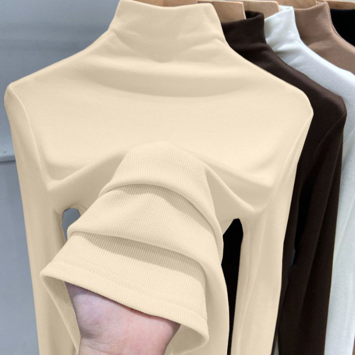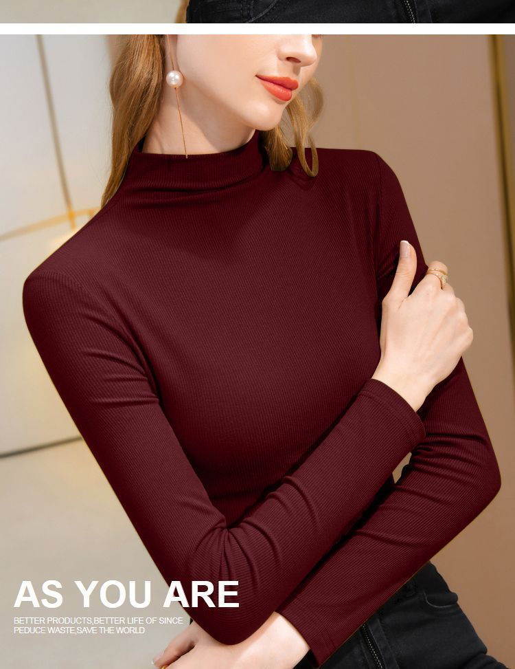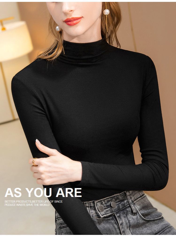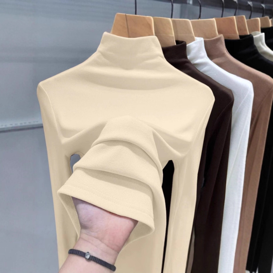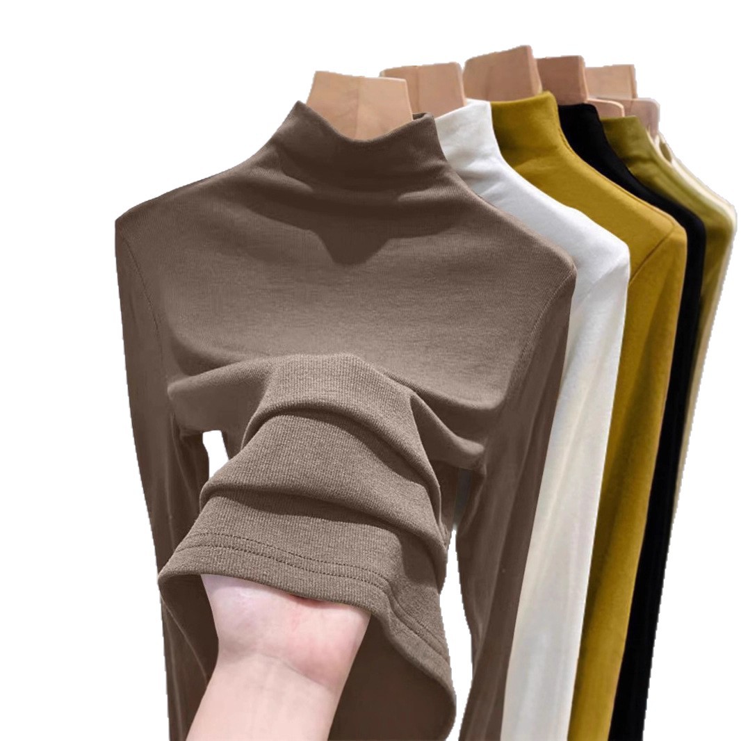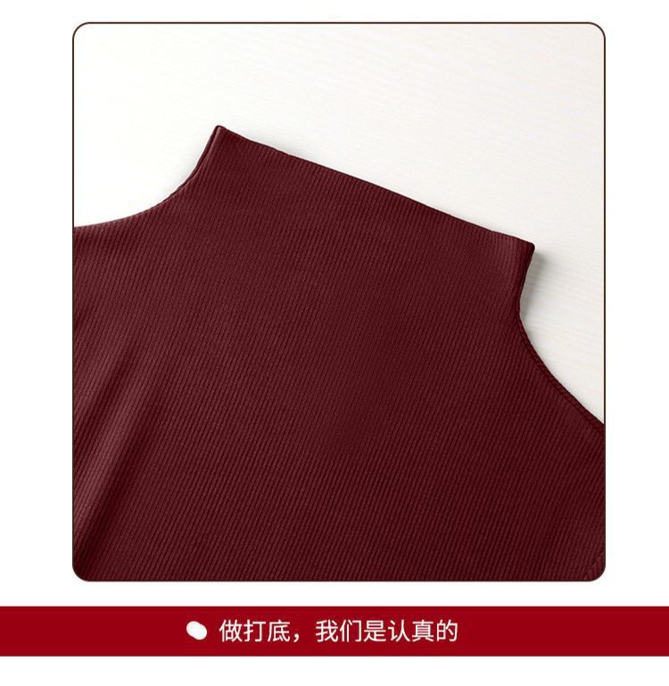 2025年螺纹半高领打底衫女春秋冬时尚长袖t恤修身德绒内搭上衣