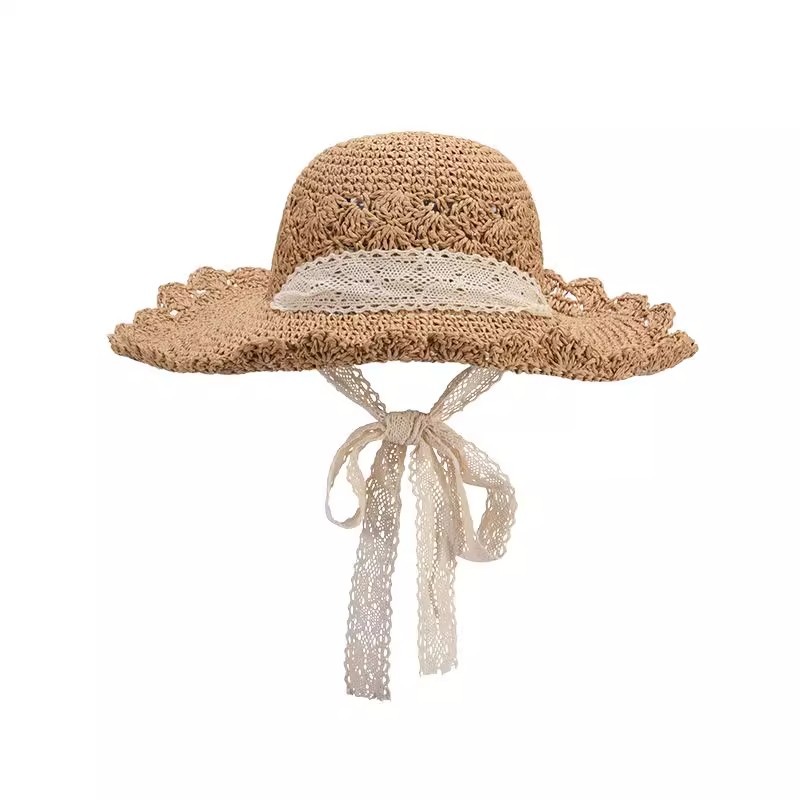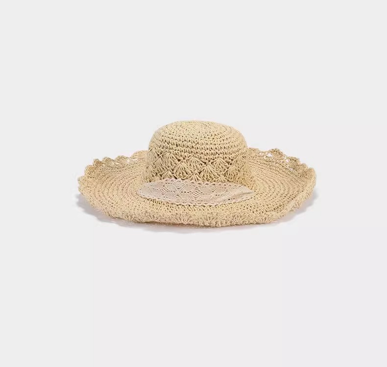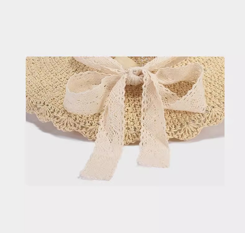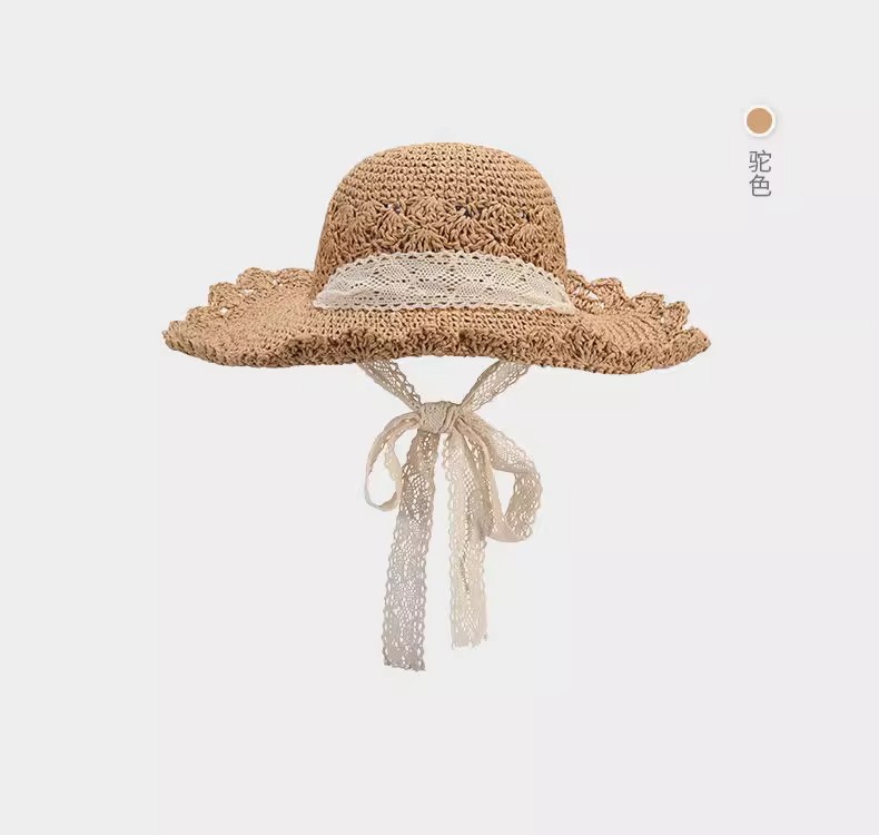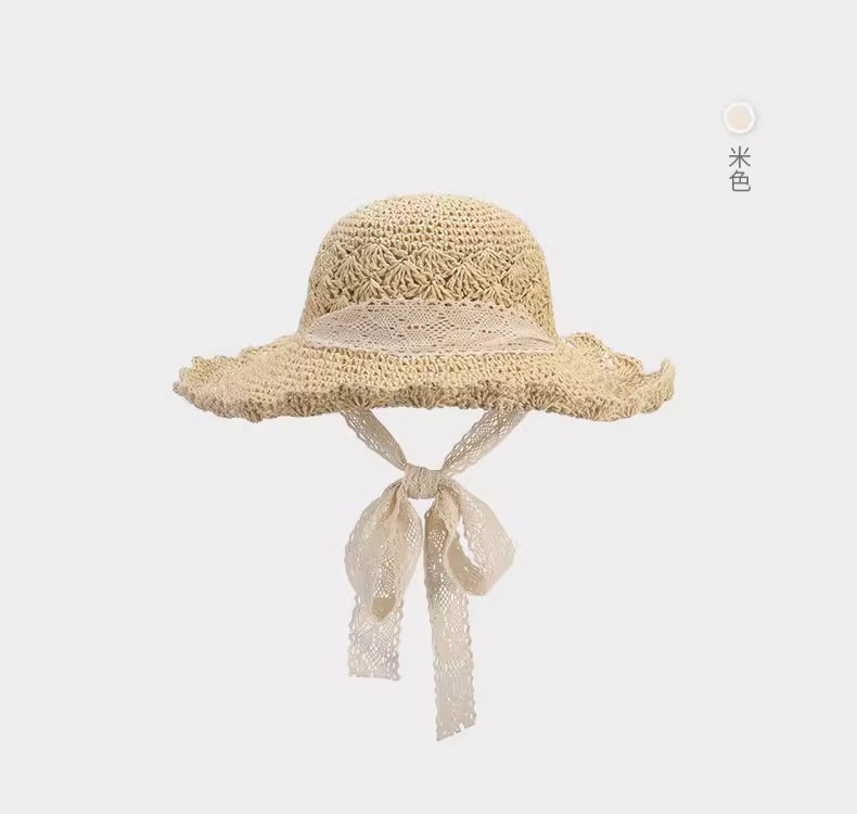 日系夏季沙滩帽蕾丝草帽女小清新防晒帽遮阳旅游度假可折叠太阳帽
