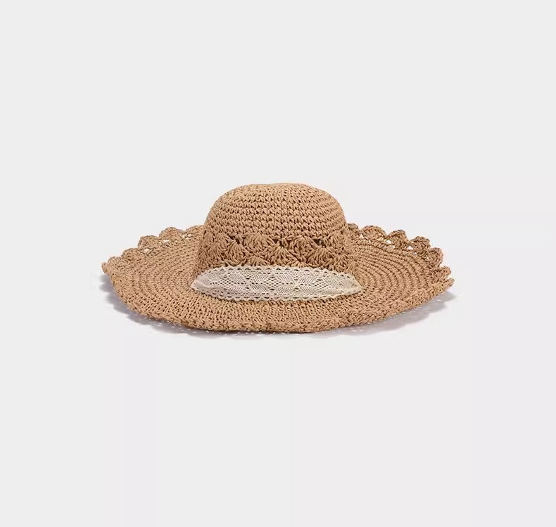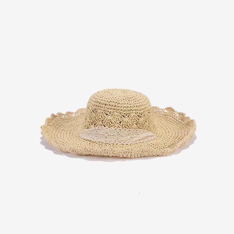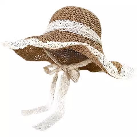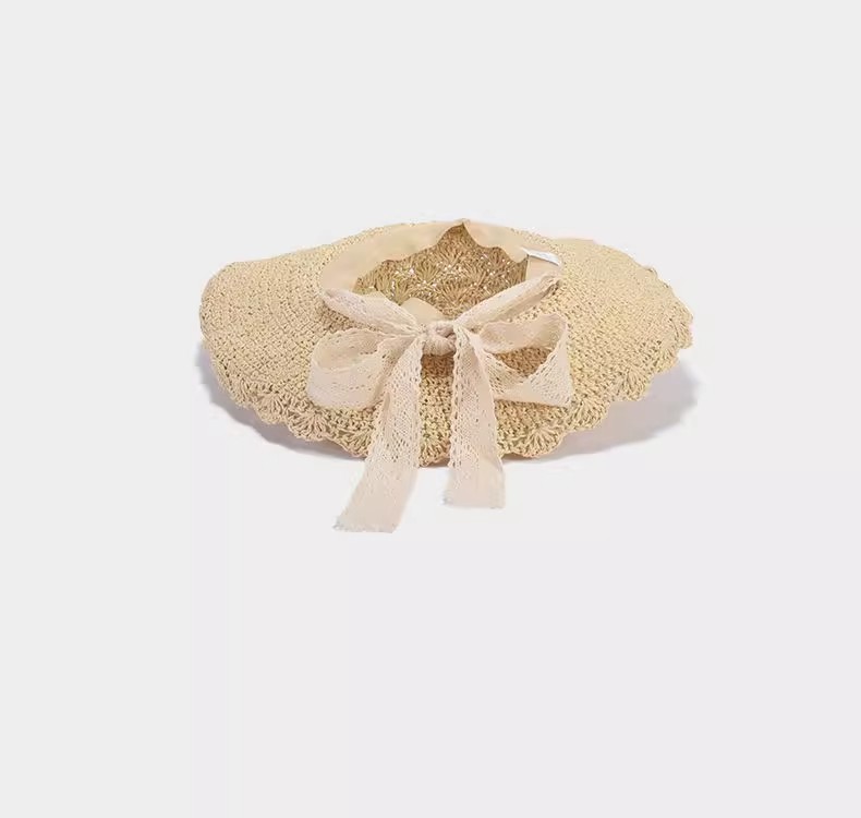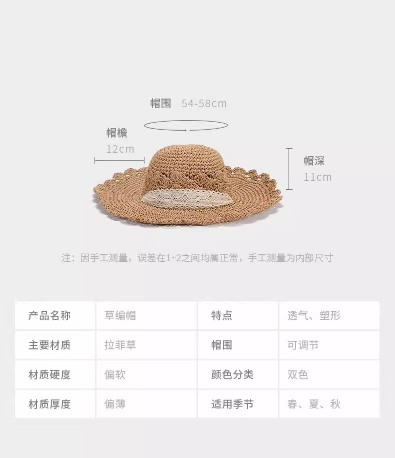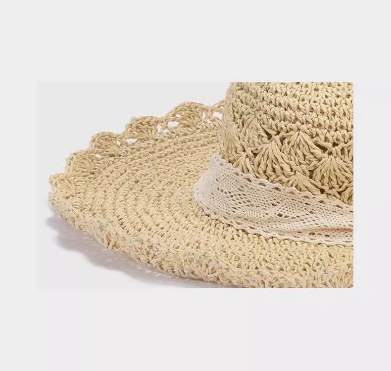 日系夏季沙滩帽蕾丝草帽女小清新防晒帽遮阳旅游度假可折叠太阳帽