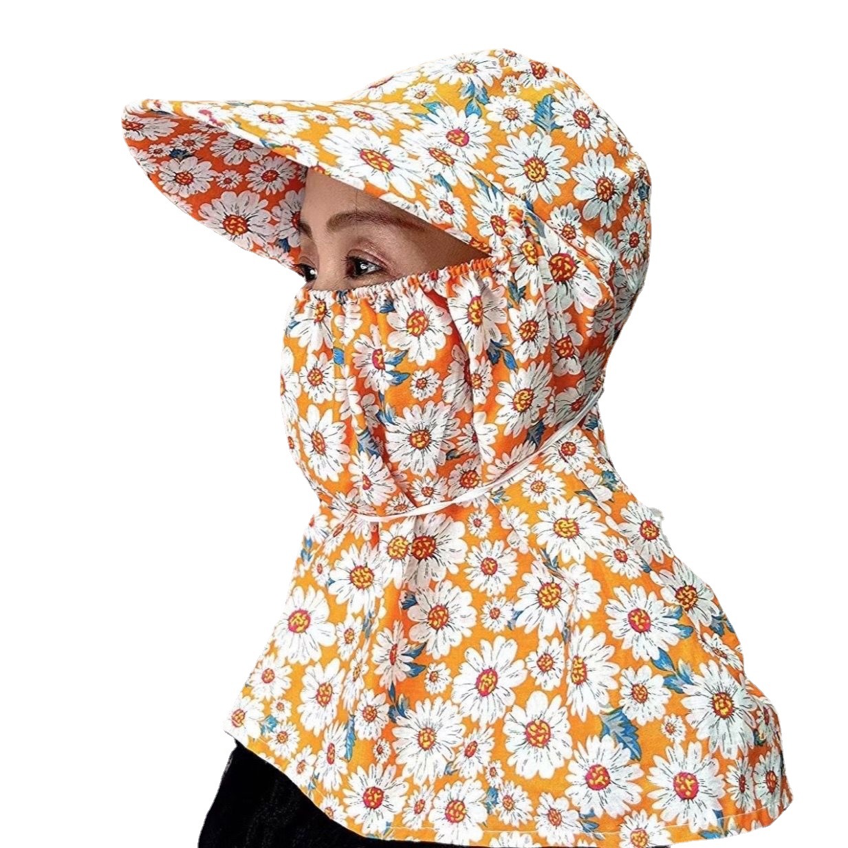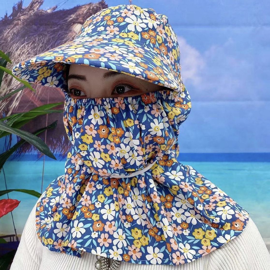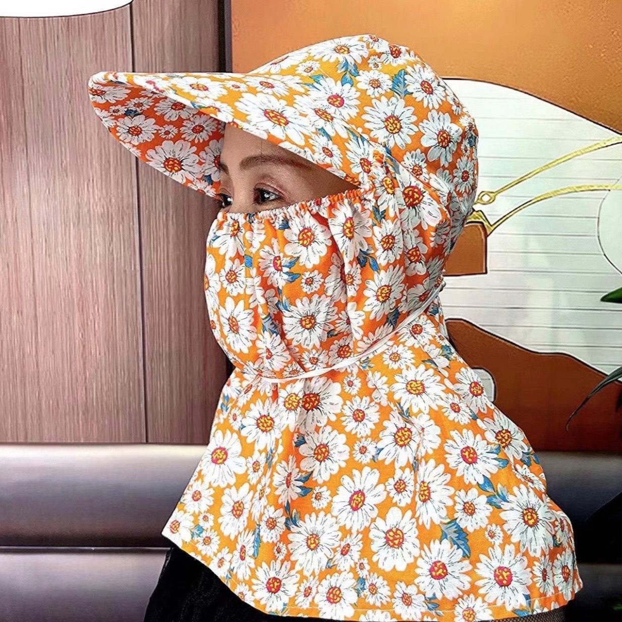 绵绸碎花防晒帽子2023夏季新款干活遮阳帽户外骑行护颈护脸采茶帽