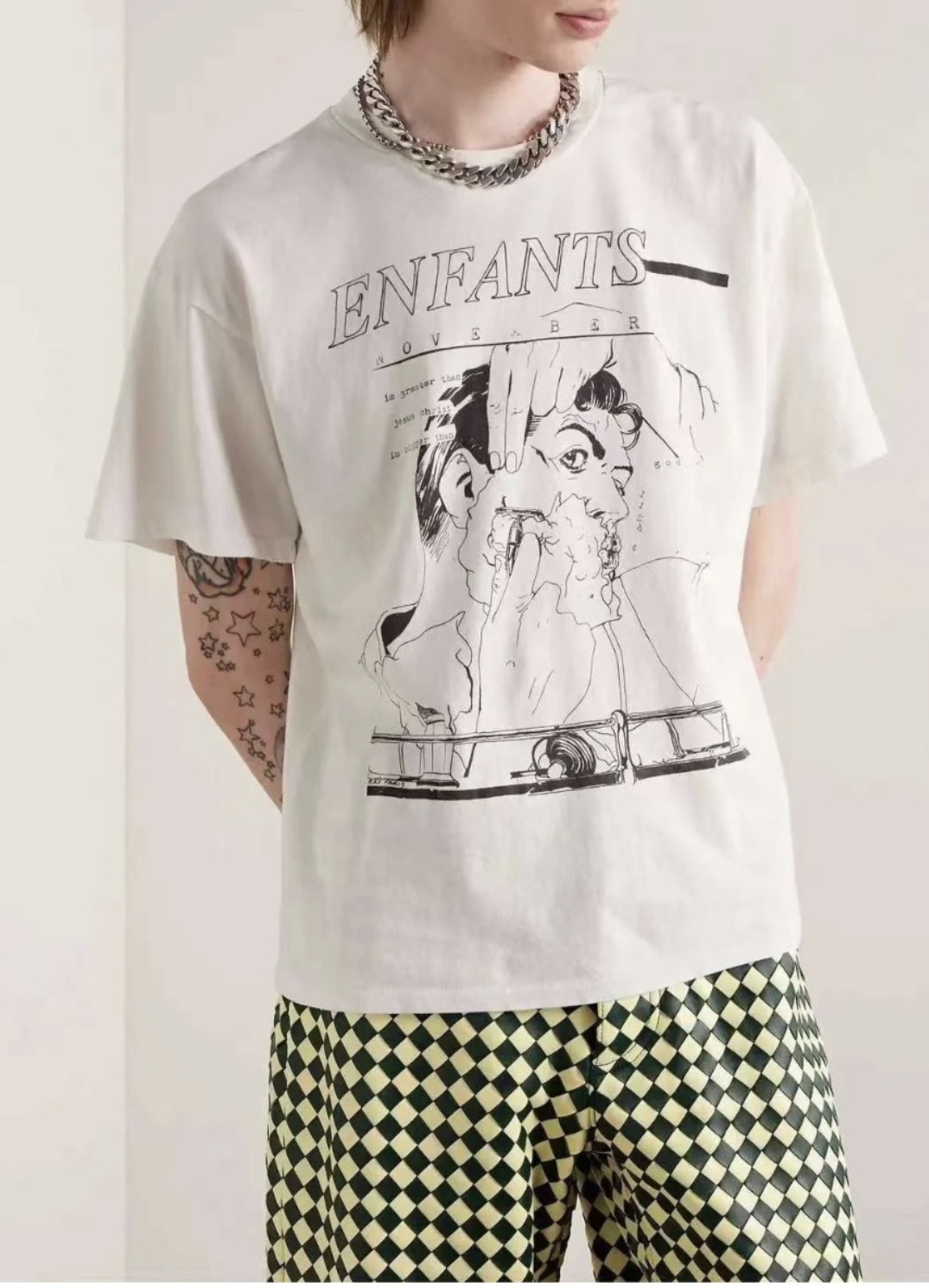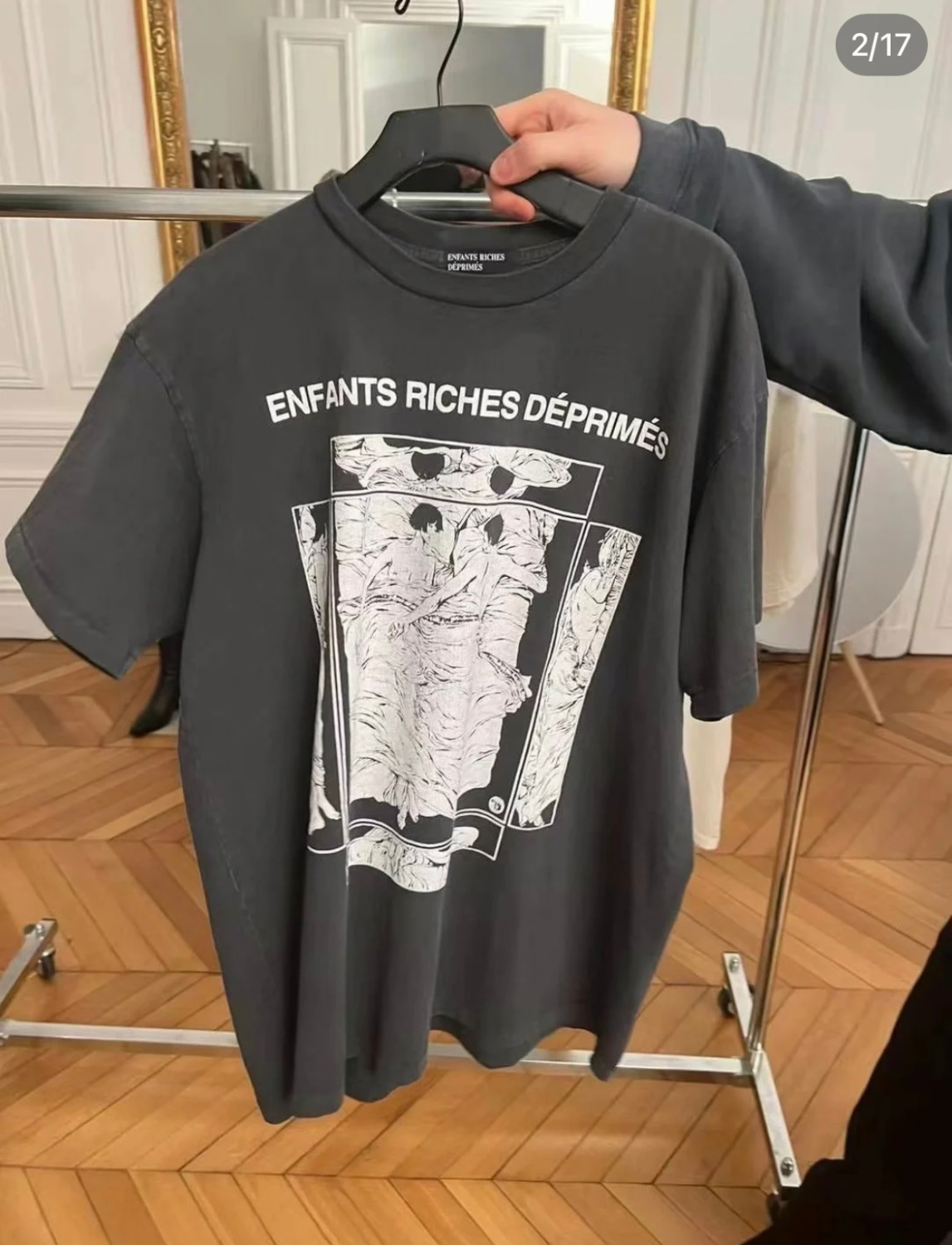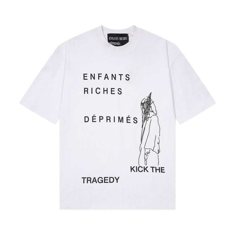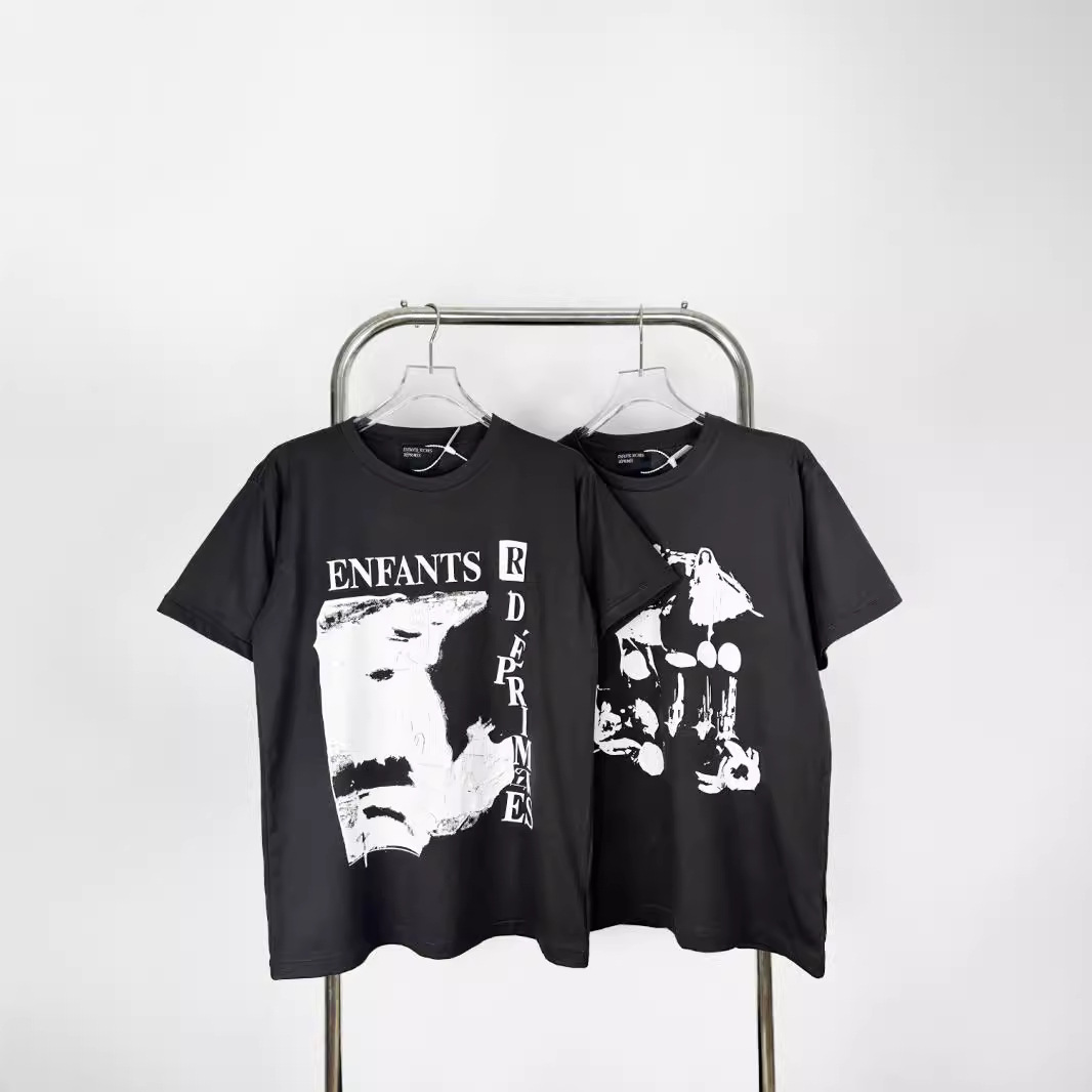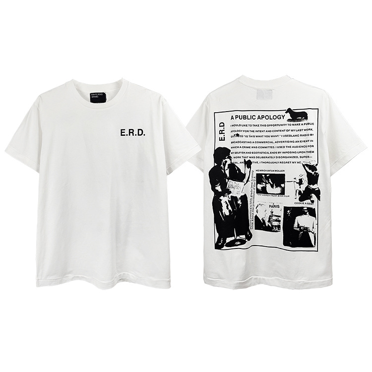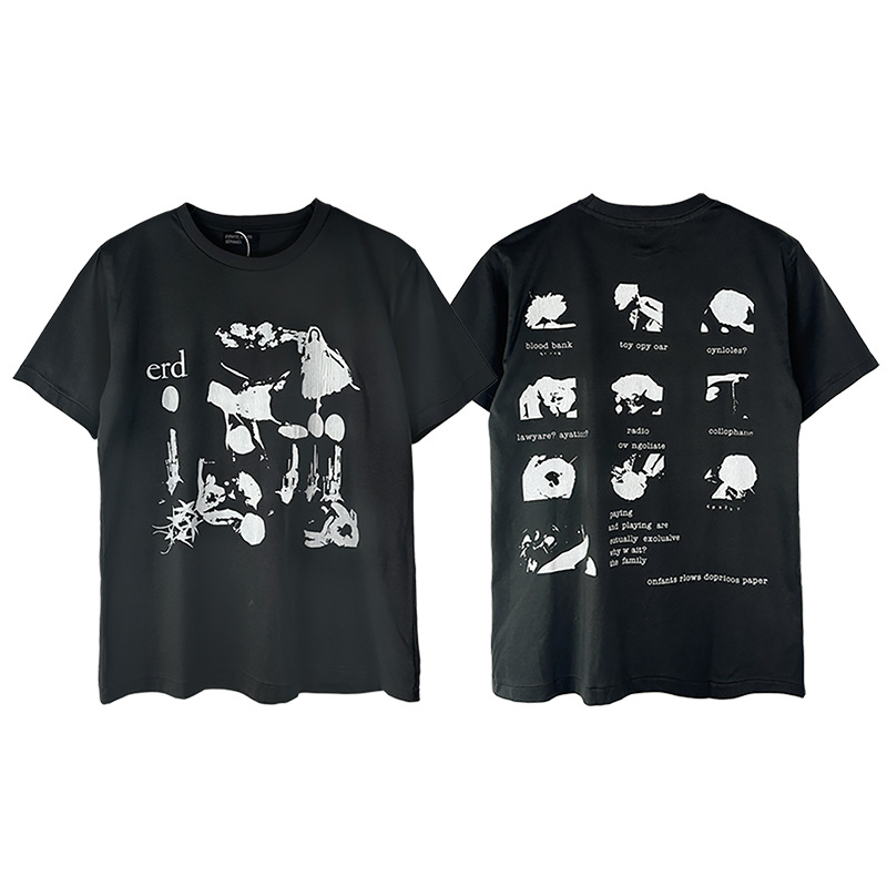 忧郁的富二代ERD素描涂鸦跨境新款高街潮牌宽松休闲短袖T恤印花棉