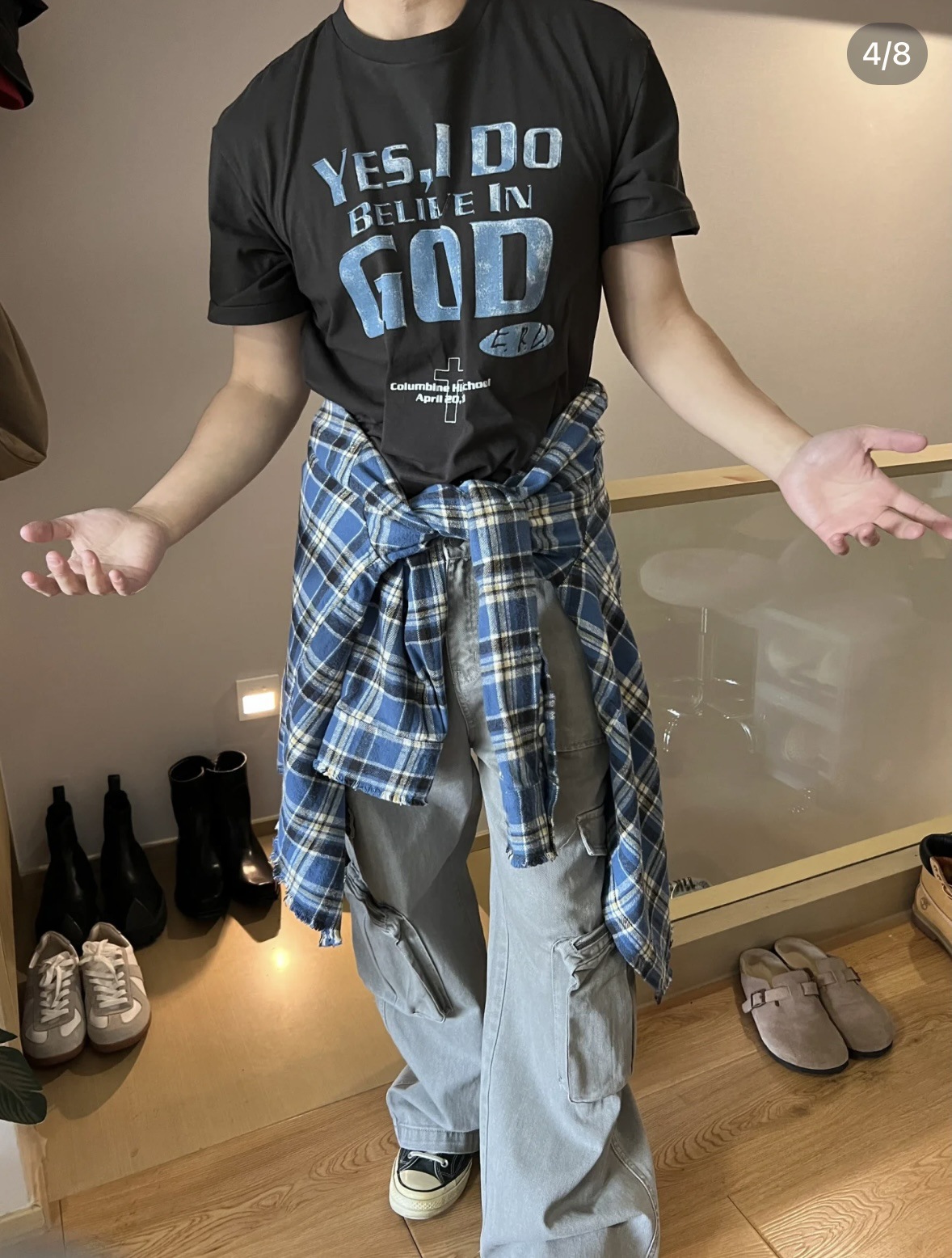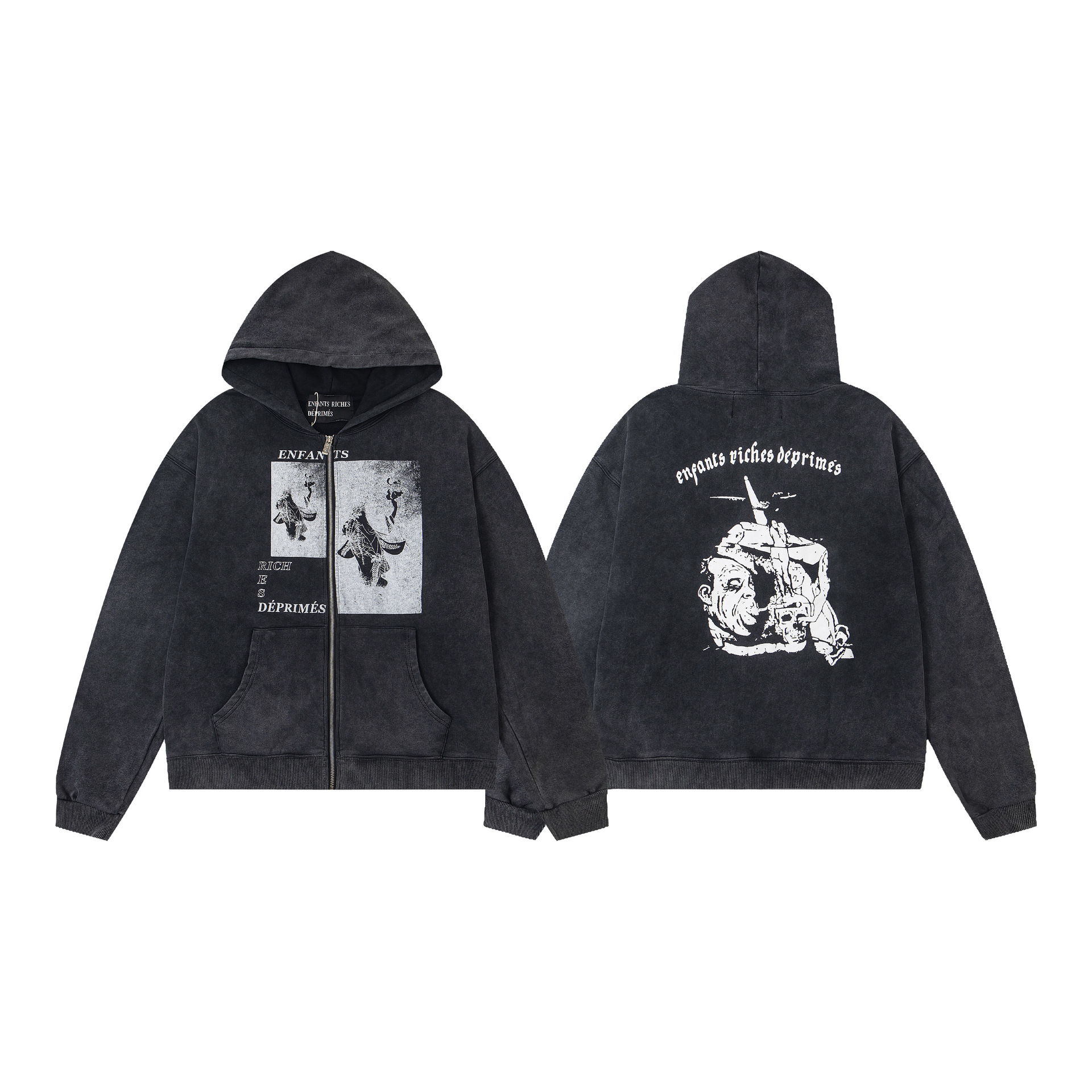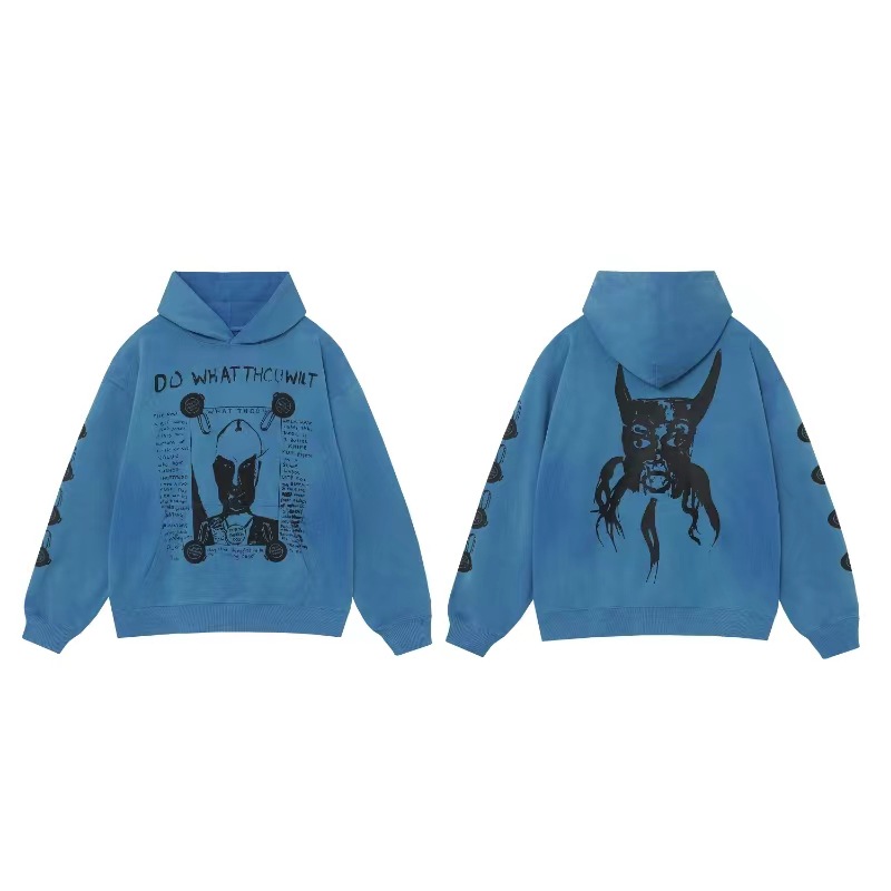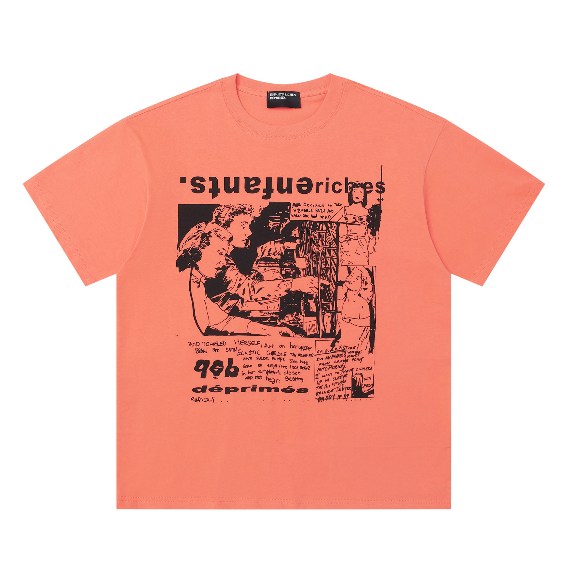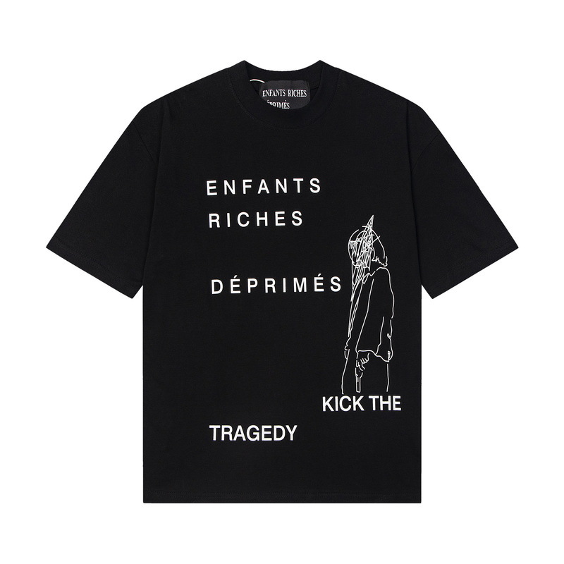 忧郁的富二代ERD素描涂鸦跨境新款高街潮牌宽松休闲短袖T恤印花棉