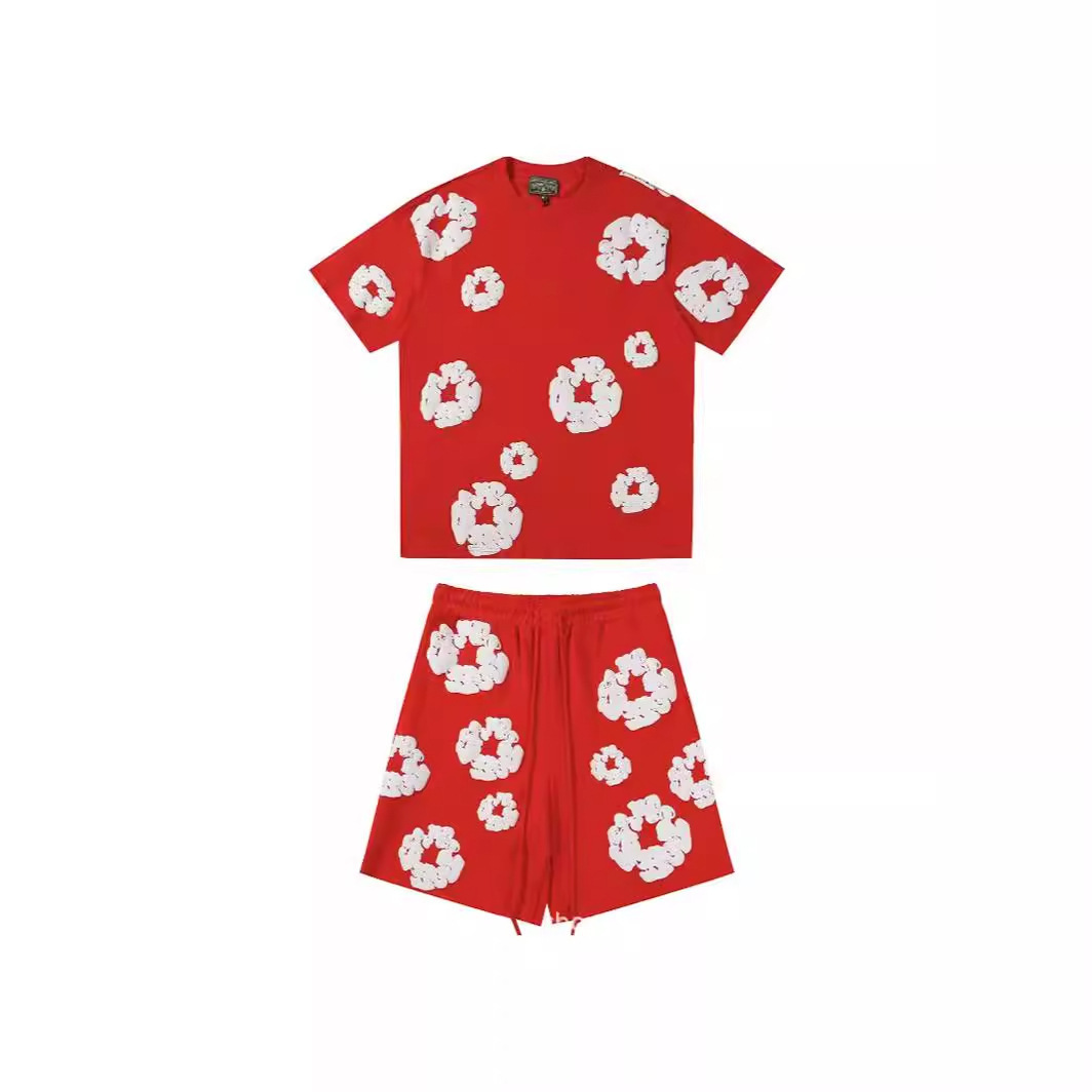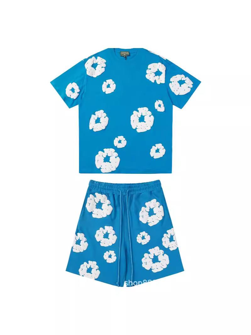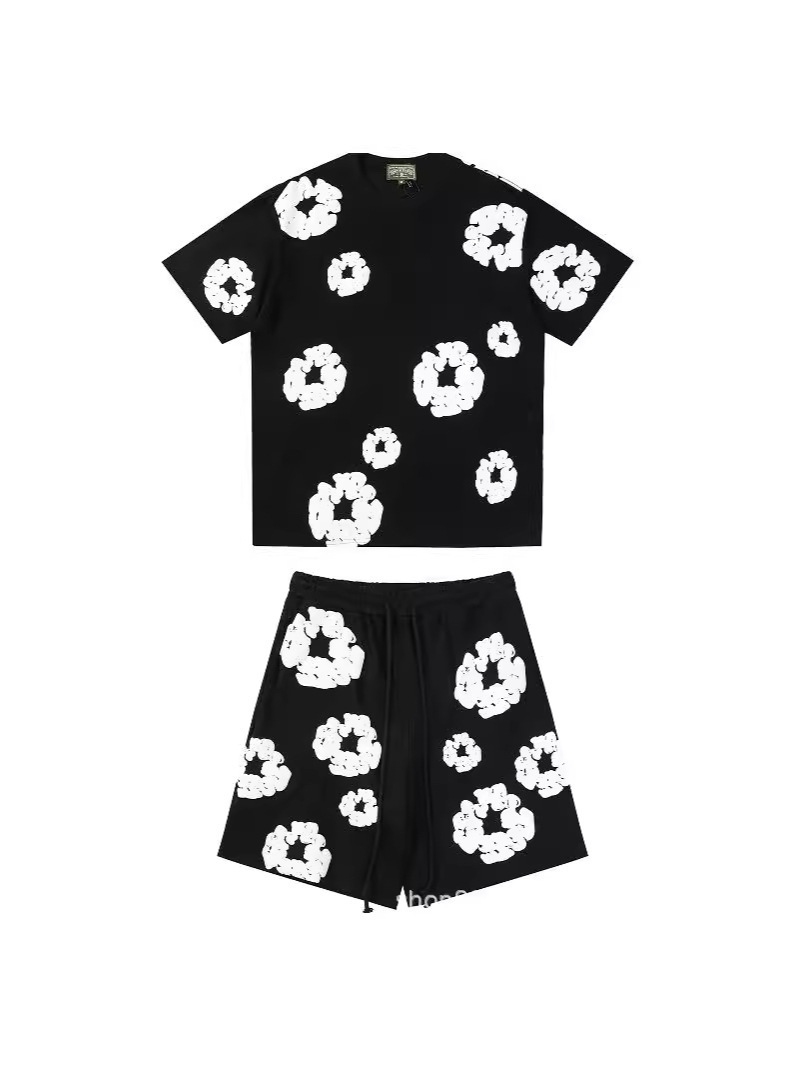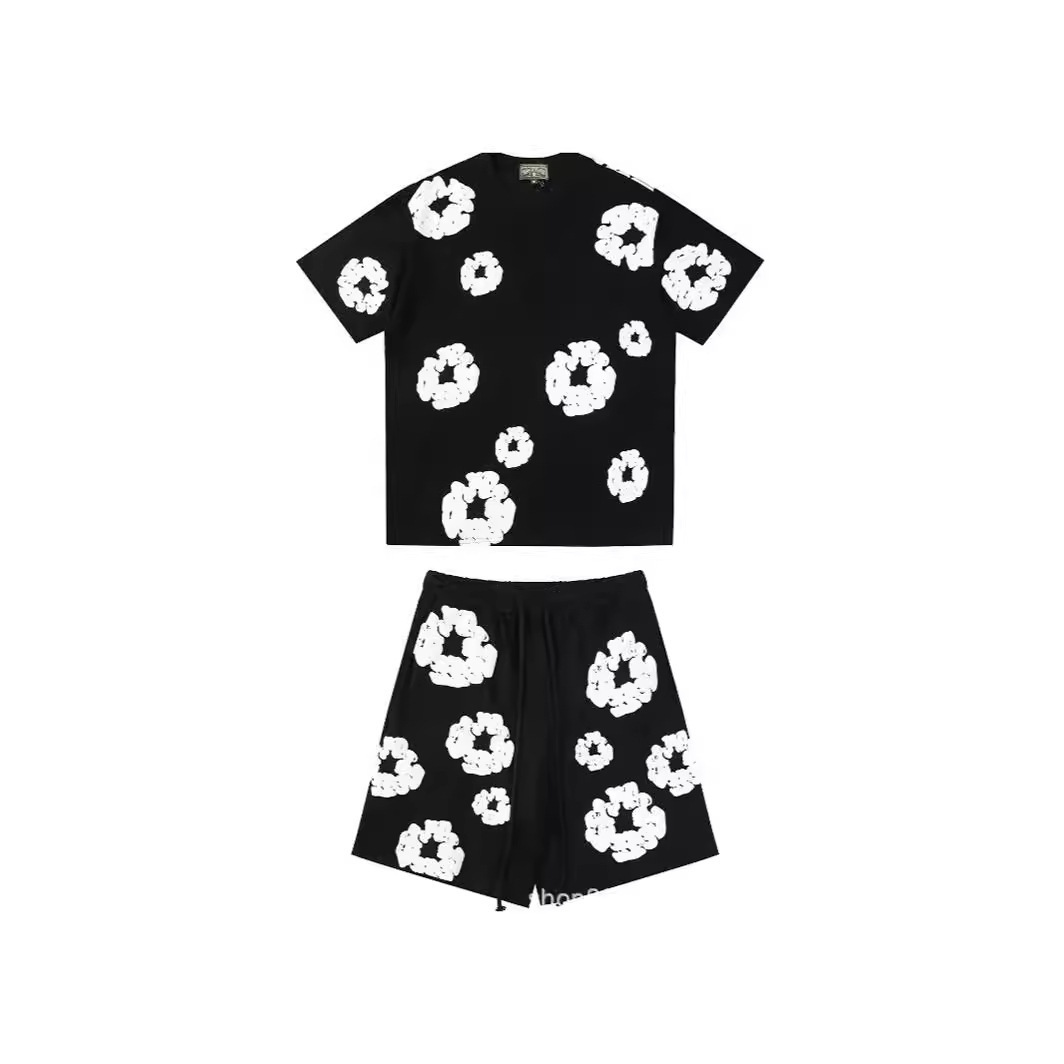 跨境美式潮牌 DENIM TEARS 佩爷同款发泡满印花木棉花宽松短袖T恤