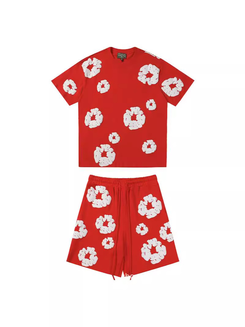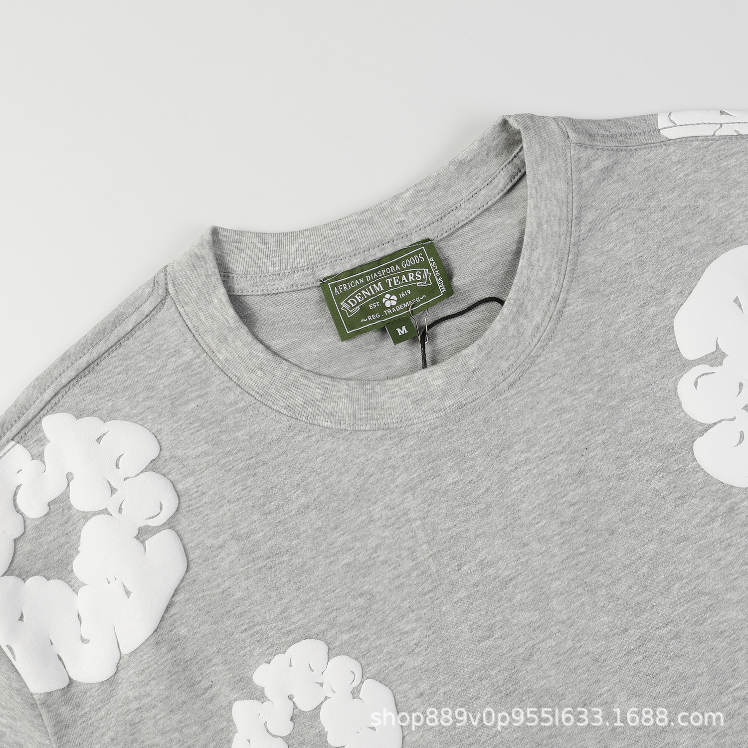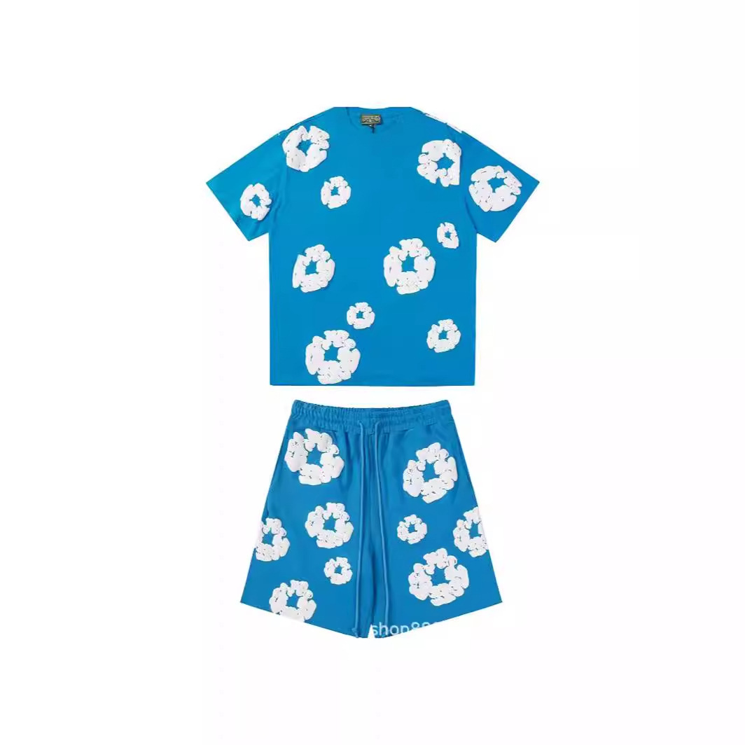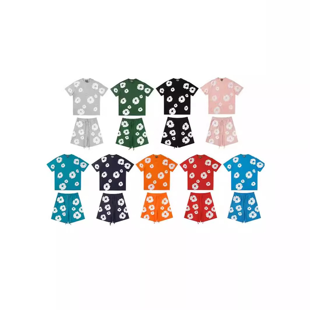 跨境美式潮牌 DENIM TEARS 佩爷同款发泡满印花木棉花宽松短袖T恤
