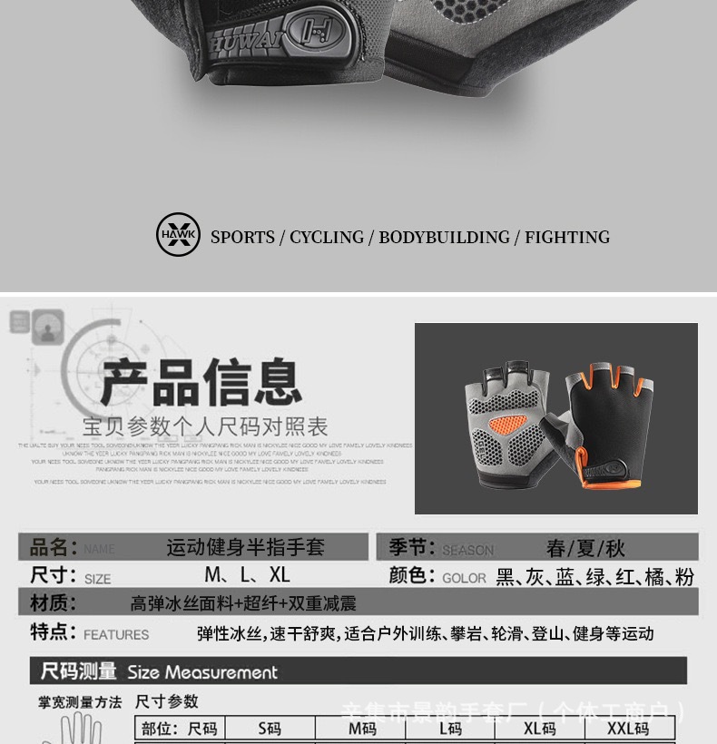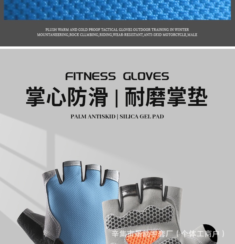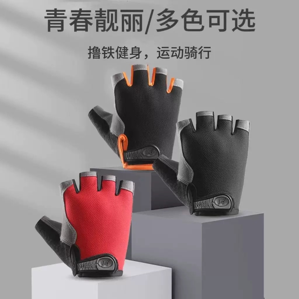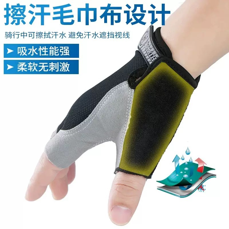 骑行半指手套男女户外运动登山减震防滑硅胶透气蝶网防晒薄款手套