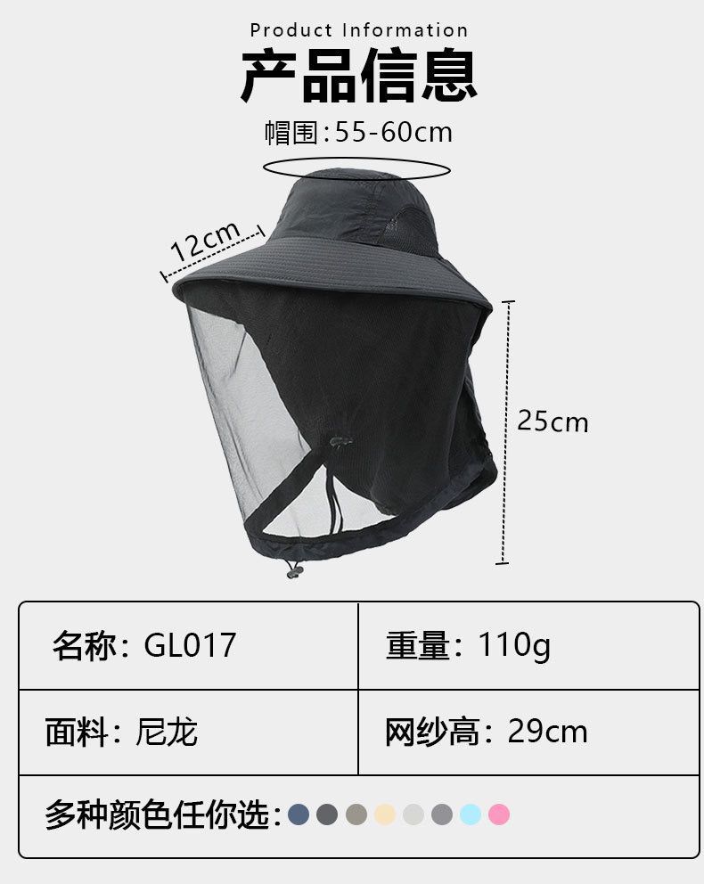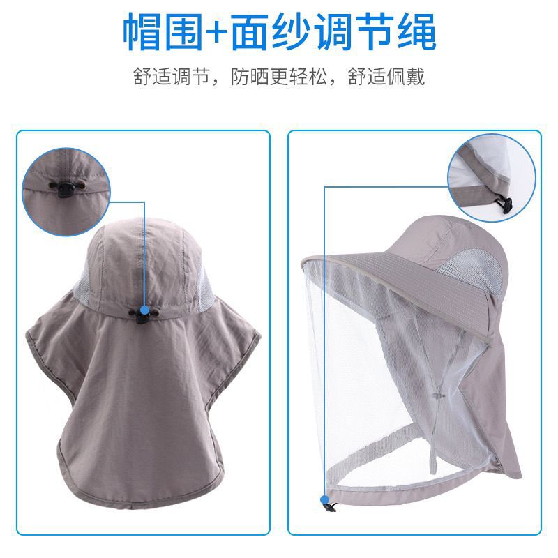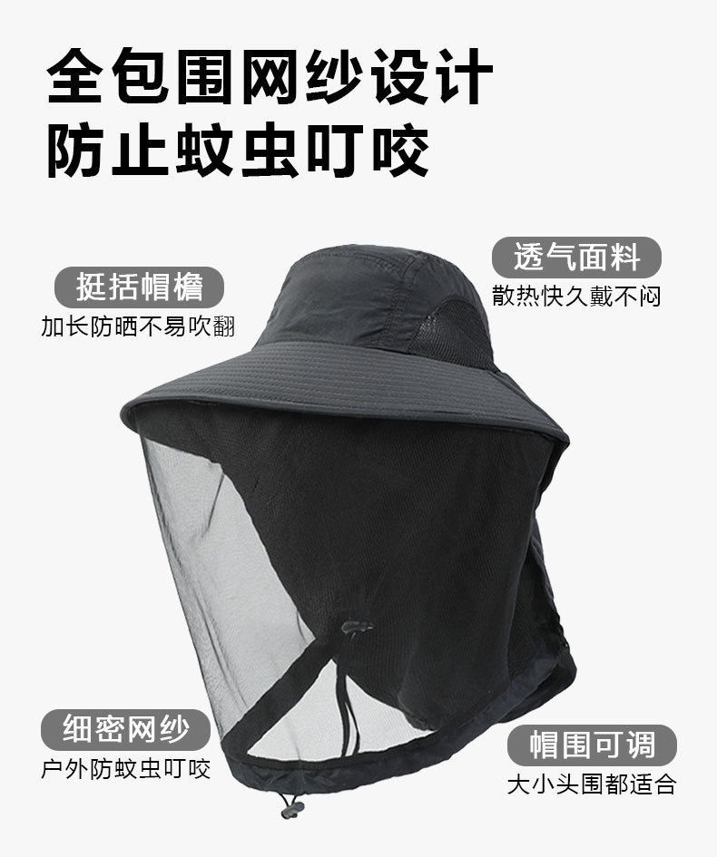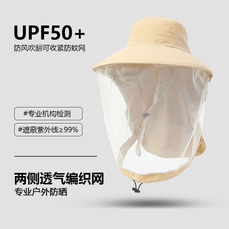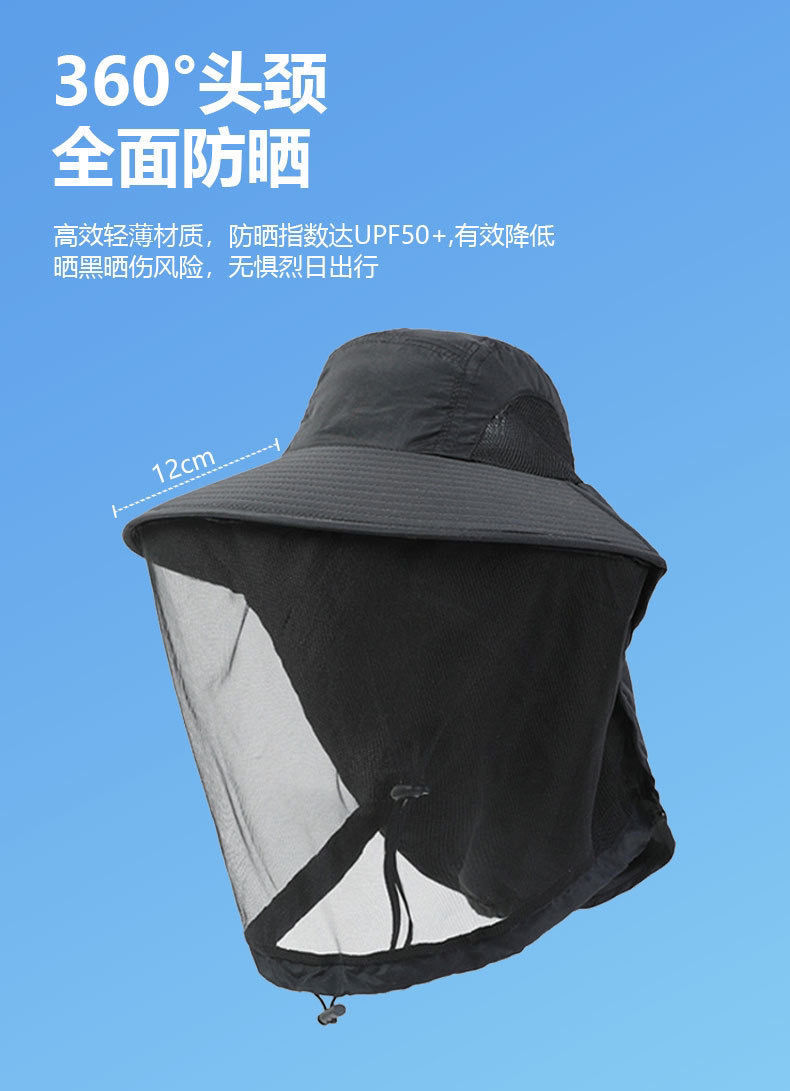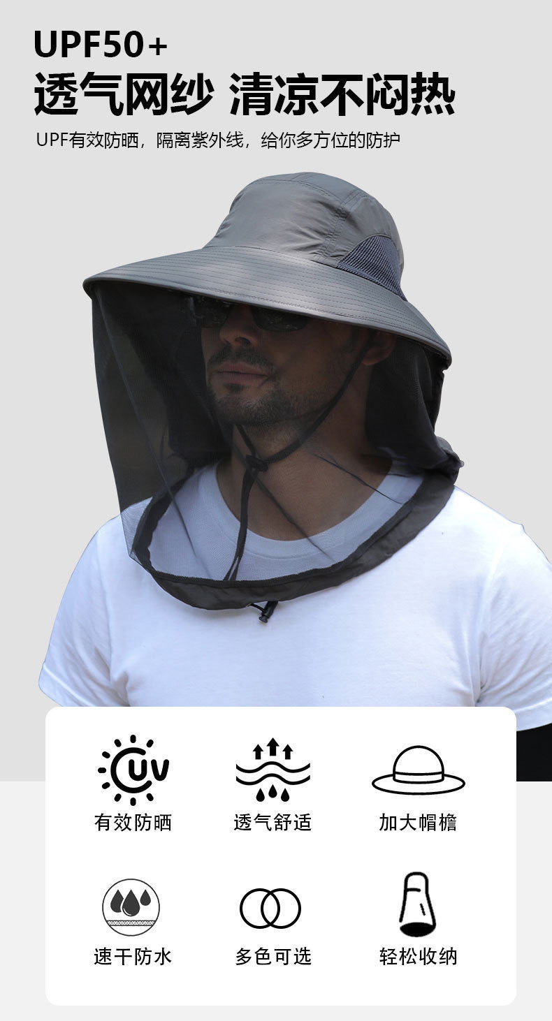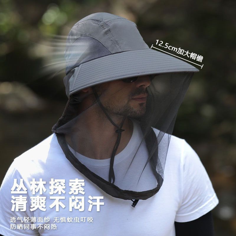 防晒帽钓鱼登山帽防蚊虫网纱面罩男女防紫外线渔夫帽太阳帽防虫帽
