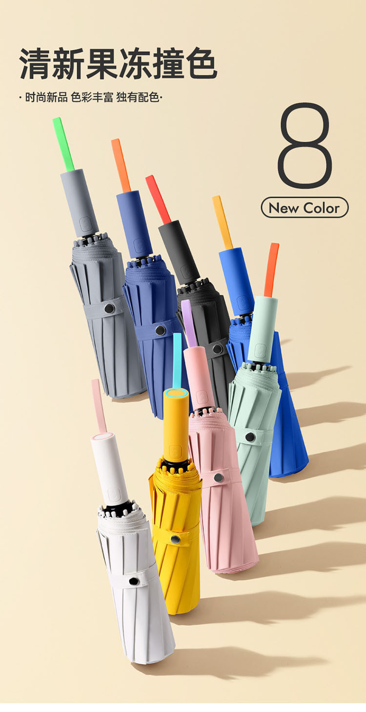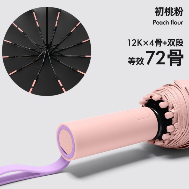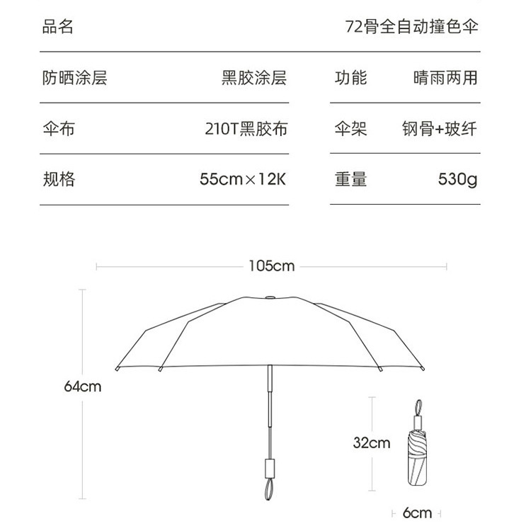 72骨加大撞色自动伞黑胶防晒遮太阳伞男女晴雨两用三折叠广告logo