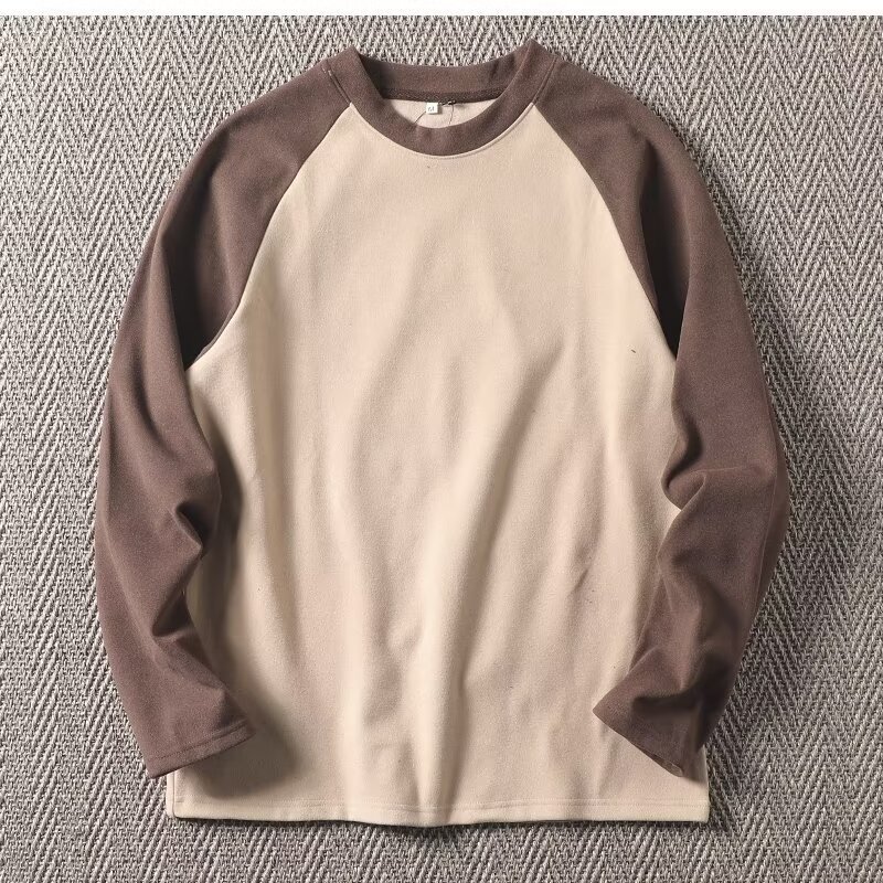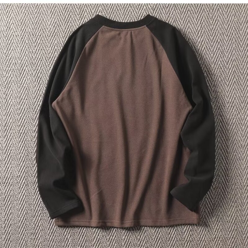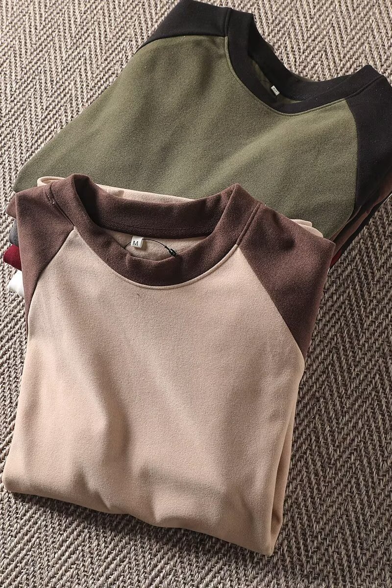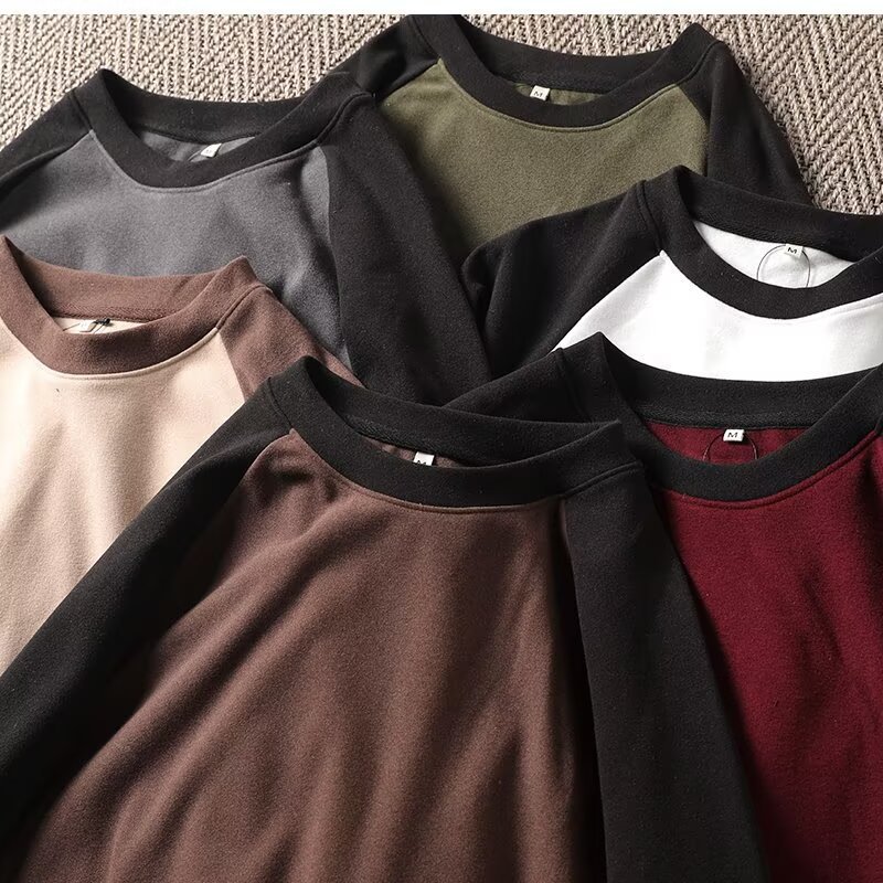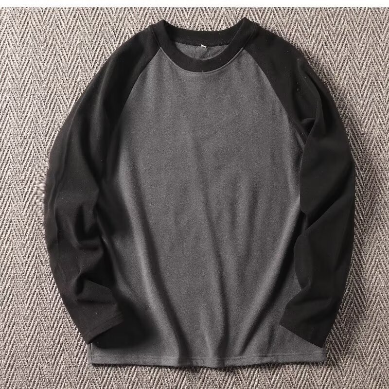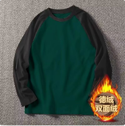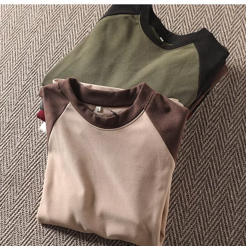 德绒拼色打底衫男士双面加绒内搭长袖T恤潮流冬季弹力保暖内衣