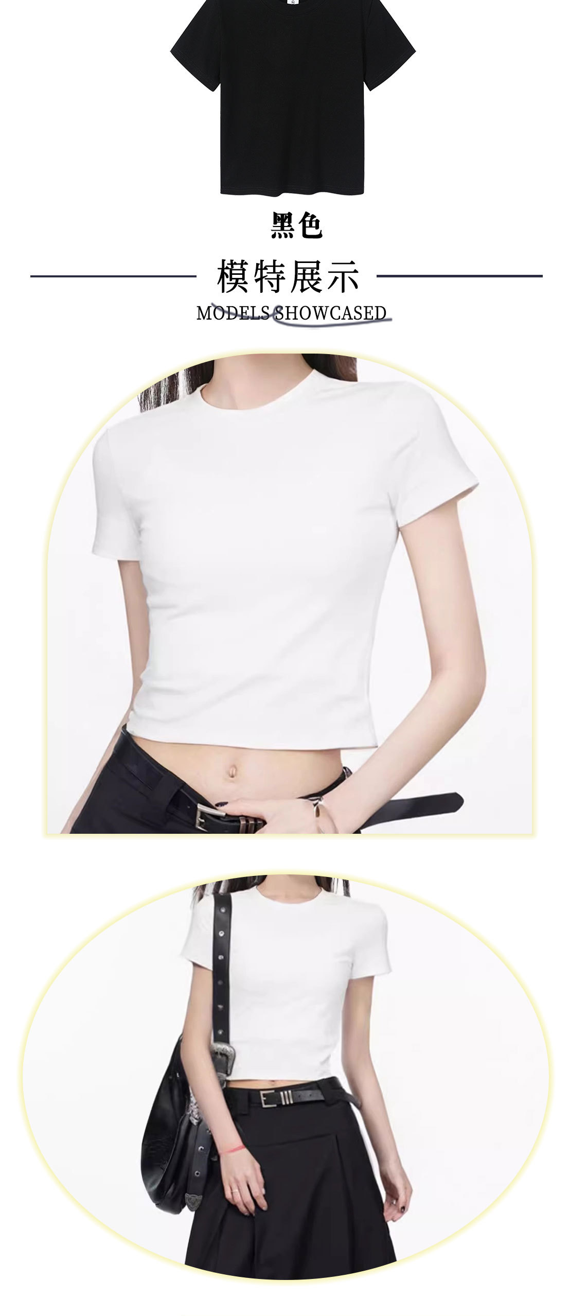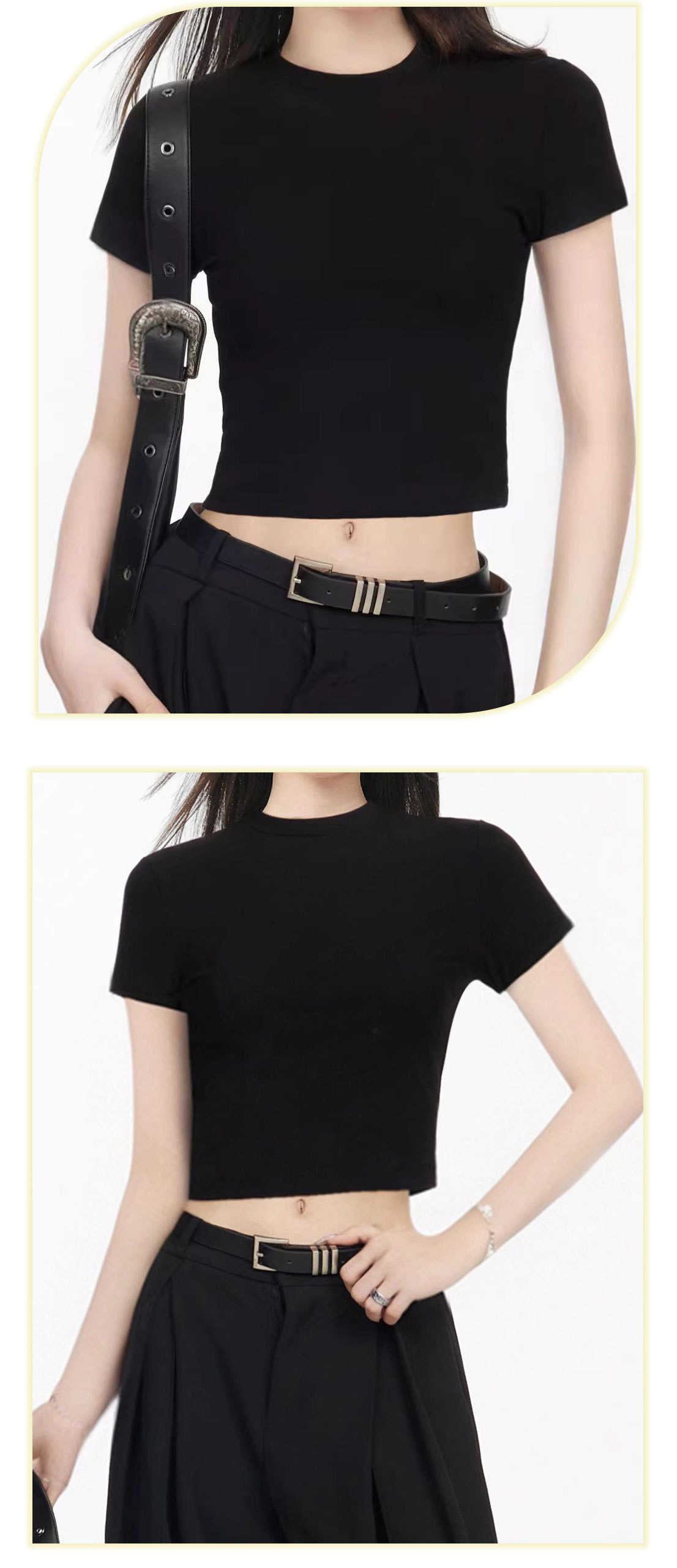 230克美式复古正肩短袖T恤夏季辣妹高腰修身显瘦露脐短款上衣女