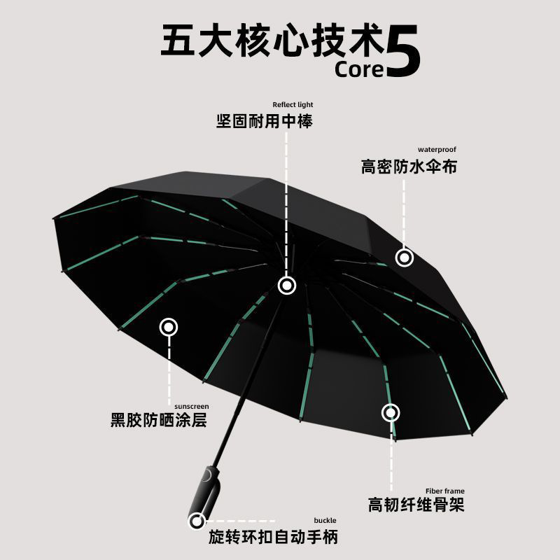 72根全自动环扣雨伞便携加大加厚加固男士挂钩折叠晴雨两用女专用