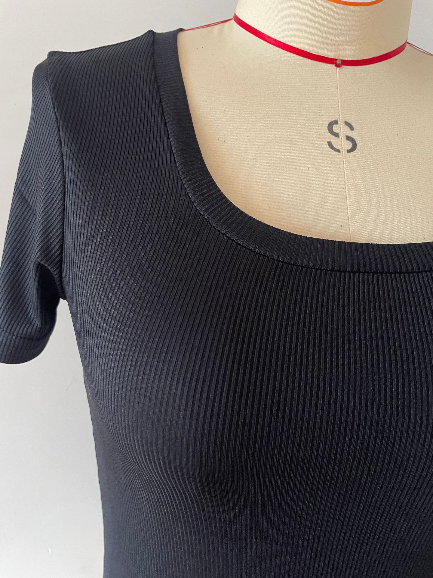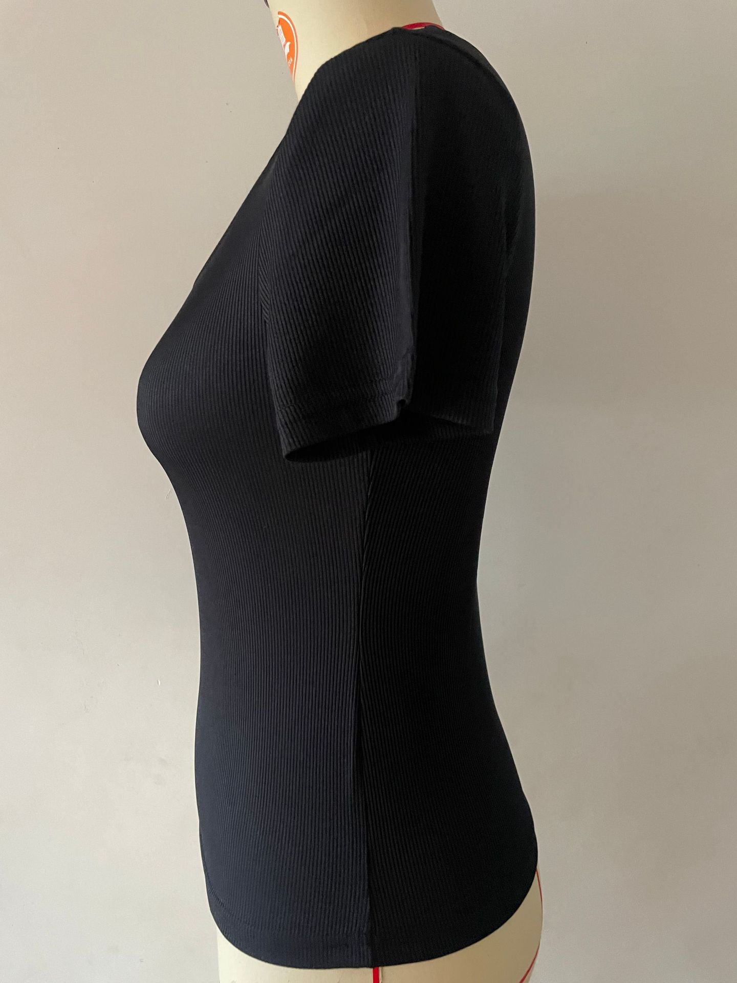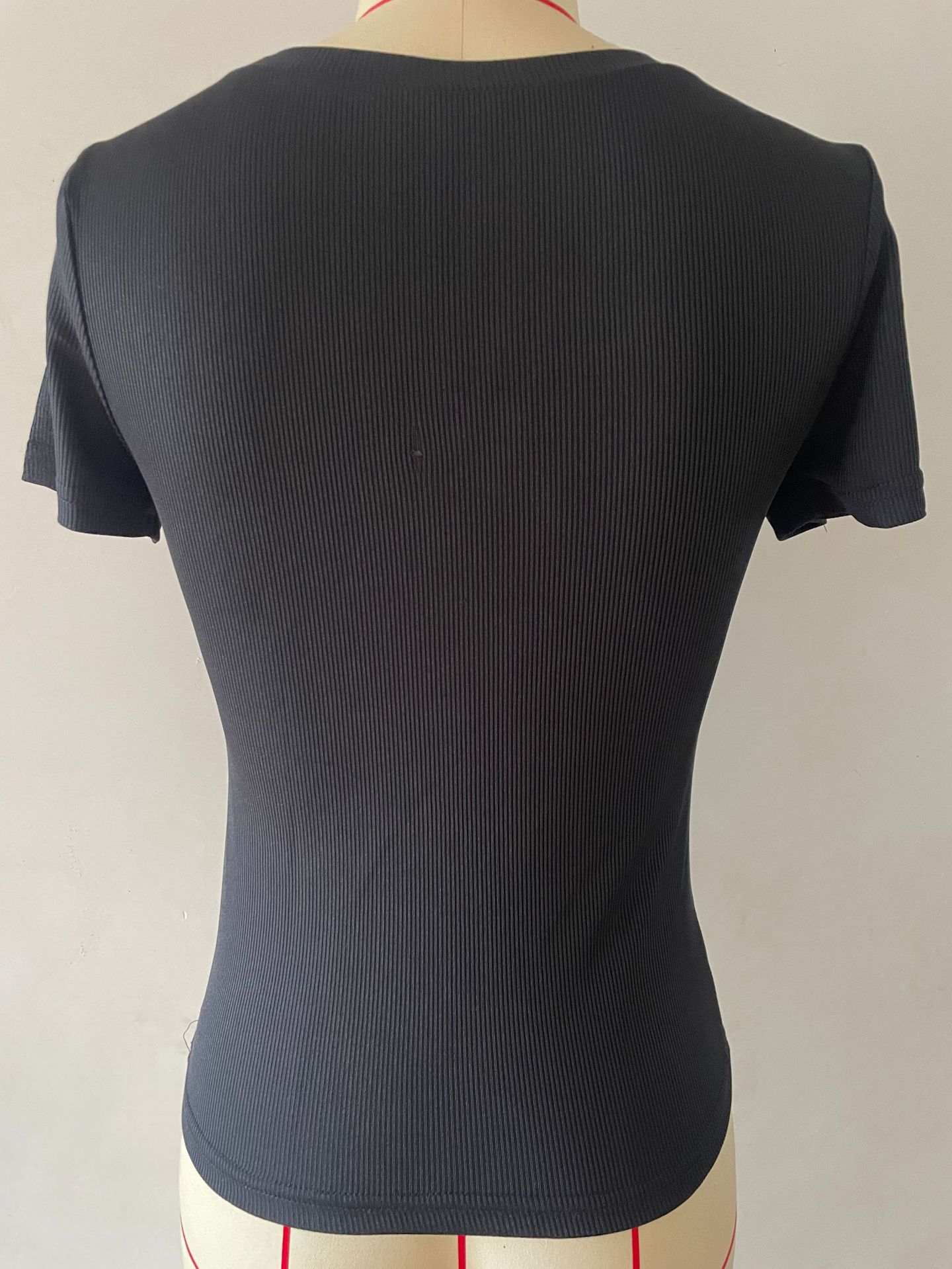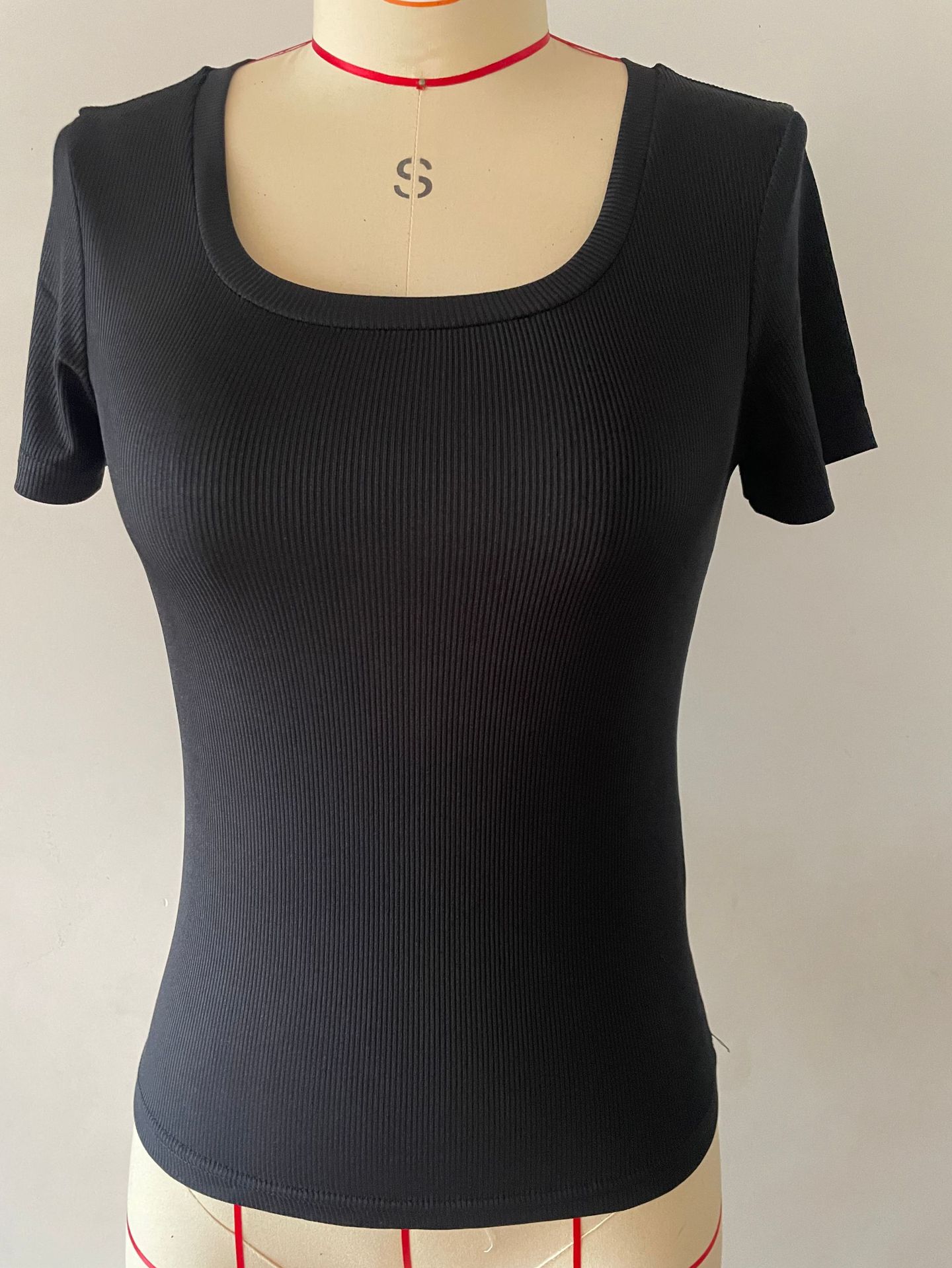 2024亚马逊新款欧美爆款螺纹坑条性感修身长款短袖方领女T恤辣妹