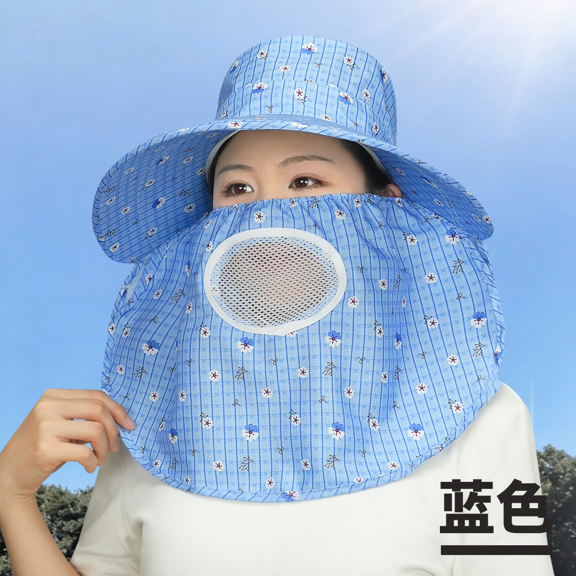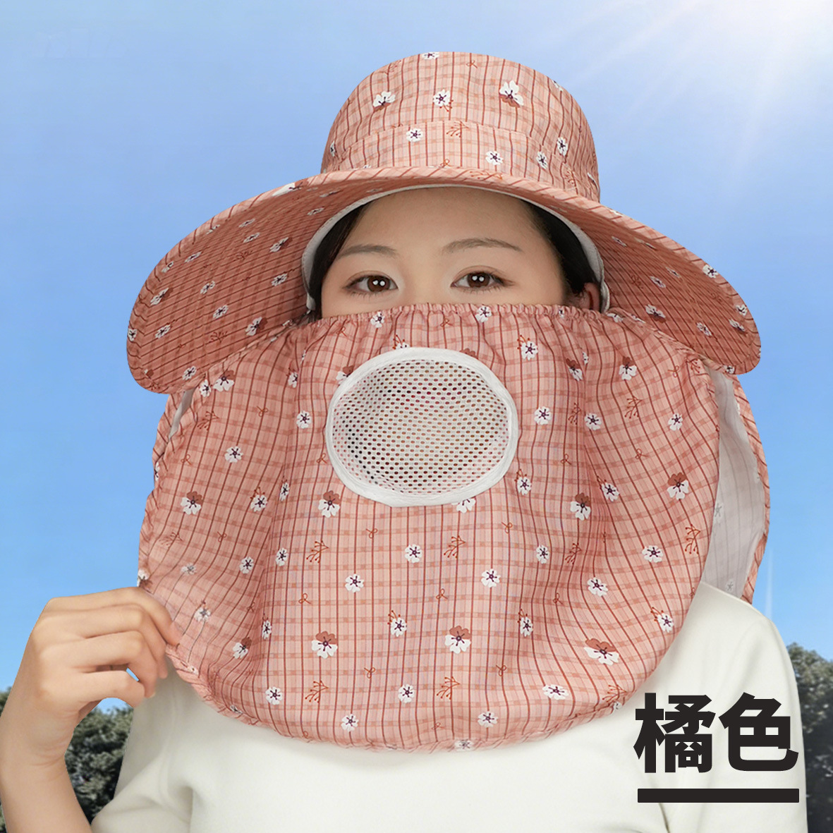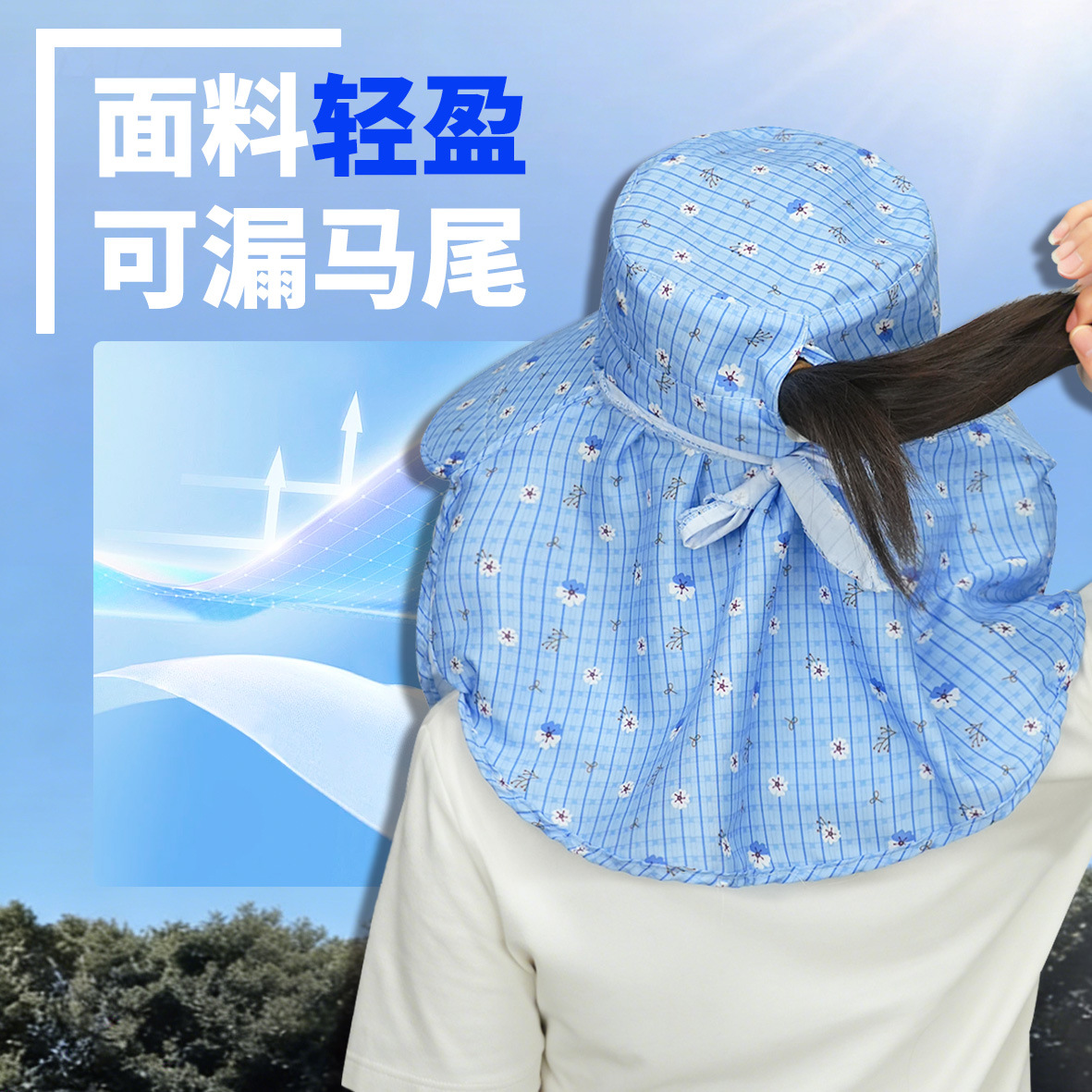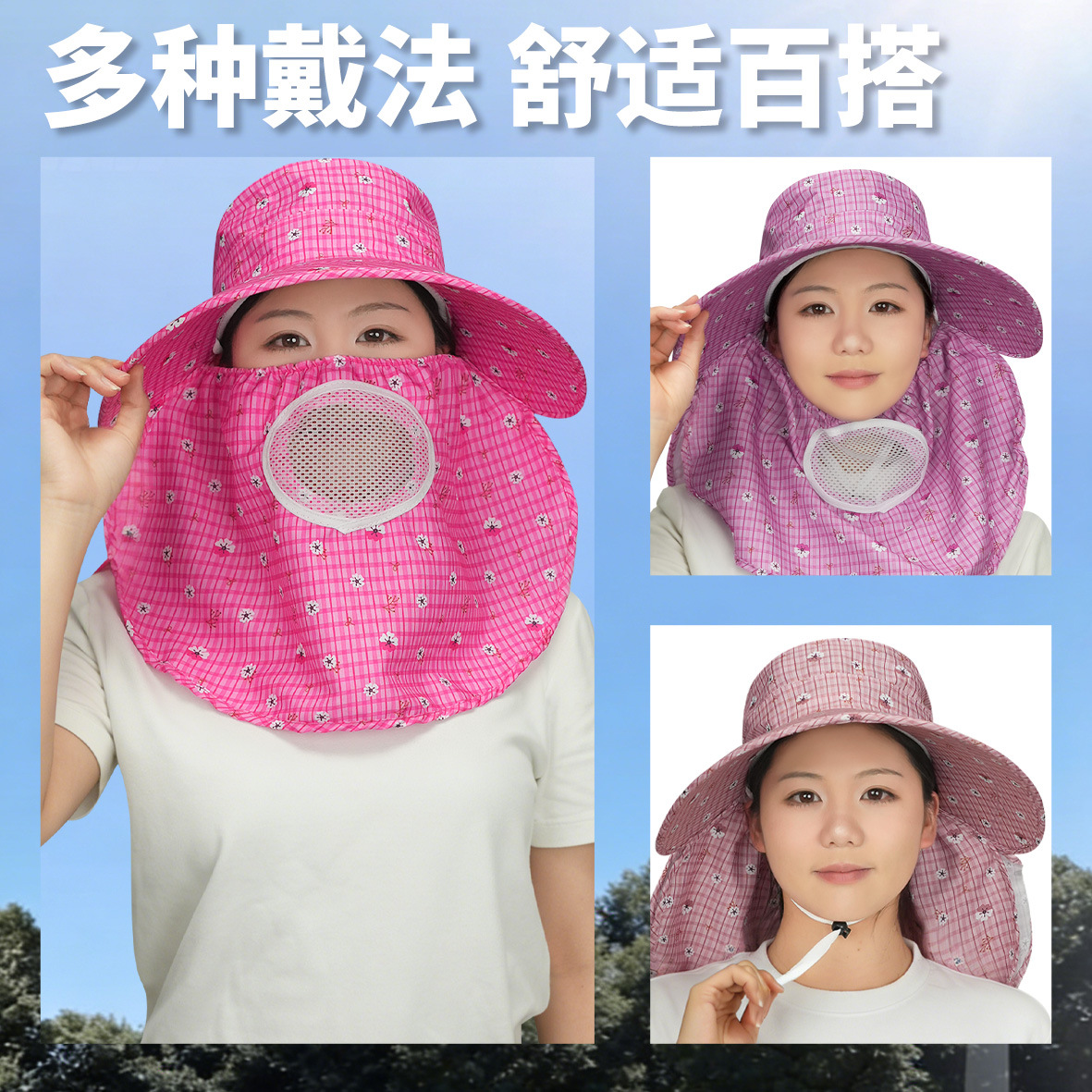 透气网孔防晒帽护颈护脸一体大檐帽采茶骑车遮阳帽农田干活太阳帽