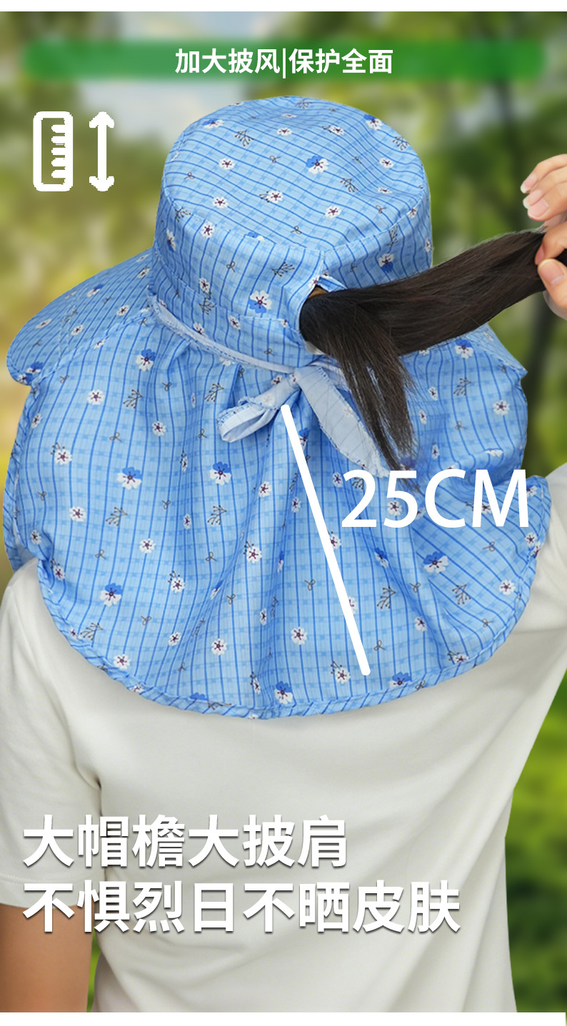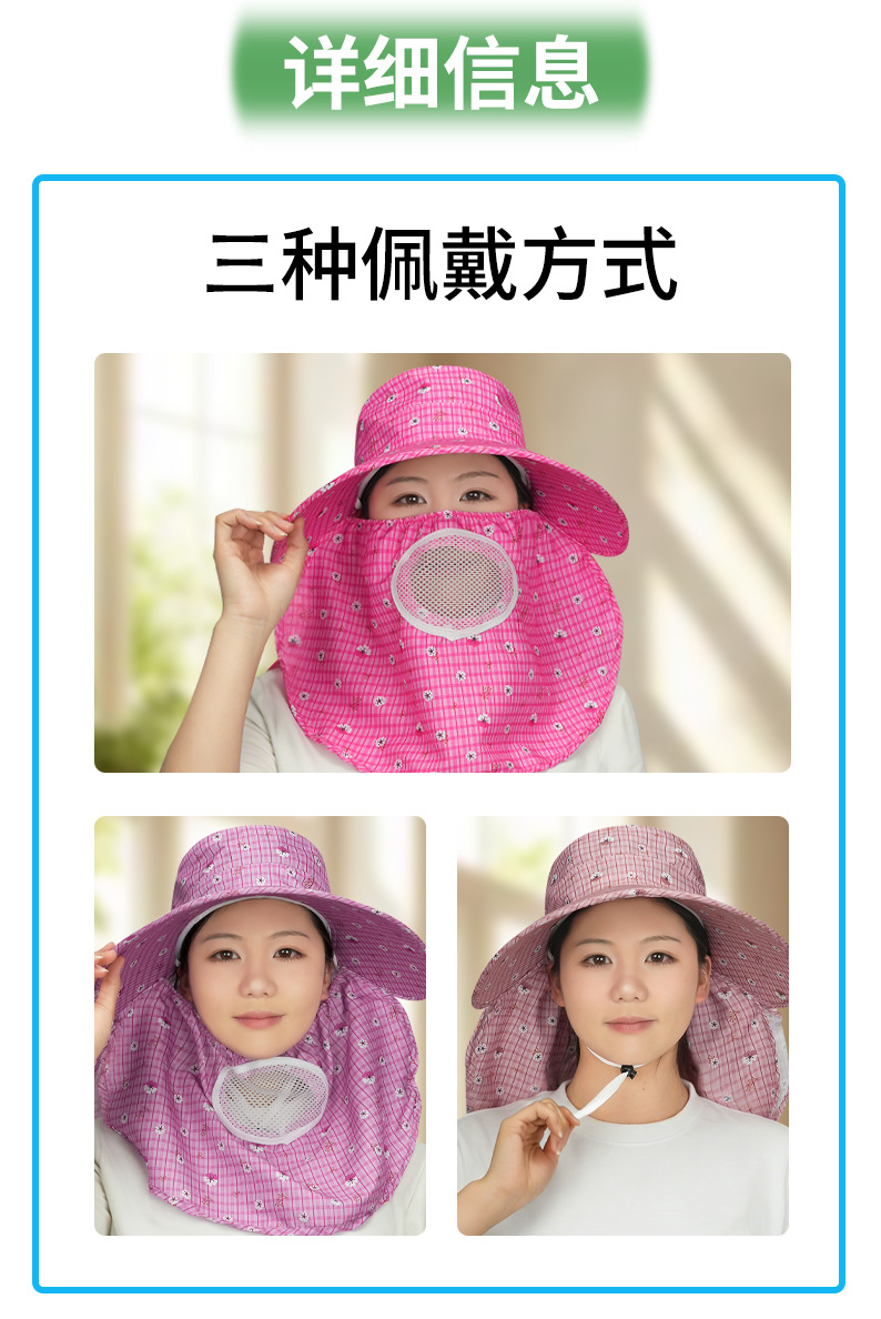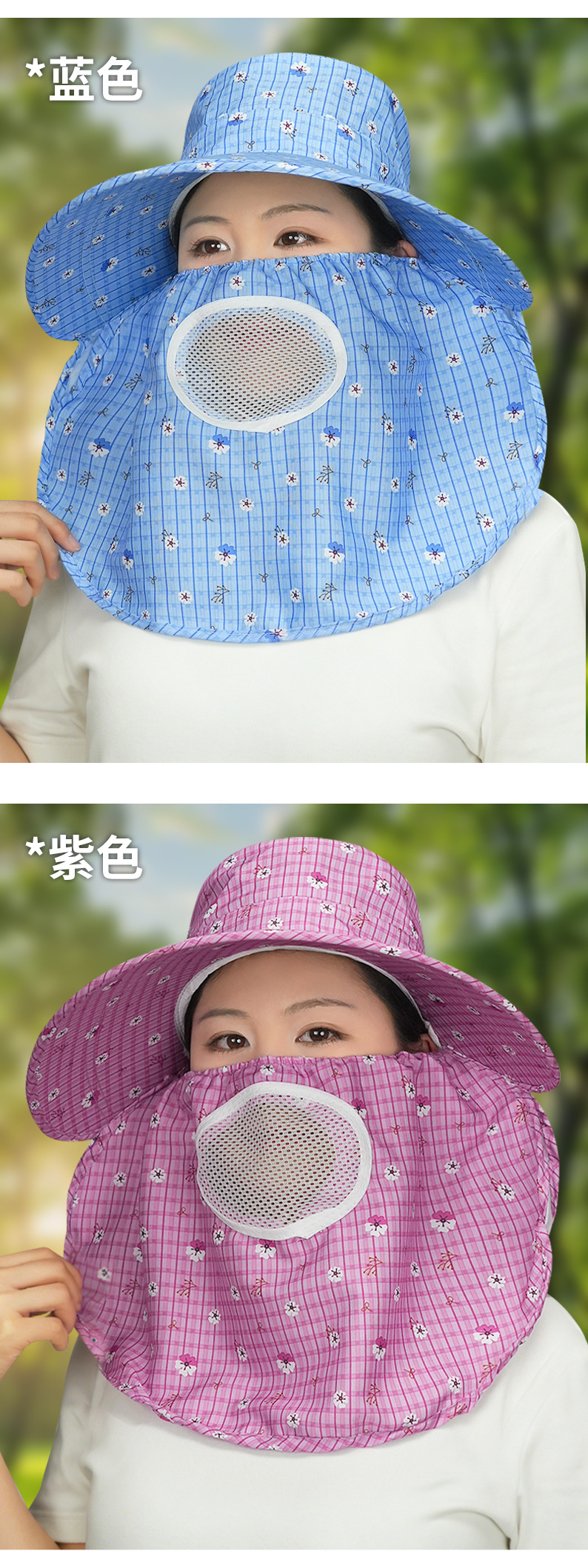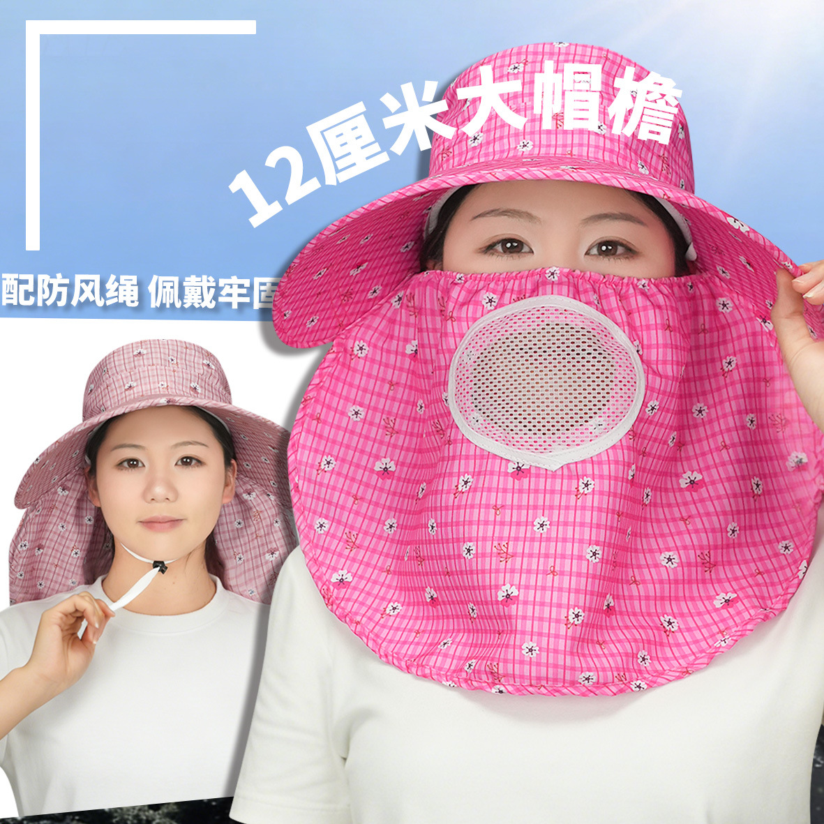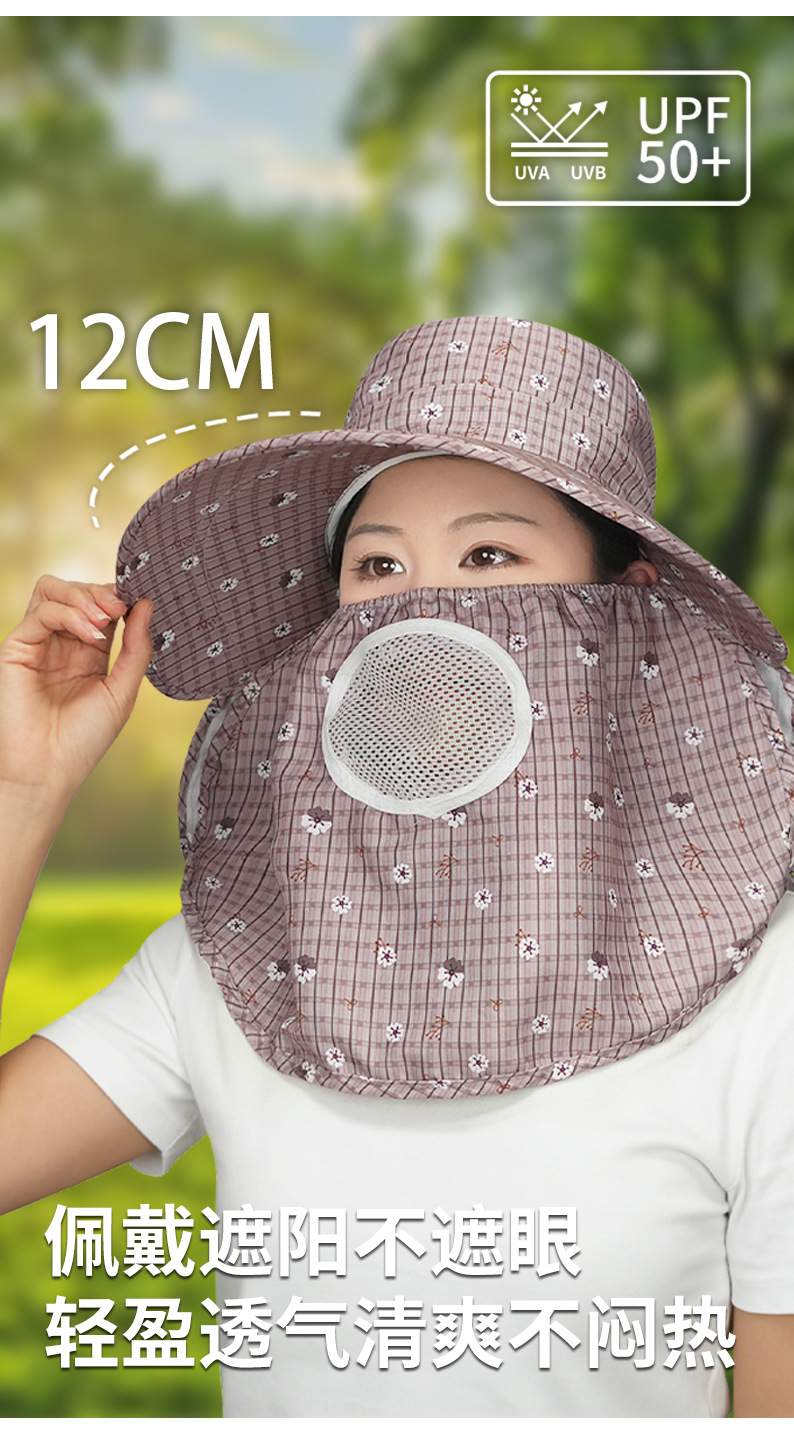 透气网孔防晒帽护颈护脸一体大檐帽采茶骑车遮阳帽农田干活太阳帽