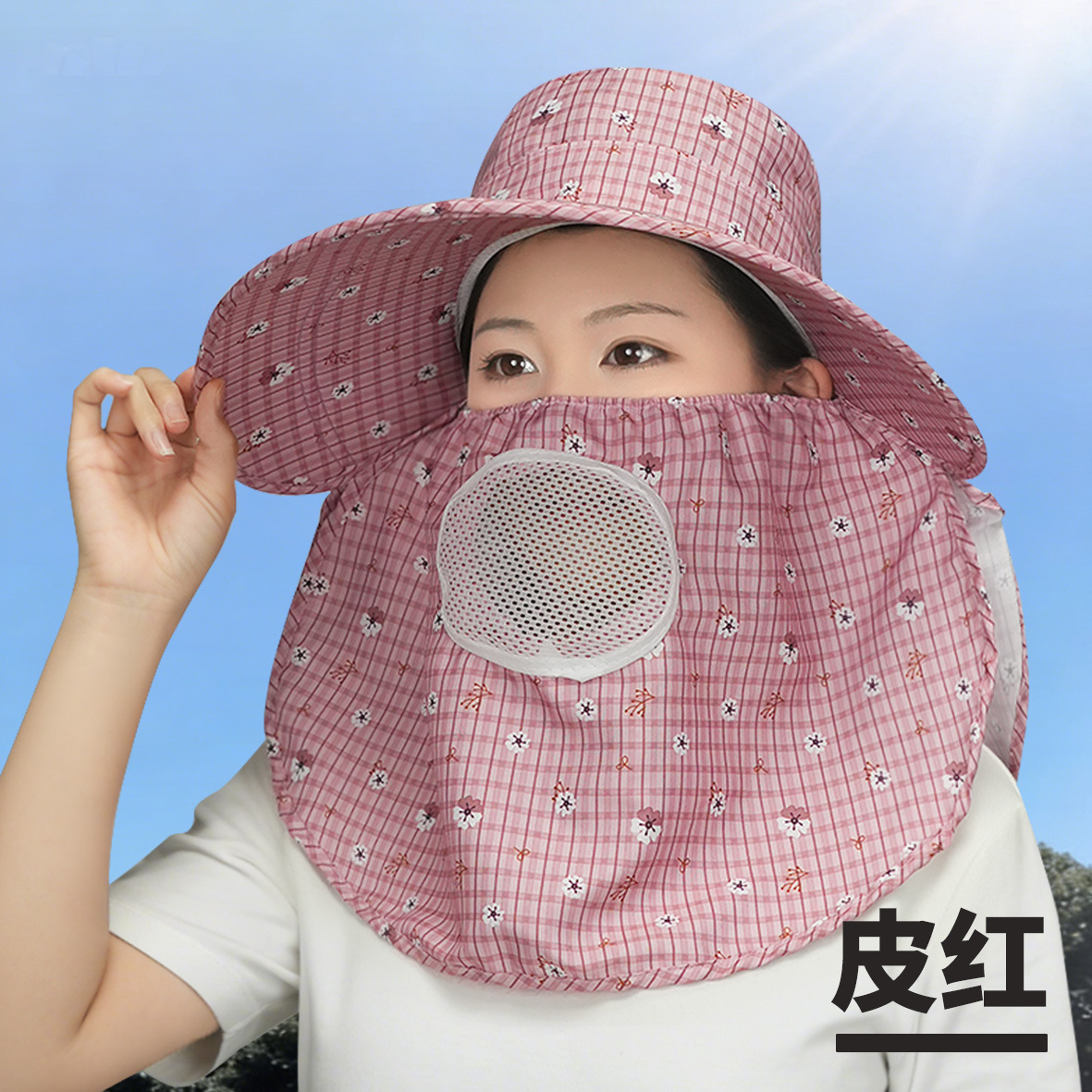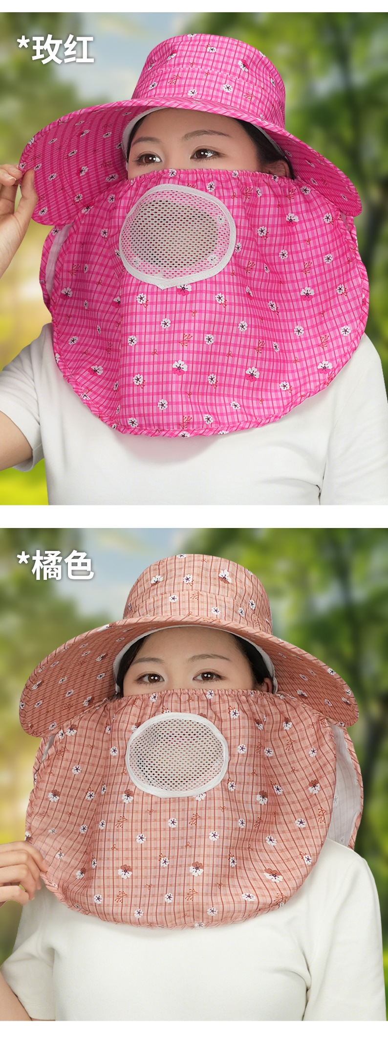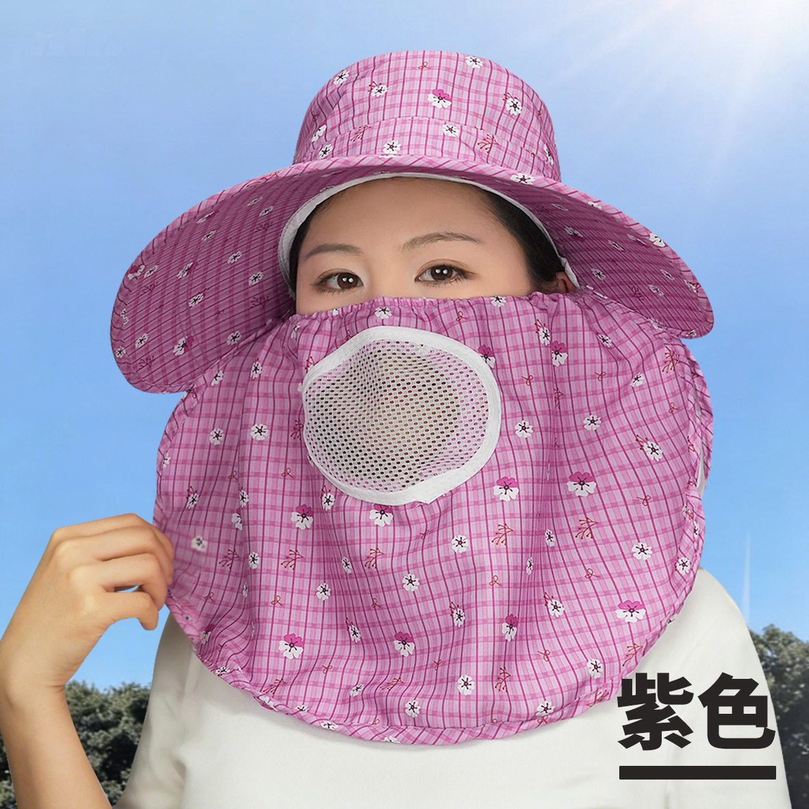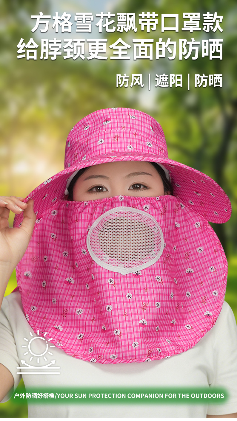透气网孔防晒帽护颈护脸一体大檐帽采茶骑车遮阳帽农田干活太阳帽