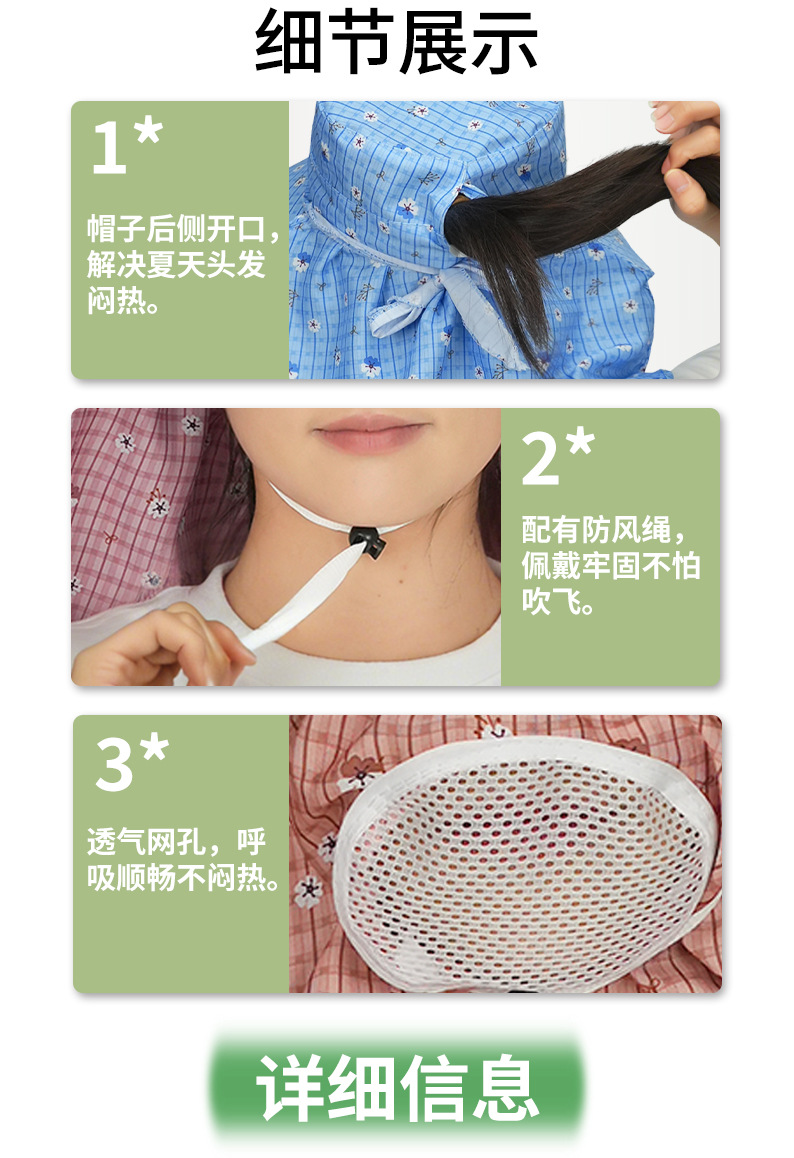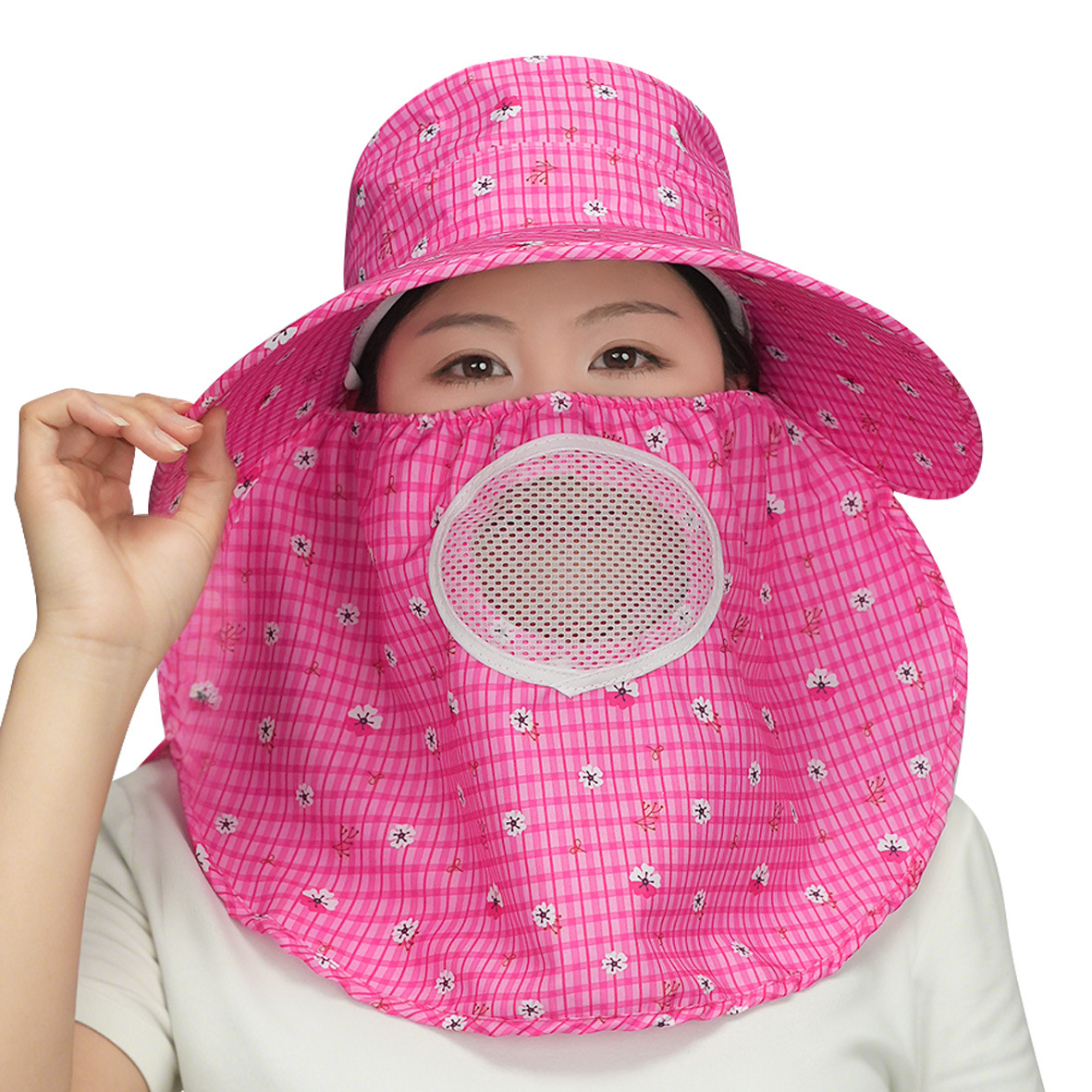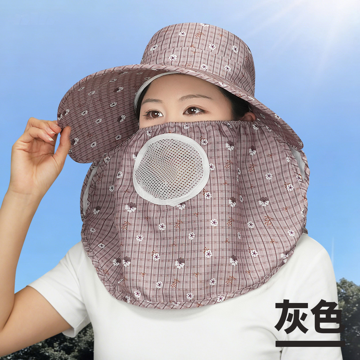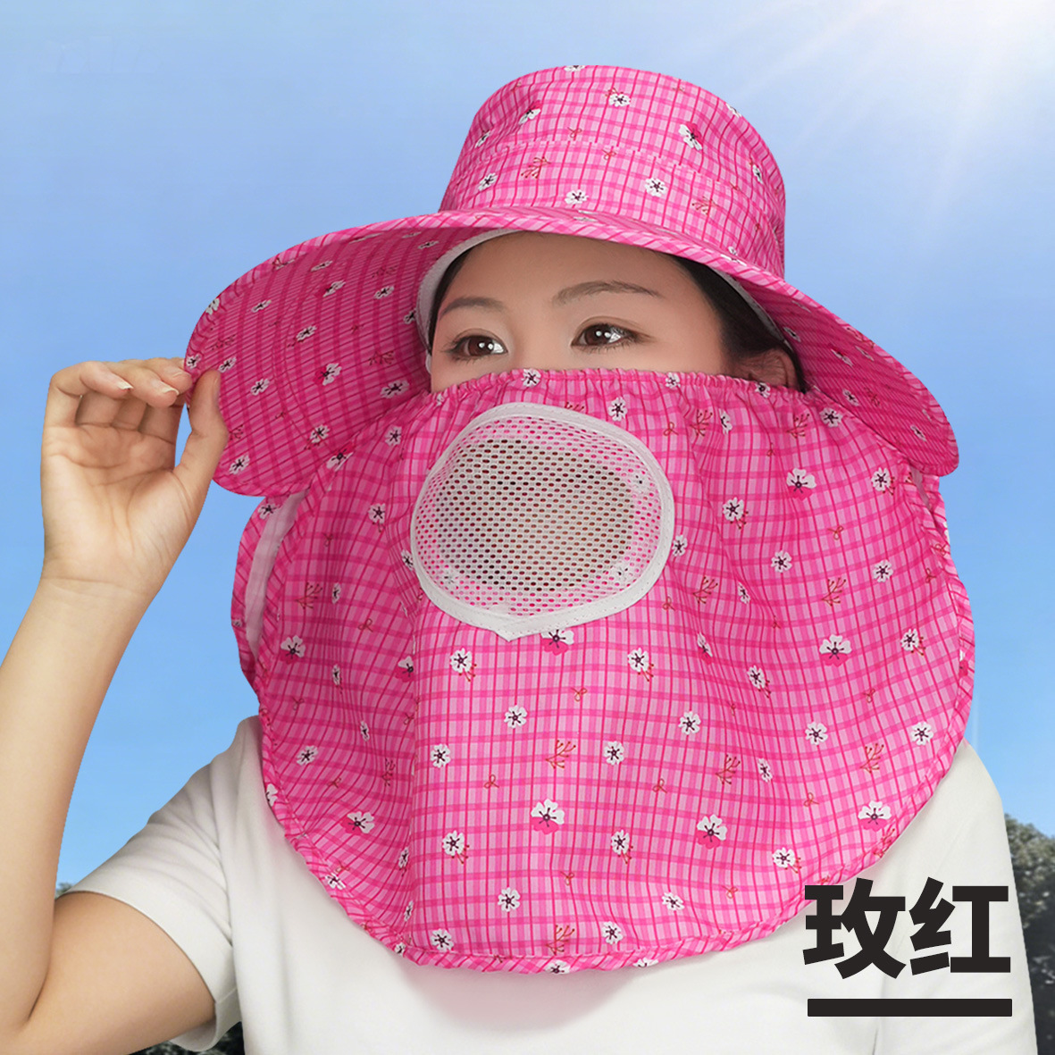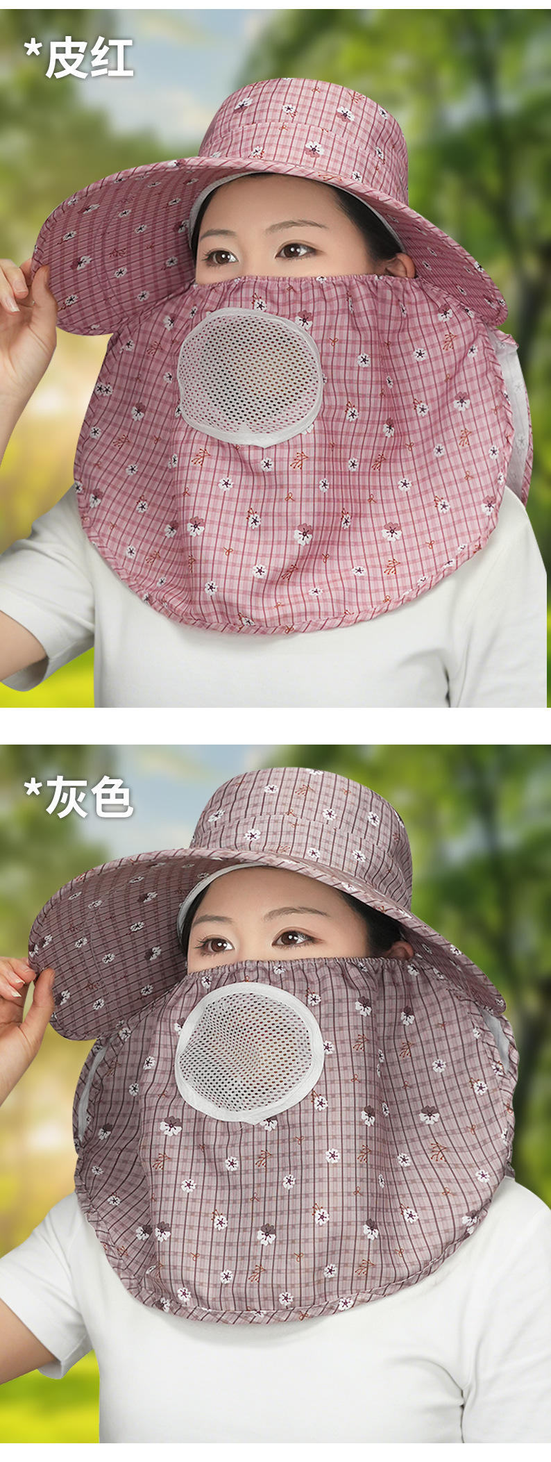 透气网孔防晒帽护颈护脸一体大檐帽采茶骑车遮阳帽农田干活太阳帽