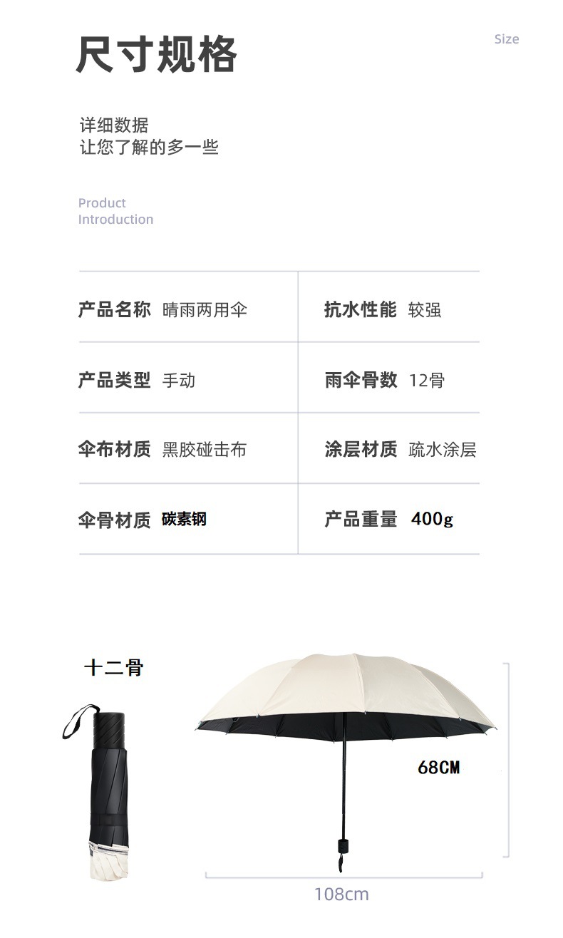 十二骨三折伞手动超大号雨伞男加固三人伞晴雨两用防晒伞太阳伞女
