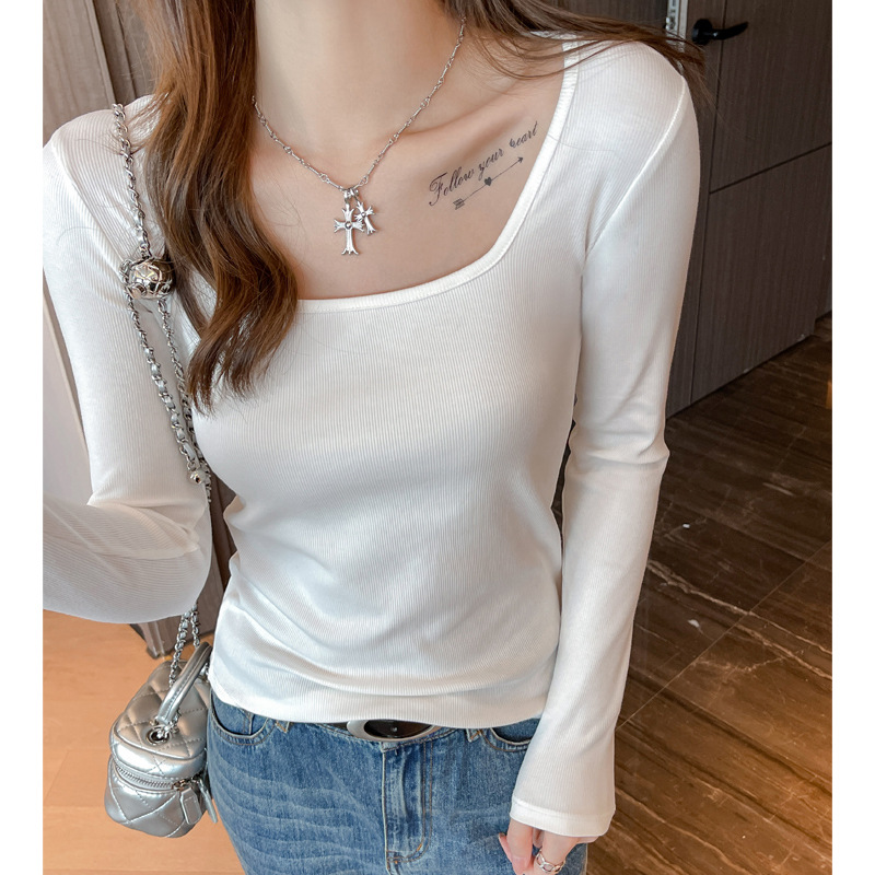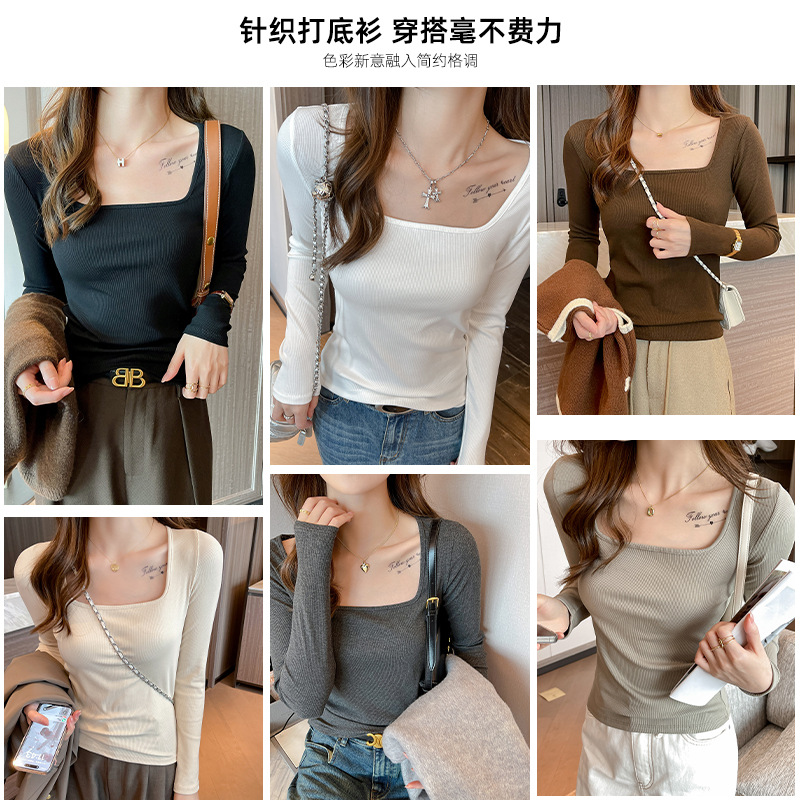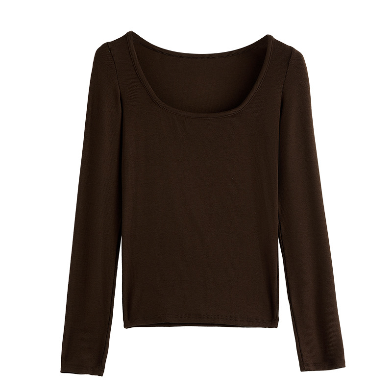 莫代尔螺纹方领秋冬季内搭打底衫女新款可外穿长袖修身高级感t恤