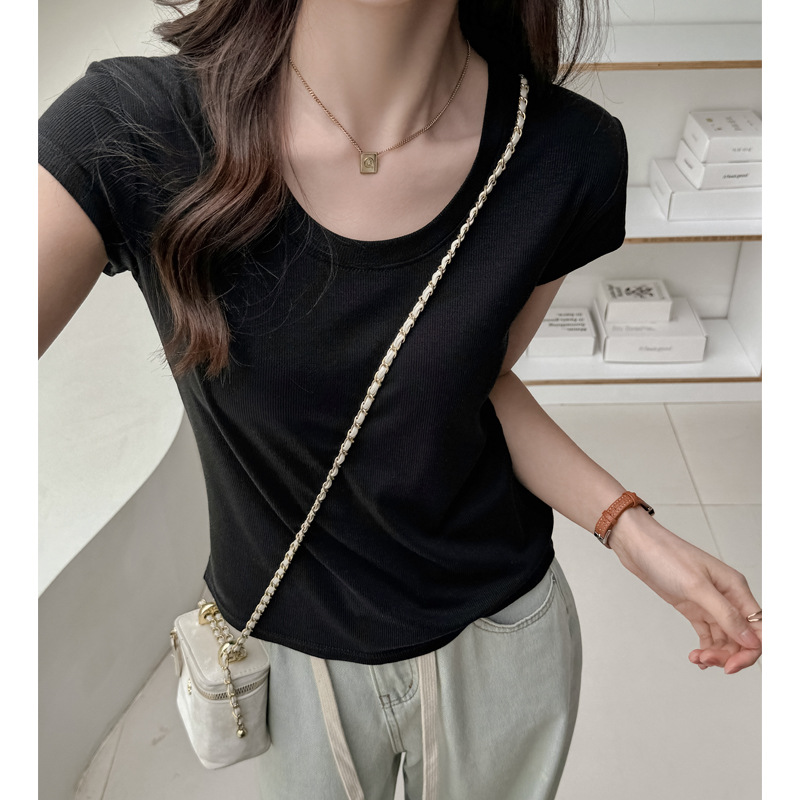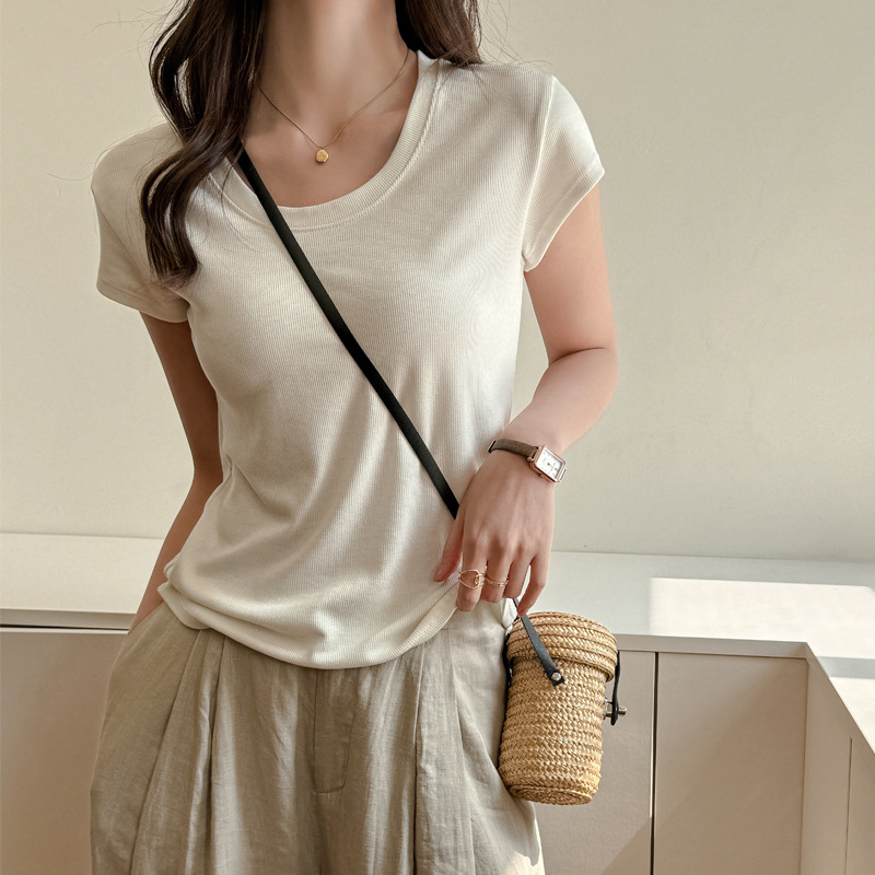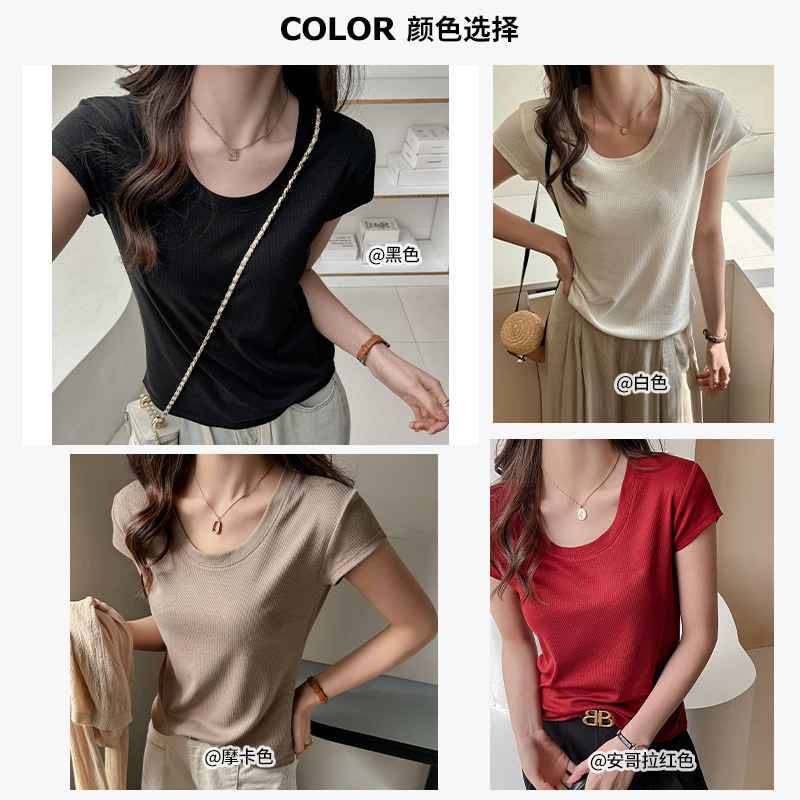 莱赛尔天丝宽松正肩短袖t恤女式T高级感小飞袖夏季显瘦遮肉上衣