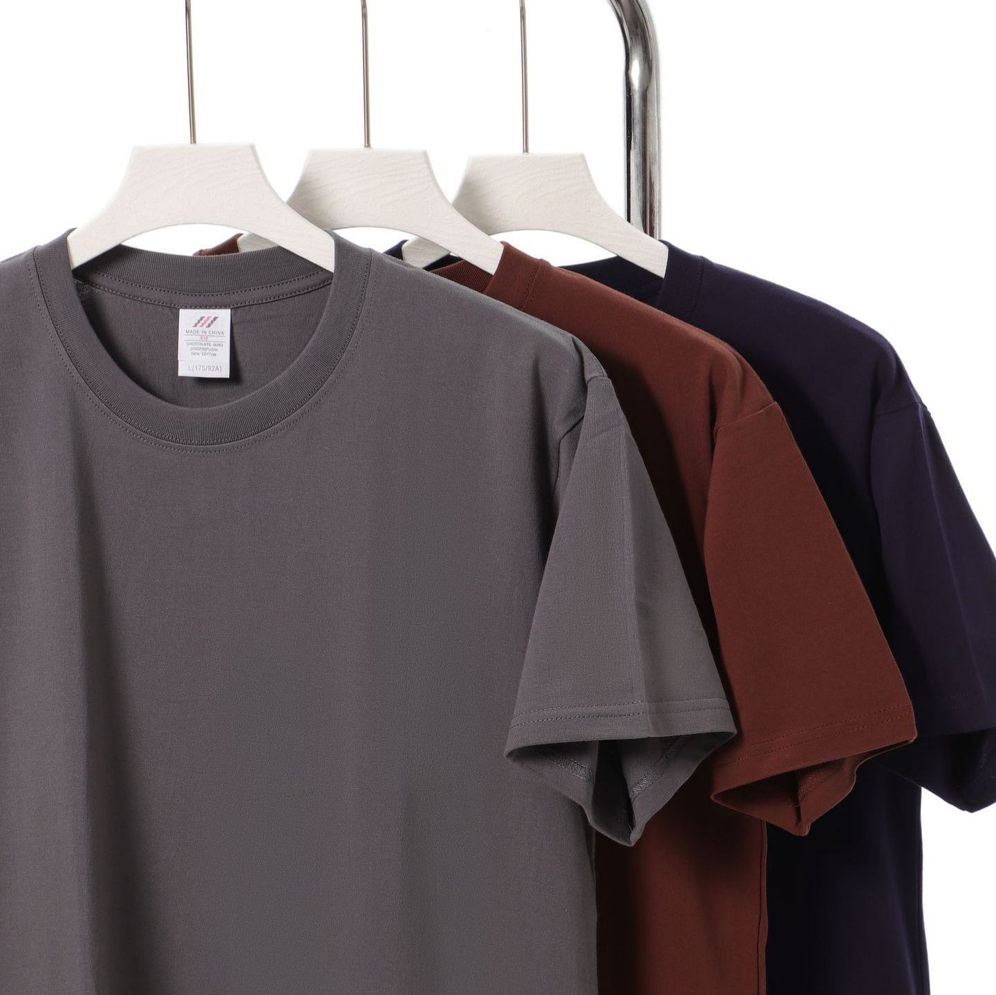 春夏新款230g正肩纯棉纯色短袖T恤男女潮圆领打底空白体恤衫批发