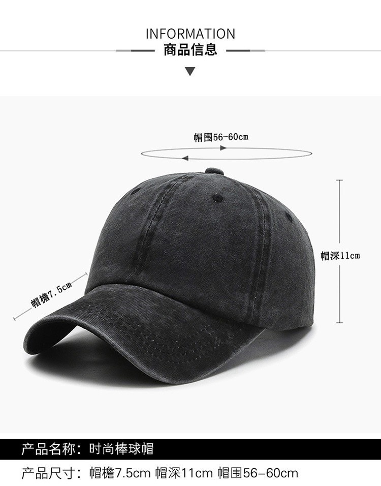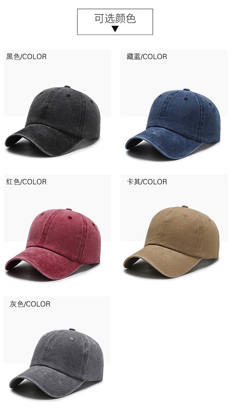 鸭舌帽子男复古做旧水洗棒球帽纯色弯檐百搭休闲大帽檐文艺复古