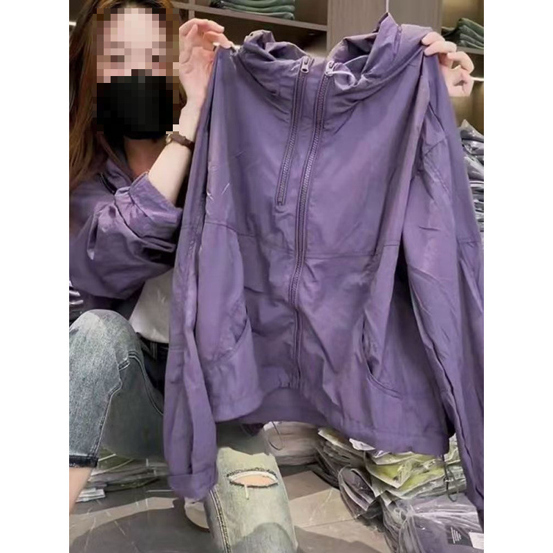 2025夏季新款女士洋气紫色防晒衣宽松薄款连帽休闲防晒冲锋衣外套
